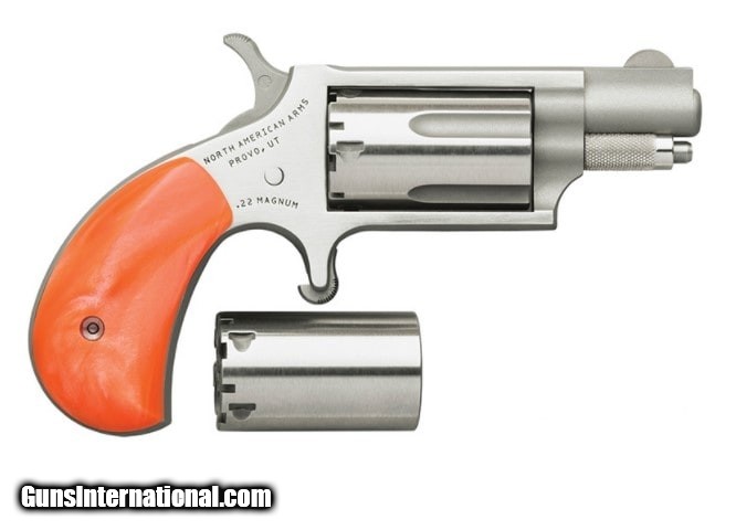 Description: Guns Listing ID: prod184848 NAA-22MSC-GP-O Mini-Combo, 22 Mag/22 LR, 1 1/8 Fixed Sight, Stainless, Orange Pearlite Grip, 5-rd - CALIBER CYLINDER .22 LR - CALIBER CYLINDER .22 MAG - BARREL 1.2\" - SIGHTS Fixed - GRIPS SOLD Manufacturer: NORTH AMERICAN ARMS Model: MINI-COMBO Caliber Info: .22 LR/.22 WMR Condition: new Barrels: 1.2 BARREL Finish: STAINLESS STEEL |