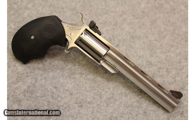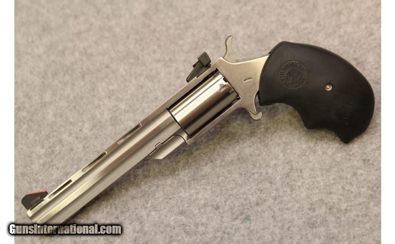 Description: This North American Arms Mini-Master chambered in .22 LR features, four inch heavy vent barrel, bull cylinder, oversized rubber grips, and adjustable height rear sight. The Mini-Master is in great shape over all besides marring on the front of the barrel by the muzzle. .22 Long Rifle SOLD Metal Condition: Great Bore Condition: Bright Barrels: 4 Inches Weight: 0.9 lbs Item Location: Hoffman Estates, IL |