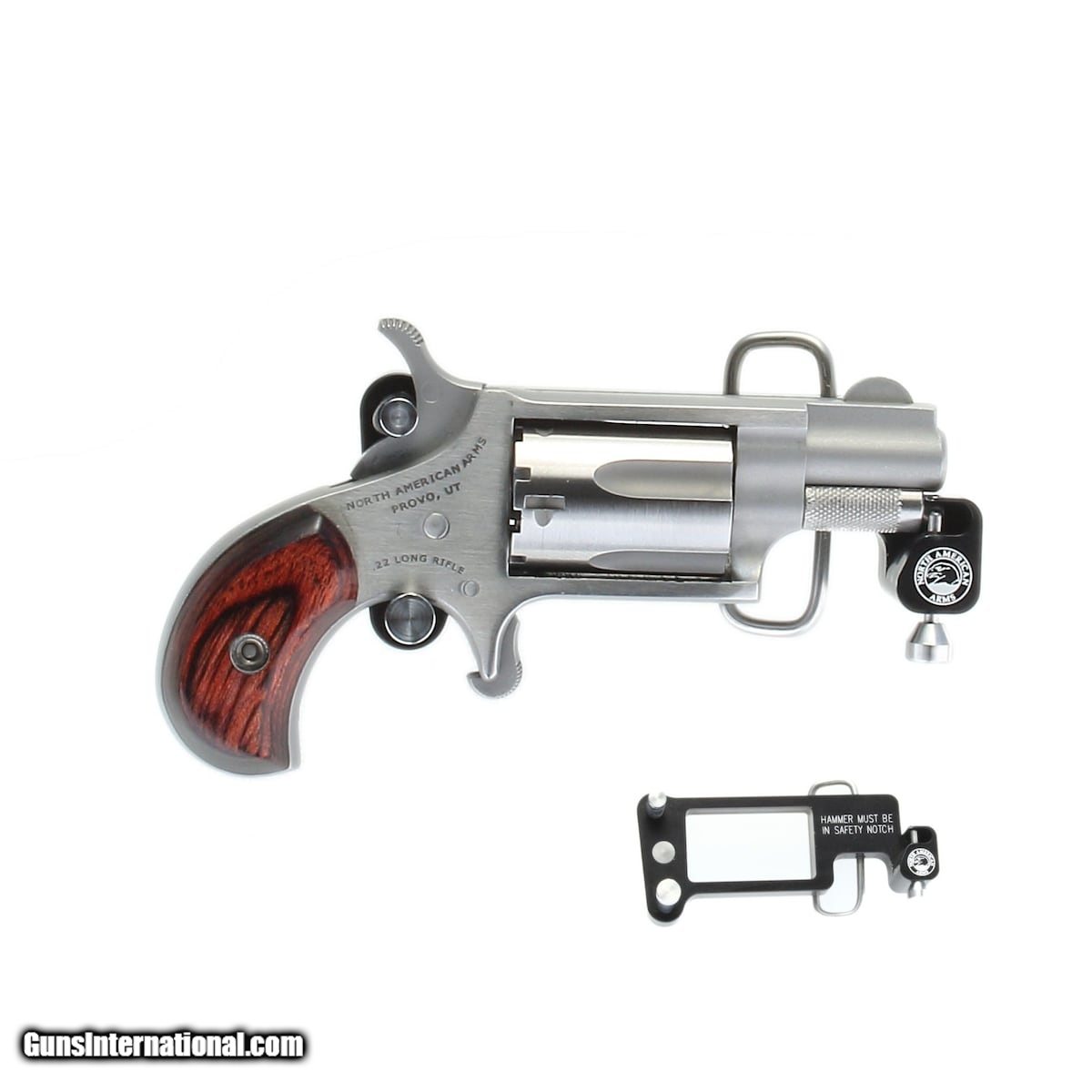Description: Guns Listing ID: 491328 The NAA Mini-Revolver offers great performance with a reliable, durable, and compact revolver design. It comes chambered in .22 WMR with a 1.125 inch barrel. Features include a skeleton belt buckle, fixed sights, and a 5 round capacity. SOLD Manufacturer: NORTH AMERICAN ARMS Model: Mini Revolver Caliber Info: .22 WMR Condition: new Barrels: 1.1" barrel Finish: STAINLESS |