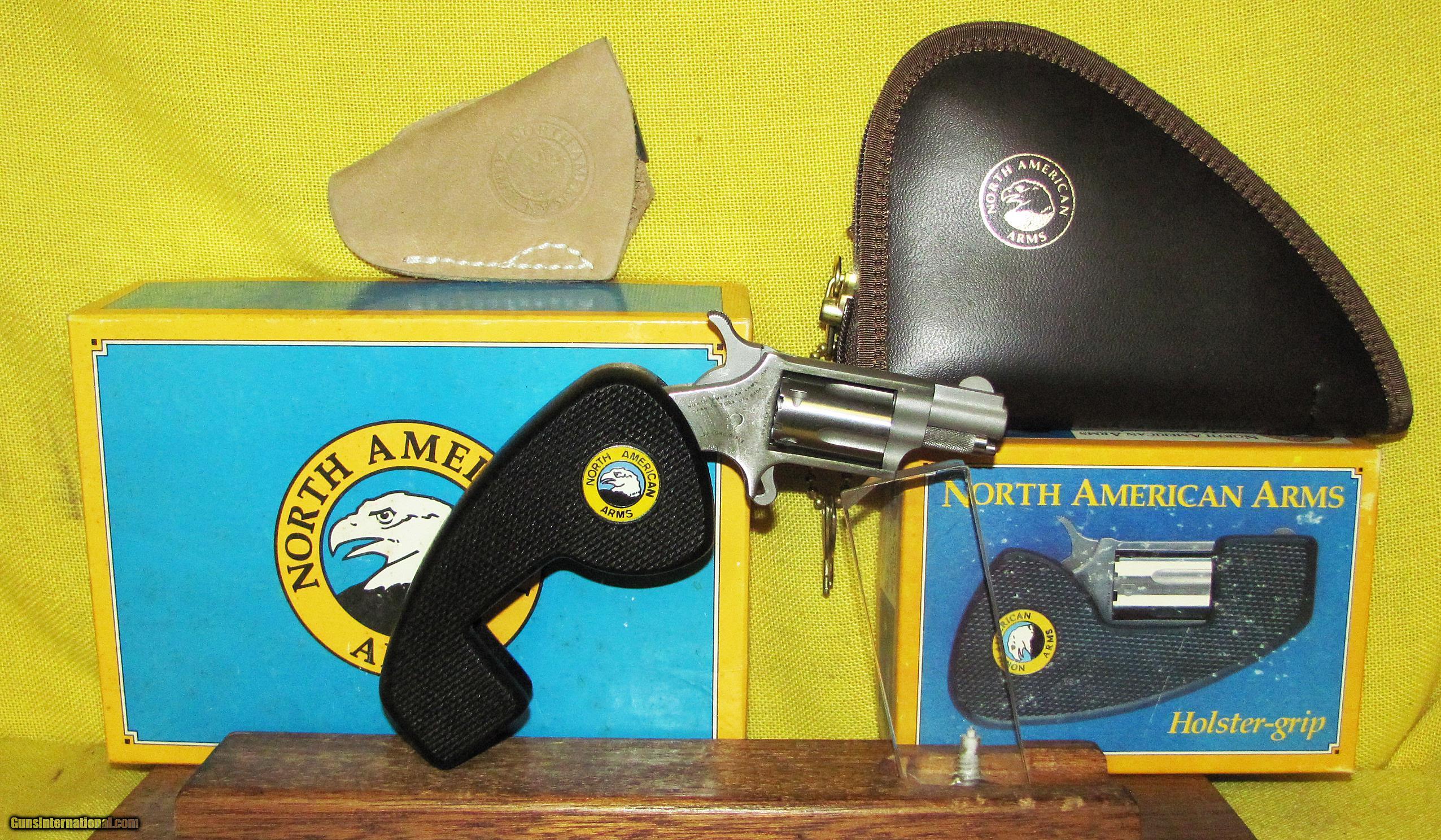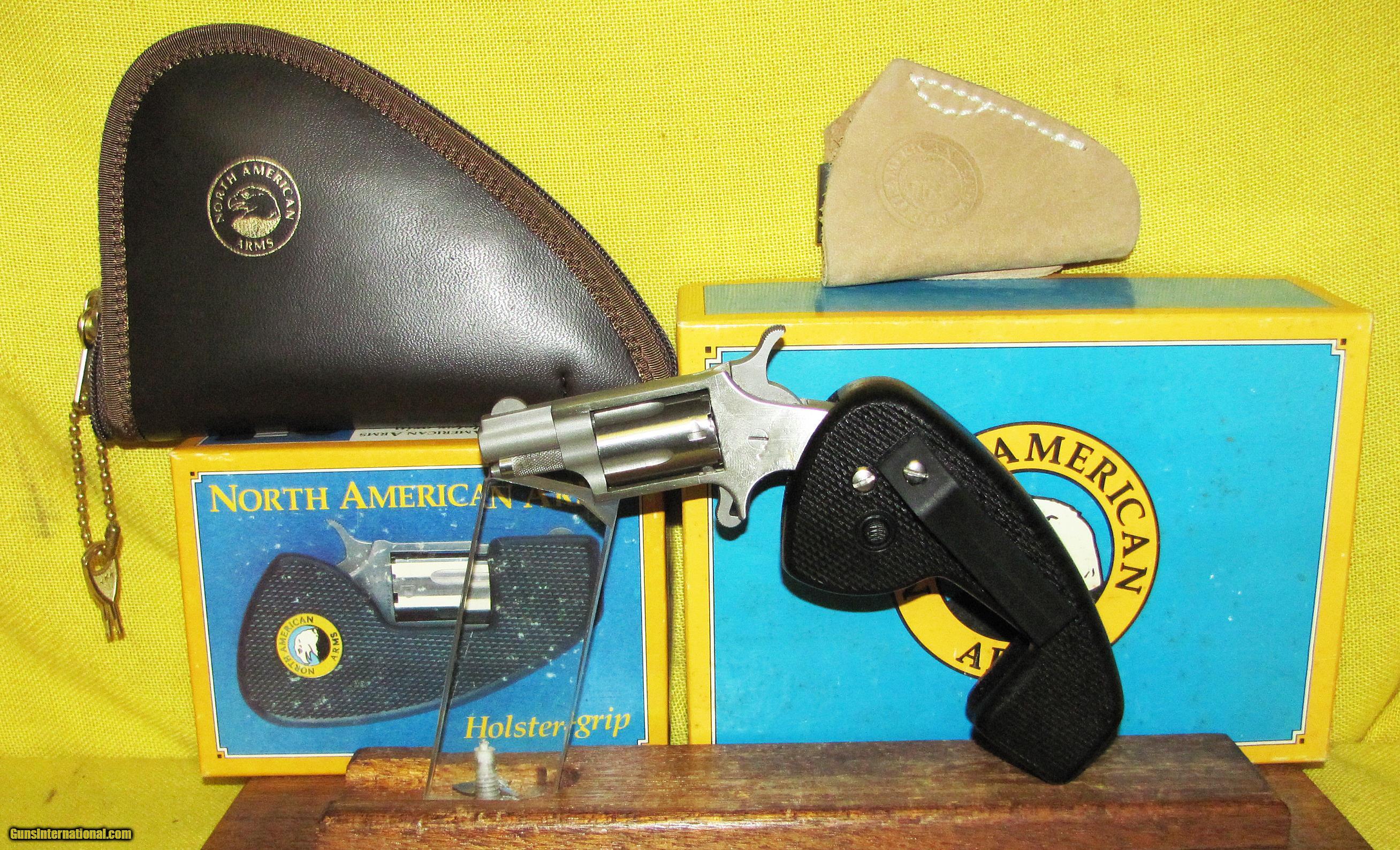 Description: NORTH AMERICAN ARMS MINI IN .22 L.R. CAL., WITH 1' BARREL. COLOR STAINLESS STEEL. CONDITION 98%+ LIKE NEW. SERIAL NUMBER C12005. NORTH AMERICAN ARMS MODEL MINI, HOLSTER GRIP, POUCH, POCKET HOLSTER ALL IN LIKE NEW CONDITION, 98%+ FACTORY FINISH, FACTORY BOX AND MANUAL, COMPLETE RIG LIKE NEW APPEARS UNFIRED. OUR NEW STOCK # D32878. SOLD |