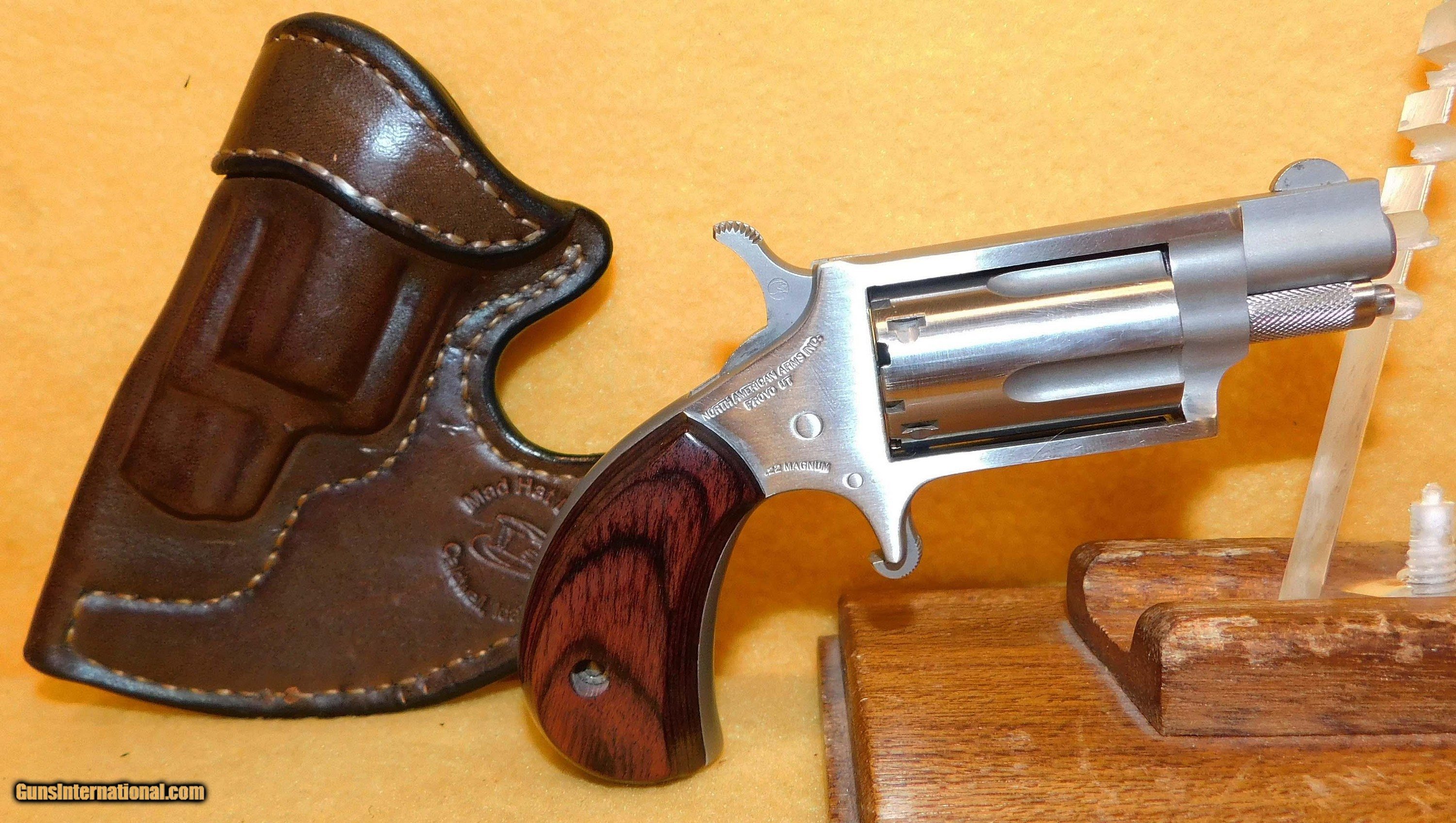 Description: NORTH AMERICAN ARMS MINI IN .22 MAG. CAL., WITH 1" BARREL. COLOR STAINLESS STEEL. CONDITION 98% LIKE NEW. SERIAL NUMBER E196496. NORTH AMERICAN ARMS MODEL MINI REVOLVER IN .22 MAGNUM CALIBER, BRIGHT SHINY BORE, GRIPS EXCELLENT, COMES WITH HOLSTER, NOT FOR SALE IN MASS., 98% LIKE NEW OVERALL CONDITION, OUR STOCK # D2119 SOLD |
