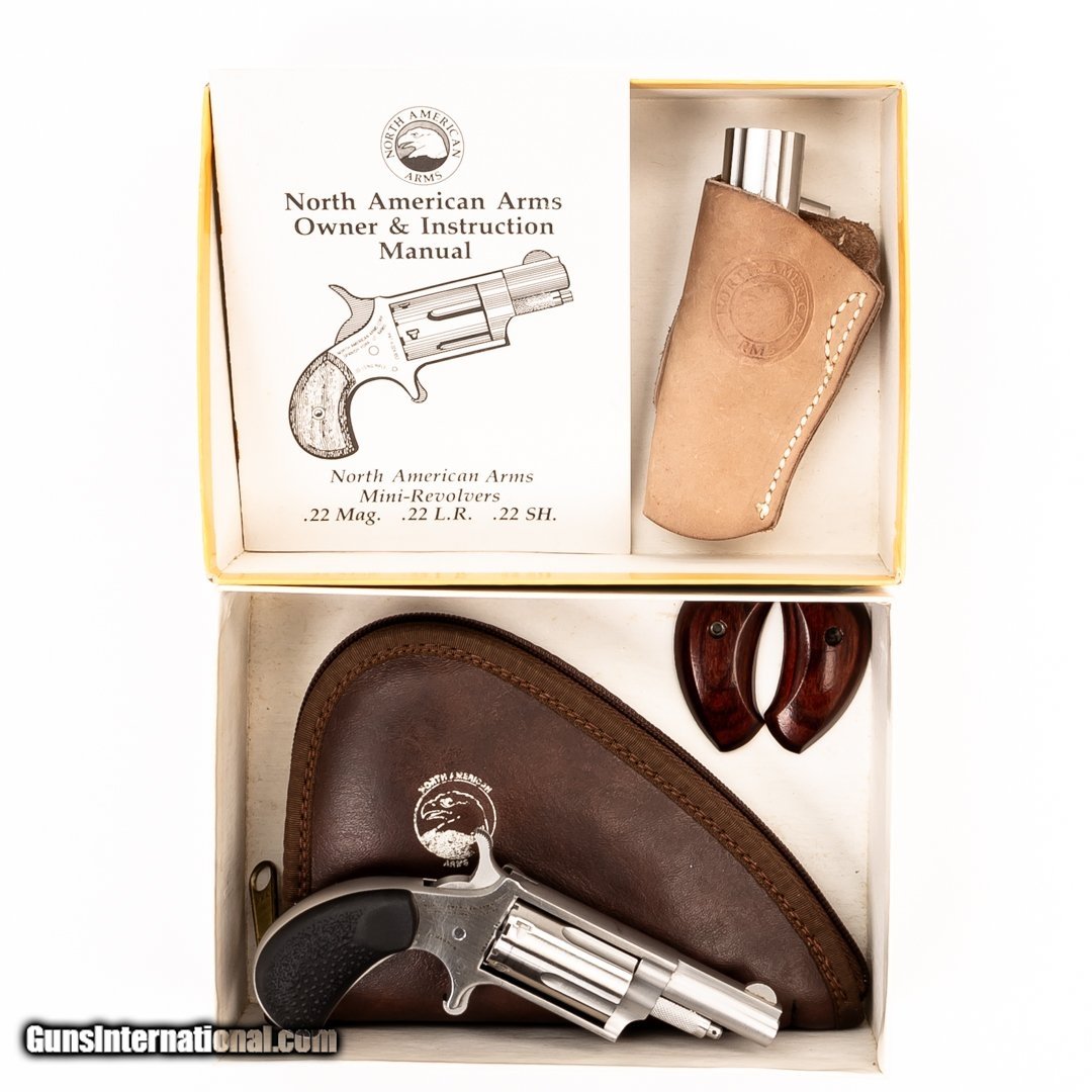Description: Guns Listing ID: 1253933 This North American Arms Mini Revolver features the original box, soft case, owner‚‚s manual, an extra .22 WMR cylinder, extra rosewood grips and an IWB leather holster. Get the best bang for your buck when you get a Certified Used Firearm . When you see the Certified Used stamp on any of our firearms, you can be confident that you’re getting exactly what you want – a gun only in very good to excellent condition and held to the highest quality standard. All Certified Used Guns come with a ‘no questions asked’ return policy . PLUS, ALL CERTIFIED USED GUNS SHIP FREE SOLD Manufacturer: NORTH AMERICAN ARMS Model: NAA-22MC MINI REVOLVER Caliber Info: .22 LR Condition: Used - Non-Certified Barrels: 1.6 BARREL Finish: STAINLESS |