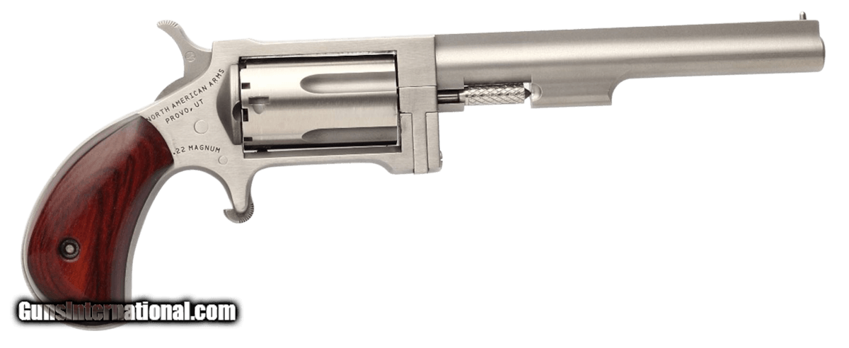 Description: Guns Listing ID: 52497 The North American Arms (NAA) Sidewinder is a Derringer-style 22 Mag pistol. It features a five-shot swing-out cylinder wood grips and fixed sights. The NAA-SW and NAA-SWC have a 1.5 barrel while the latter includes a 22 LR conversion cylinder the NAA-SW-250 and NAA-SWC-250 have a 2.5 barrel while the latter includes a 22 LR conversion cylinder the NAA-SW-4 and NAA-SWC-4 have a 4 barrel while the latter includes a 22 LR conversion cylinder. Details Caliber .22 Magnum - Capacity 5 - Length 7.75 - Height 2.88 - Width 1.06 - Weight 8.5 oz. - Barrel Length 4 - Sights Stainless Post Sight - Action Single Action - Grips Rosewood Birds Head SOLD Manufacturer: NORTH AMERICAN ARMS Model: SIDEWINDER Caliber Info: .22 WMR Condition: new Barrels: 4 BARREL |