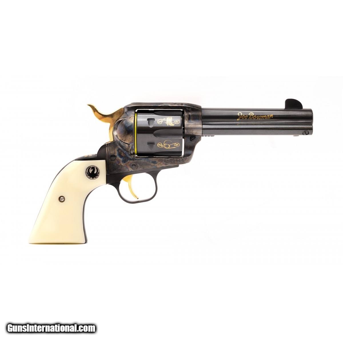Description: " Consecutive pair of Joe Bowman ""The Straight Shooter"" Ruger New Vaquero single actions. Like new condition with boxes and papers. Joe was a beloved and colorful ""cowboy"" entertainer. Among his many other skills and talents, Joe specialized in customizing Ruger single action revolvers for fast shooting. He got to know the folks at Ruger very well and they honored him with a commemorative revolver. You can read all about Joe's life and exploits here: joebowman SOLD |