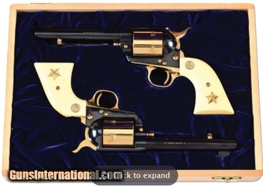 Description: CASED PAIR OF COLT SINGLE ACTION ARMY ALAMO COMMEMORATIVE REVOLVERS 45 LC - Used SOLD |