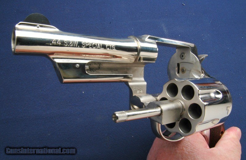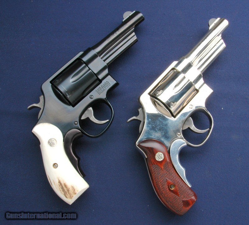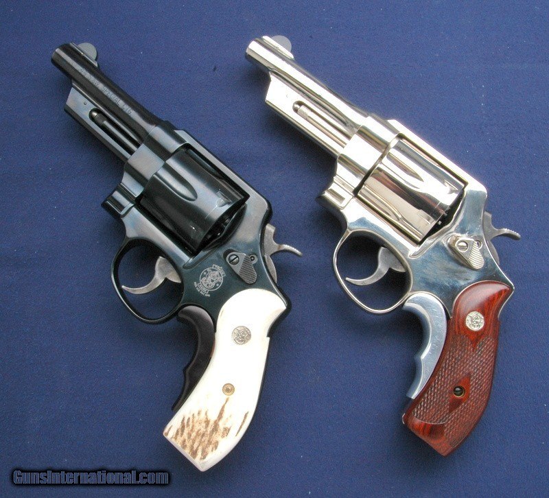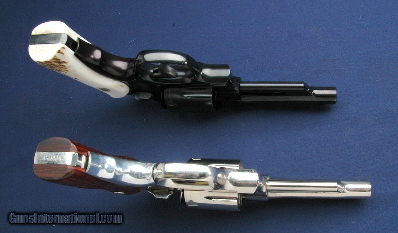Description: Nice, lightly used pair of S&W 21-4s, one nickel and one blue, both chambered in .44 Spl. Both have been fitted with Tyler T grip adaptors, the blue one has had a set of custom Sambar stag grips installed. Both have mint bores and are in overall 99% condition. Set comes with the custom wood presentation case as shown, including 2 speedloaders. The original factory blue plastic boxes for each gun are also included. $75 insured shipping for both to the lower 48, 3% surcharge for using a CC. If you choose to pay with a personal check, we will hold the item for up to 10 days to make sure that it clears. Please expedite such pymts as we will hold an item on your word for 5 days. SOLD |
