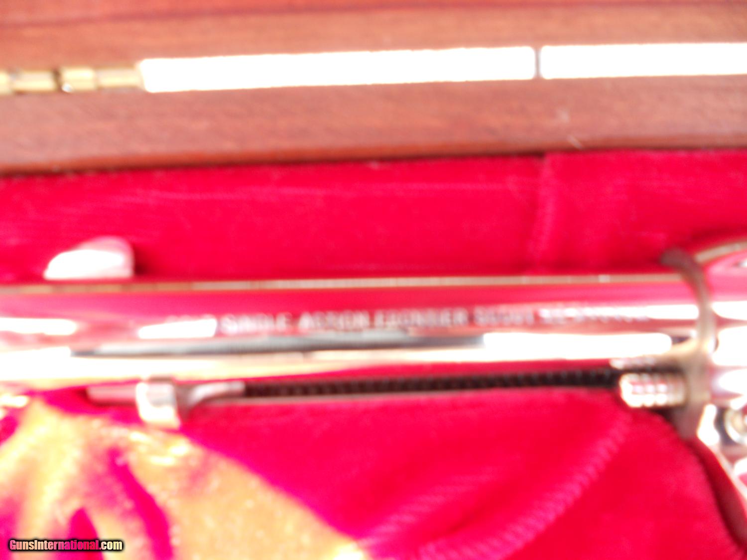 Description: Serial numbers 1302k & 1303k. Shipped to Guerra Bros. in San Jose California on Dec. 8th, 1960 per the Colt archive letter which is included in the sale.A few slight handling marks and a very fine drag mark. I'm being picky. The guns appear to be unfired and look new. The case is in very good condition with a few scuffs.Its hard to photograph nickel and the pictures are the best I can do. As always a 3 day inspection is given. 40.00 shipping, Thanks for looking SOLD Manufacturer: Colt Model: Scout pair Caliber Info: 22lr & 22mag |
