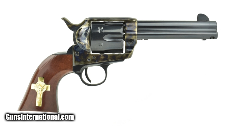 Description: Pietta Holy Smoker .45 LC caliber revolver. Gunfighter Six Gun with inlaid cross on the grip and slick action job. Excellent condition with box.