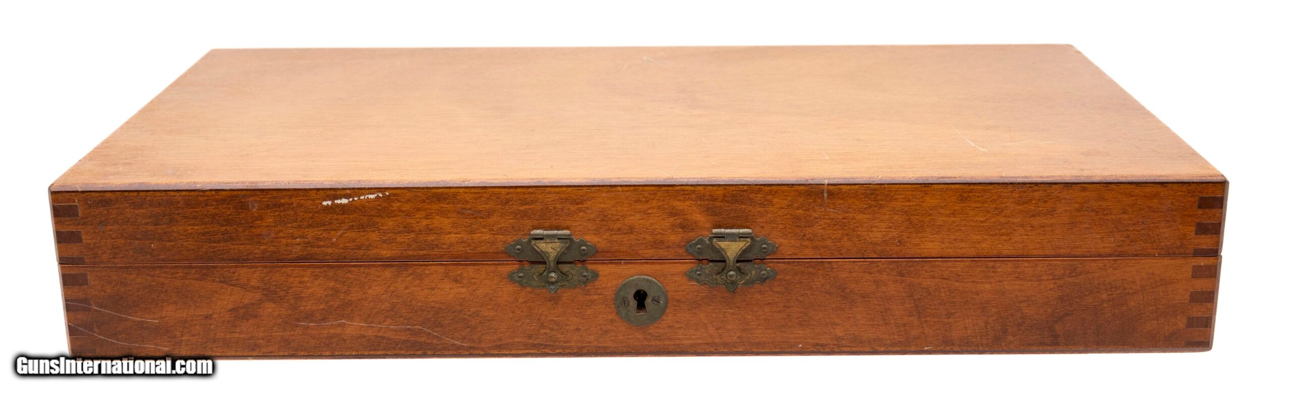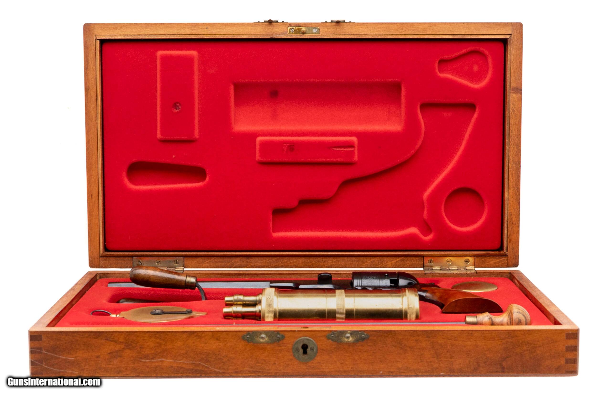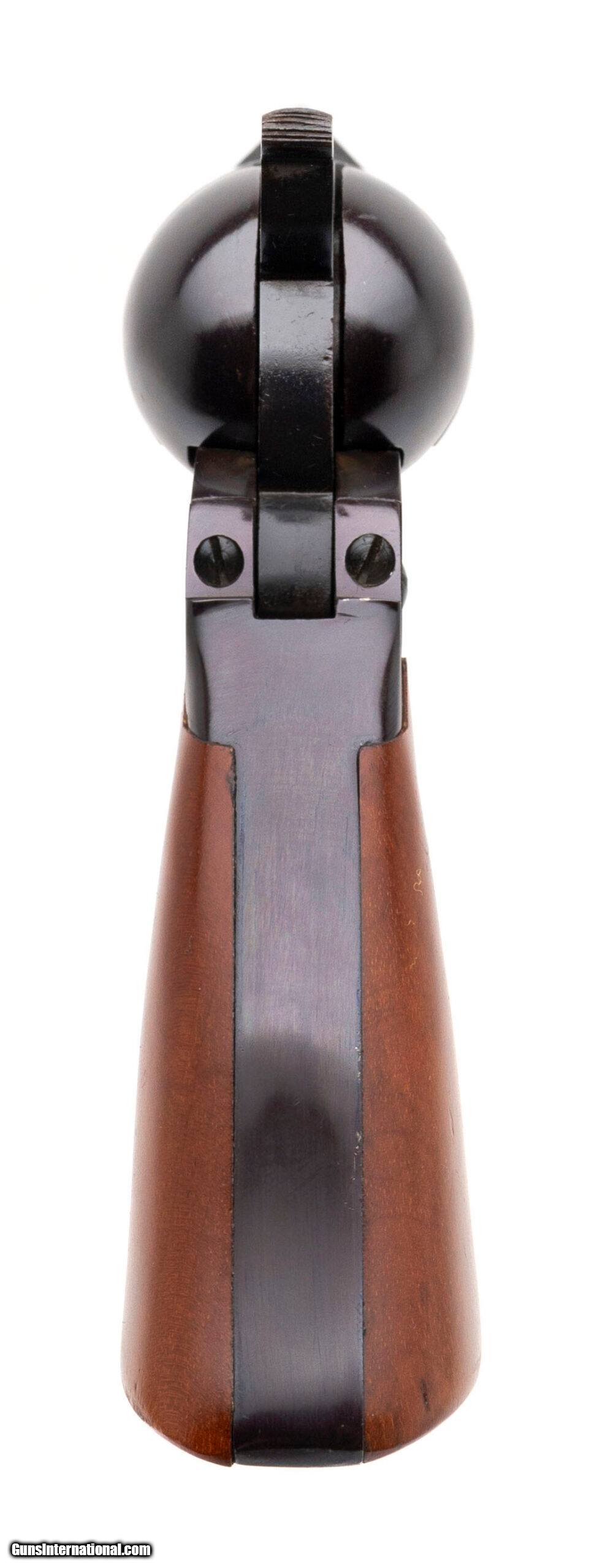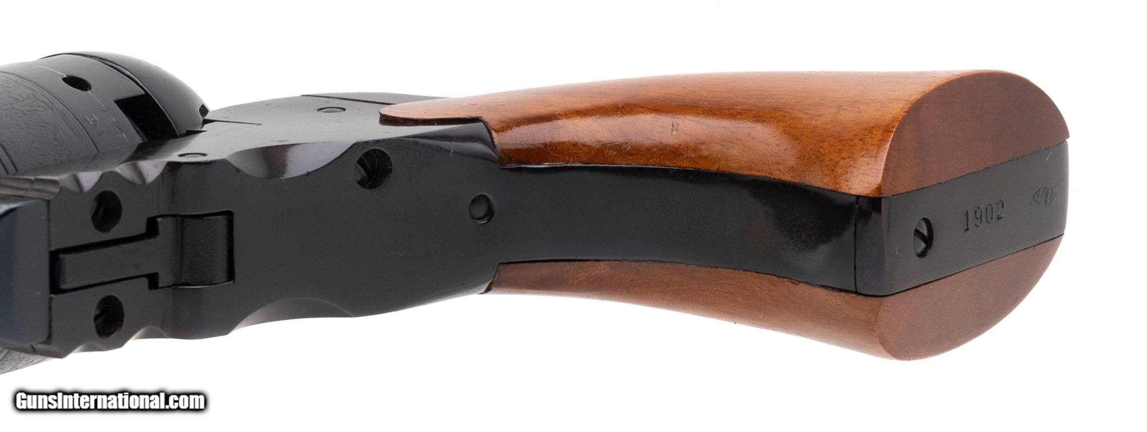 Description: "Sn: 1902 modern production made in Italy. Copy of the original Colt Patterson. 36 caliber percussion revolver with a 9" octagon barrel, 5 shot etched cylinder, blued finish and walnut grips. Overall in very good condition with some light patina on the barrel. Comes with wood presentation case and accessories. SOLD |