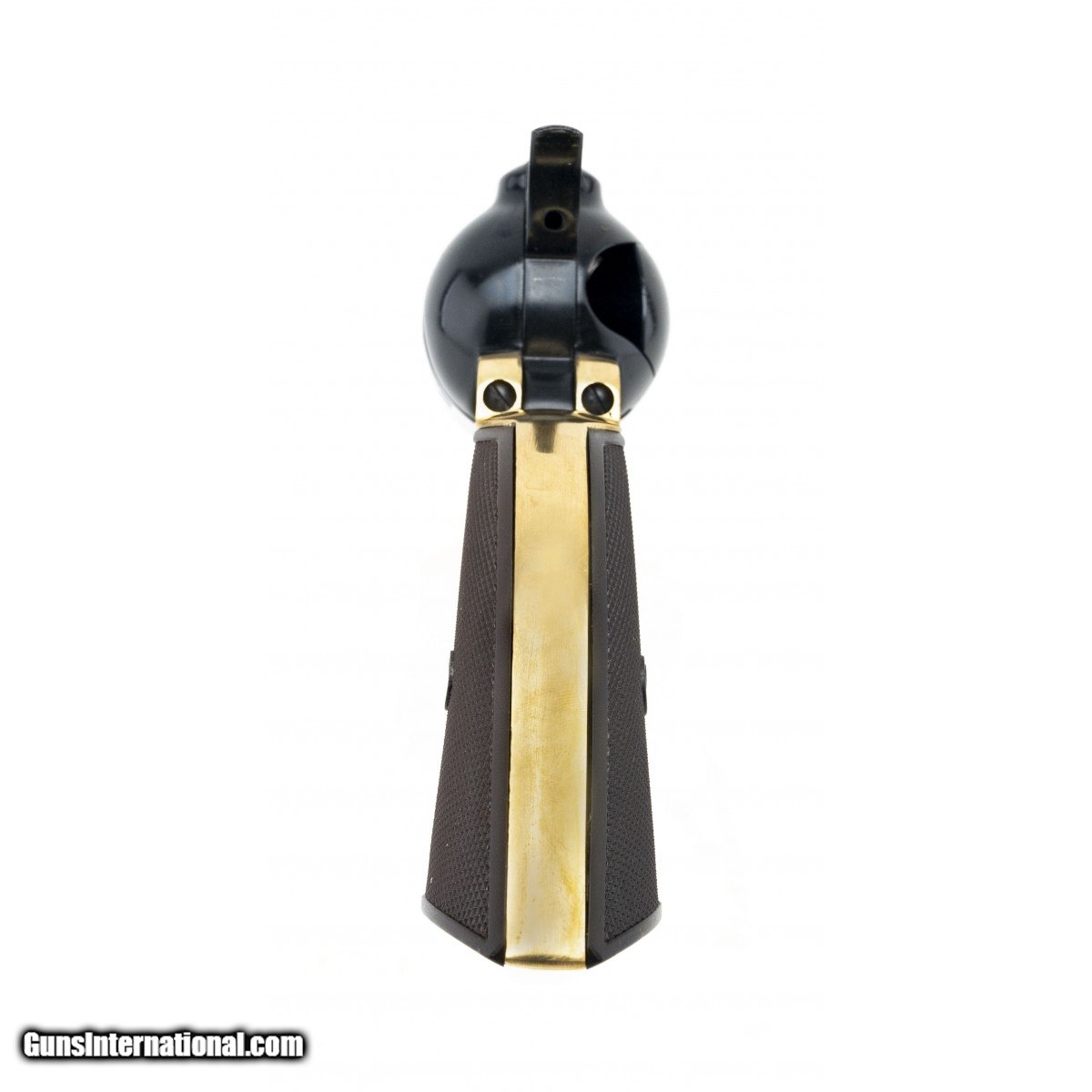 Description: " 4 3/4"" Cowboy six gun with black finish, bright brass backstrap and triggerguard. checkered grips. New. UPC:8052464212965 SOLD |