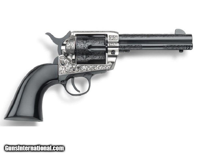 Description: BRAND NEW IN THE BOX AND READY TO SHIP! BUY IT NOW!! Manufacturer: E.M.F. Model: GWII "Gambler's Royale" Sku: GW357GR434NMUB Caliber: .357 Magnum Capacity: 6 Rounds Barrel Length: 4.75" Finish: "Old Silver" and Blue Engraved Grips: Ultra Black (Black Wood Painted) Grips Sights: Fixed Manufactured and engraved by FAP F. LLI Pietta in Italy, this beautiful piece adds elegance and intrigue to EMF's Great Western II line-up. The GWII "Gambler’s Royale" is elegantly engraved with a Victorian scroll-work on the contrasting black barrel and the polished steel frame. It is further accented with a one-piece black grip. KNOW YOUR LOCAL AND STATE LAWS!! ORDERS WILL ONLY BE ACCEPTED FROM US RESIDENTS OF THE LOWER 48 STATES, ALASKA AND HAWAII. OUR FFL CLASS DOES NOT ALLOW FOR THE EXPORT OF FIREARMS, THEREFORE WE CANNOT SHIP OUT OF THE US. IF YOU ARE INTERESTED IN PURCHASING THIS ITEM, PLEASE COMPLETE YOUR ORDER BY REFERRING TO THE "SELLER'S INFORMATION" ABOVE. SOLD Handgun Caliber: .357 Magnum |