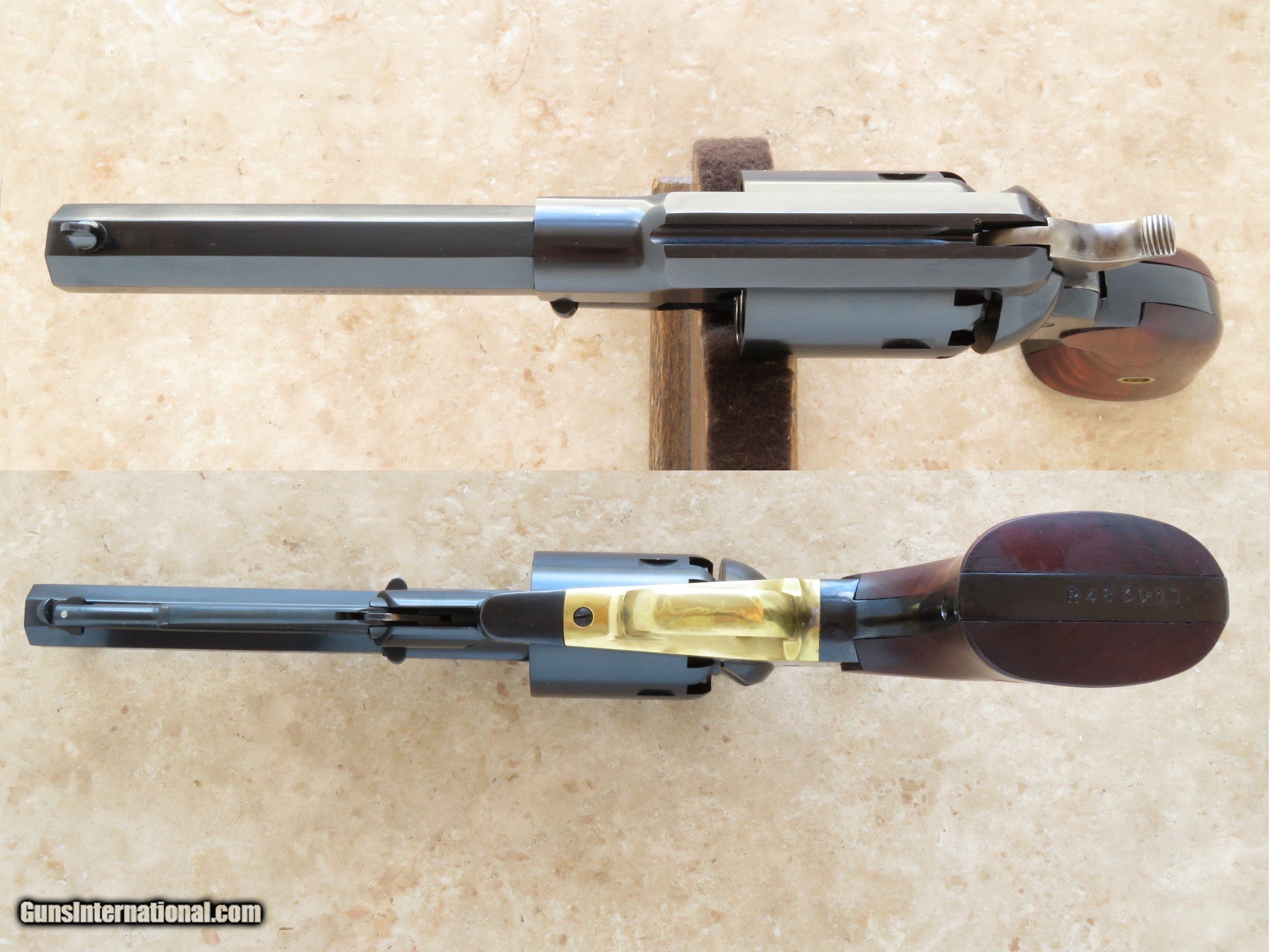 Description: Italian replica of the legendary Remington Model 1858 revolver fitted with a 5 1/2 inch barrel, 2-piece walnut grips, brass trigger guard, blue finished with a color case hardened finished hammer, and of .44 Cal. percussion. The gun is new/unfired and comes with a F.LLI Pietta box (not serial numbered to the gun?), paper-work, oak? lined presentation case, powder flask, .44 Cal. lead balls, and a CCI Percussion cap tin. Nice set. FFL Not Required. PRICE: $395 We are Antique & Modern Firearms in Lexington, KY, a dealer of fine firearms since 1974. PH. 859-276-1419 We Buy, Sell, and Trade Firearms & Knives. Do you have an Individual Firearm, Firearms Collection, or Firearms Estate to sell? Give us a call or send an email, and we can talk about buying the item(s) outright or selling them on consignment for you. NOTE: No additional fee for a Credit Card payment. YES, We have a Layaway Program: 1/3 down---60 days to pay off. SOLD Manufacturer: F.LLI Pietta Model: Remington Model 1858 Repilca |