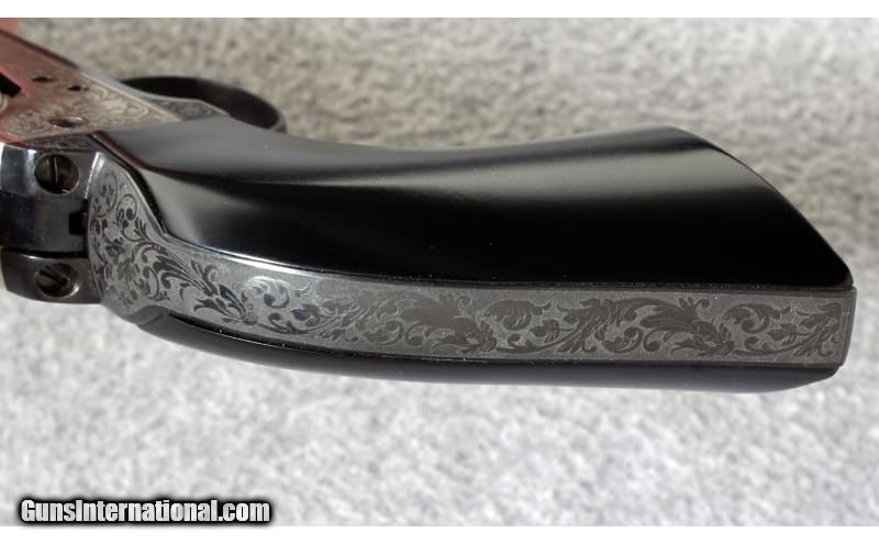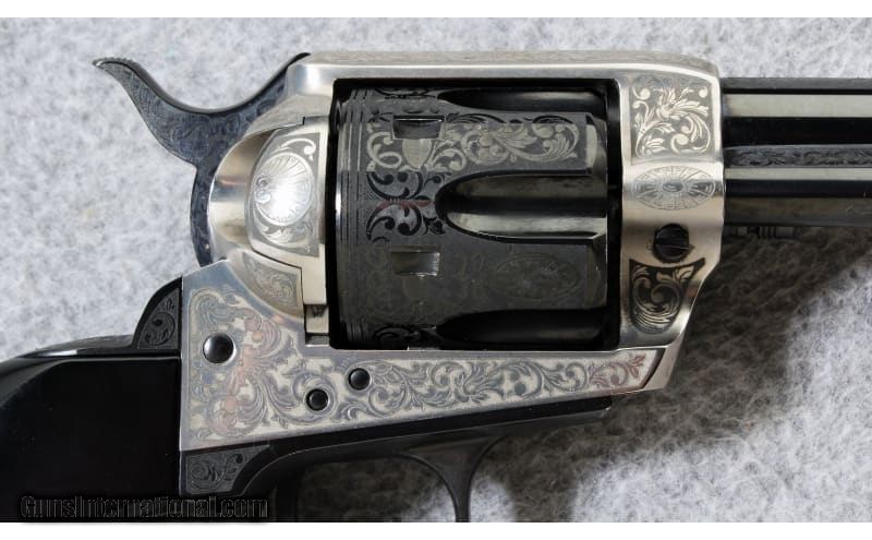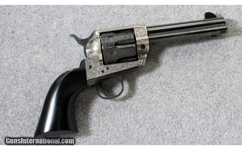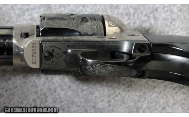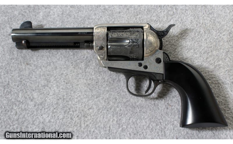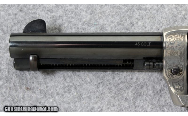 Description: Here's your chance to own a faithful re-creation of the venerable 1873 Colt Single Action Army revolver, also known as the Peacemaker. This Davidson Exclusive Pietta 1873 Single-Action we're offering is chambered in .45 Colt Ctg. with a 4.75" barrel. It features: laser engraving, silver finished frame, blued finish barrel, black painted wood grips and fixed sights true to the original design. .45 Long Colt SOLD Metal Condition: Excellent Bore Condition: Excellent Barrels: 4 3/4 inch barrel Triggers: Single Action Weight: 36 oz. Sights: Square notch rear sight with blade front Item Location: Lehi, UT |