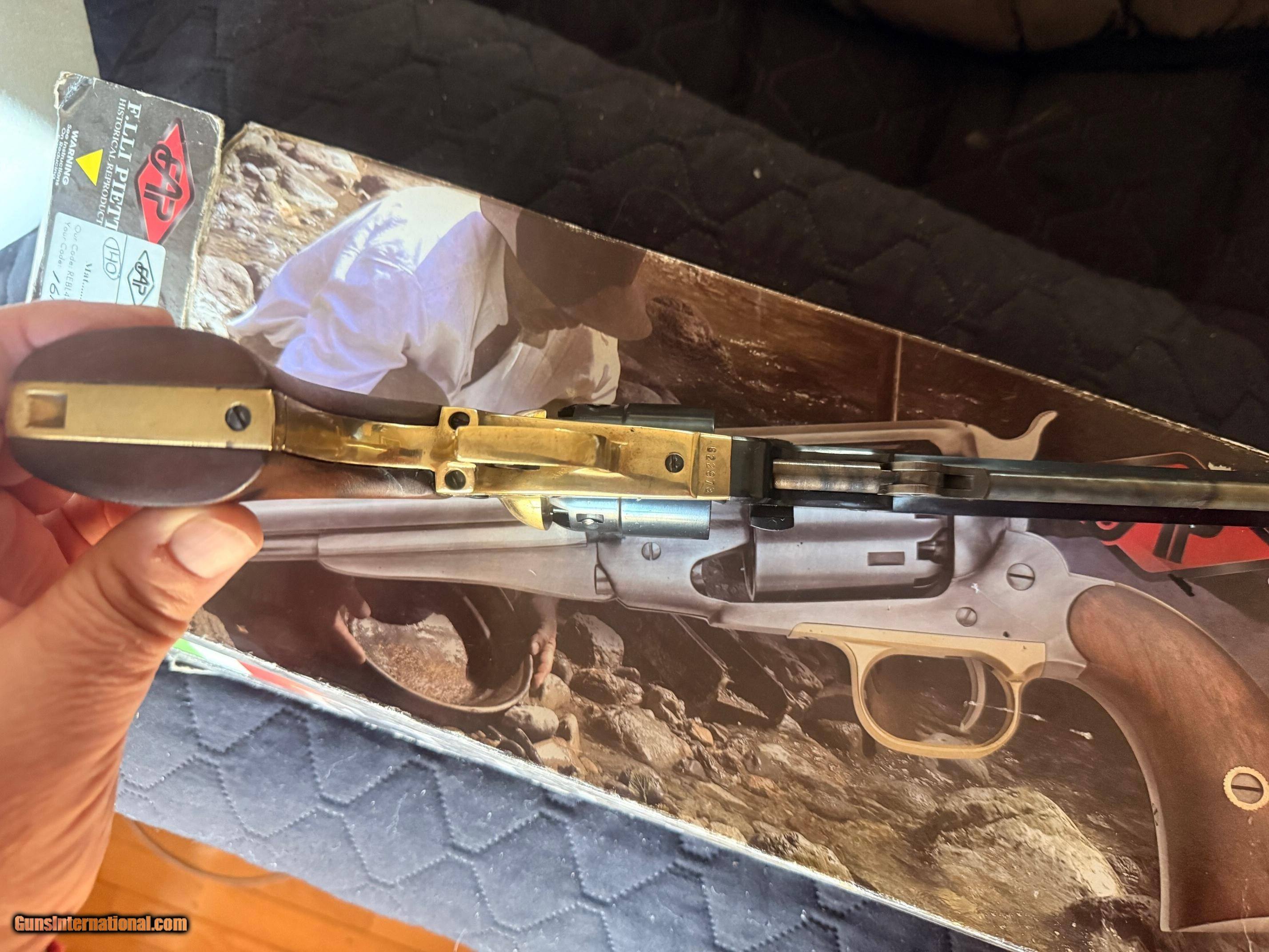 Description: Ships directly to the Buyer. No FFL is required. 1851 Navy London (CH) Steel .44 7 1/2 (1851 Models). .44 Caliber Casehardened Frame 7 1/2 Barrel (Pictured in .44 caliber, with a casehardened trigger. The trigger on this model is blued.) The Pietta 1851 Navy Yank London is a faithful reproduction of one of Samuel Colt's favorite guns. Originally designed to be used be the Navy, the small caliber, fast draw, and light recoil made it an instant favorite of the Army and was instead sold in large quantities to them. This is a used item. While we do not test-fire our used firearms, we perform an inspection and function check to ensure that they are fully functional to the best of our ability. Layaway: 1/3 down, 90 days Shipping $30 Insurance is an extra that must be requested and paid for by the buyer 3-day inspection period for non-firing or disassembly Payment: Personal Check, Money Order, Cert. Check, or Zelle 20% restocking fee on all returned items randywine2000yahoo (703) 858-2881 Handgun Caliber: .44 Remington Manufacturer: Pietta Model: 1851 Navy London Serial Number: 622973 Barrel Length: 7 1/2 Chambers: 6 Condition: Excellent Metal Condition: Excellent Wood Condition: Excellent Bore Condition: Excellent Barrel Type: Octagon Action: Single Action Triggers: Single Finish: Blued Manufacture Date: 2013 Engraving: Factory Case: Factory Box Grips: Walnut Price: $329.00 Buy Now Contact Seller |