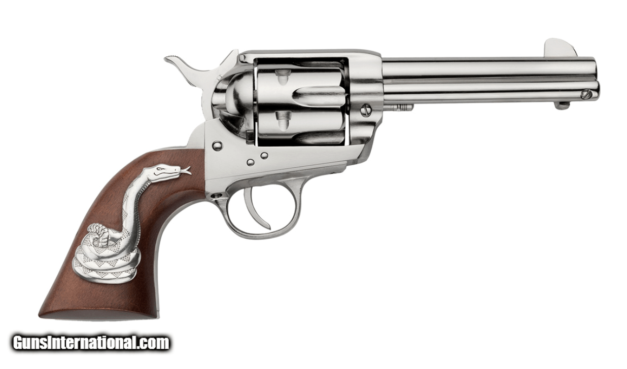 Description: Guns Listing ID: 592108 The Pietta 1873 Wild West Revolver is a striking single-action revolver chambered in .45 Long Colt, designed to capture the essence of the Wild West. It features a 4.75-inch barrel and a nickel finish, giving it a sleek and durable look. The walnut grip is adorned with a distinctive snake emblem, adding to its unique charm. With a fixed front sight blade, fixed rear notch sight, and a spring-loaded ejector rod, this revolver ensures reliable performance and accuracy. The Pietta 1873 Wild West Revolver, with its 6-round capacity, is perfect for enthusiasts and collectors who appreciate classic design and modern functionality. Manufacturer: PIETTA Model: 1873 GREAT WESTERN II Condition: new Action: REVOLVER Price: $925.99 Contact Seller |