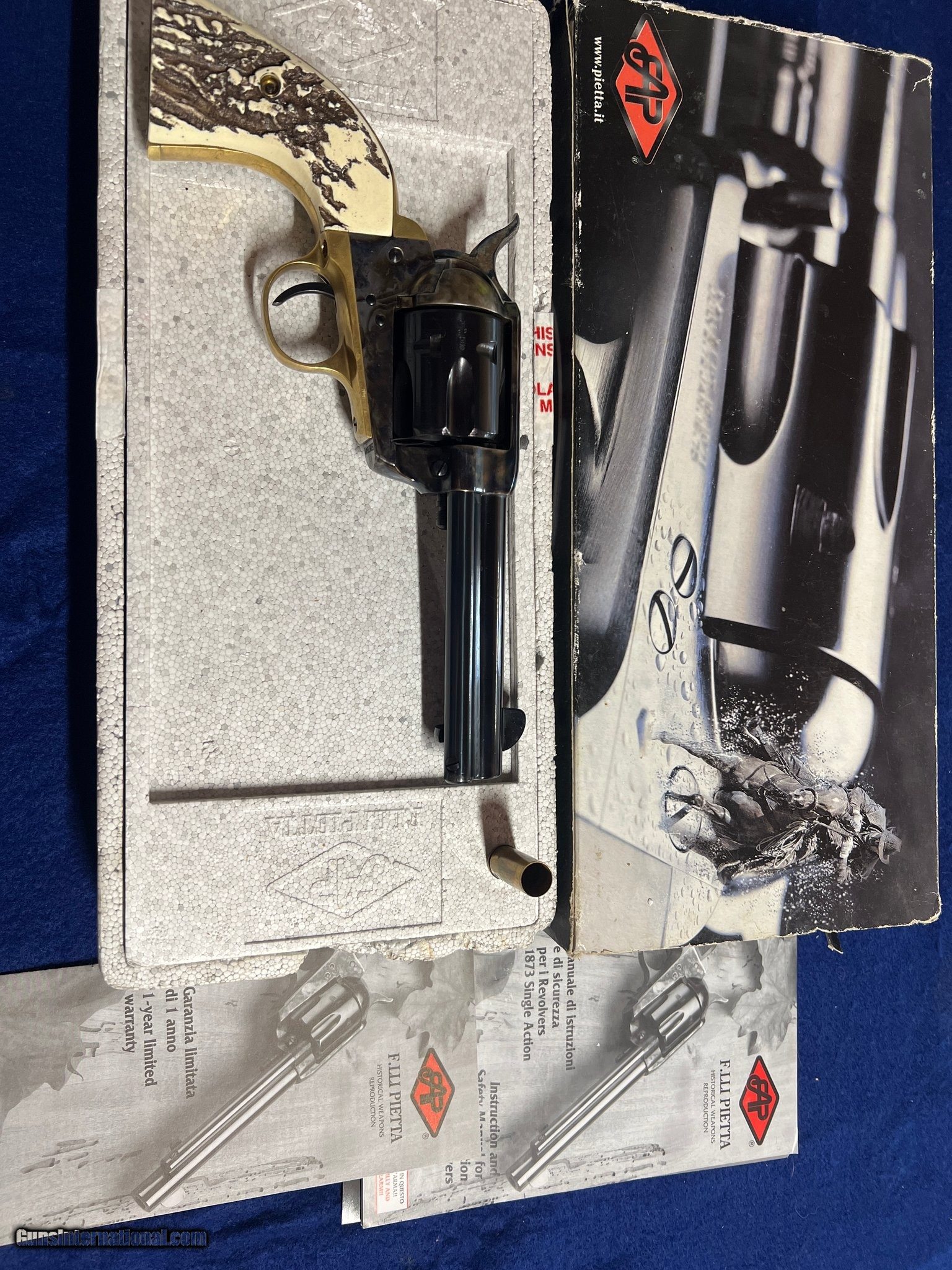 Description: Guns Listing ID: 615659 Beautiful and like new in 45LC caliber. Pietta 1873 Single Action Revolver. Box is not perfect. See pictures. Manufacturer: PIETTA Model: 1873 Condition: Used - Non-Certified Barrels: 4.75" BARREL Action: REVOLVER Finish: case hardened Weight: 2.6 LBS. Price: $479.99 Contact Seller |