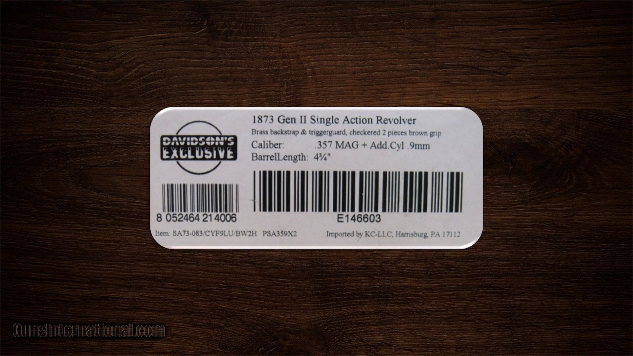 Description: Guns Listing ID: 686744 PIETTA, F.LLI 1873 GREAT WESTERN II - 357 MAG - 6-ROUNDS - 4.75\" BARREL INCLUDES BOX & 9MM CYLINDER SOLD Manufacturer: PIETTA, F.LLI Model: 1873 GREAT WESTERN II Caliber Info: 357 MAG Condition: Used - Non-Certified Barrels: 4.75 BARREL Finish: BLUED |