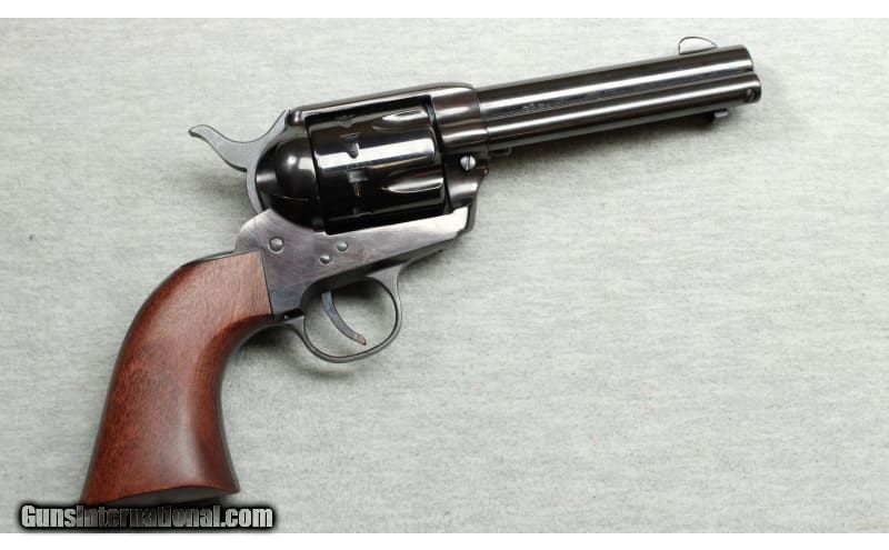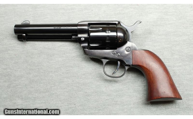 Description: Excellent condition, light wear, few small scratches. Single action rimfire revolver, 4 3/4" barrel, polished blue finish, single action trigger, 10 shot fluted cylinder, fixed sights and smooth factory wood grips. .22 Long Rifle SOLD Chambers: Revolver Metal Condition: Excellent Bore Condition: Bright Barrels: 4 3/4 Triggers: Single action Butt Pad: Wood grips Sights: "Fixed rear channel, blade front sights Item Location: La Vista, NE |