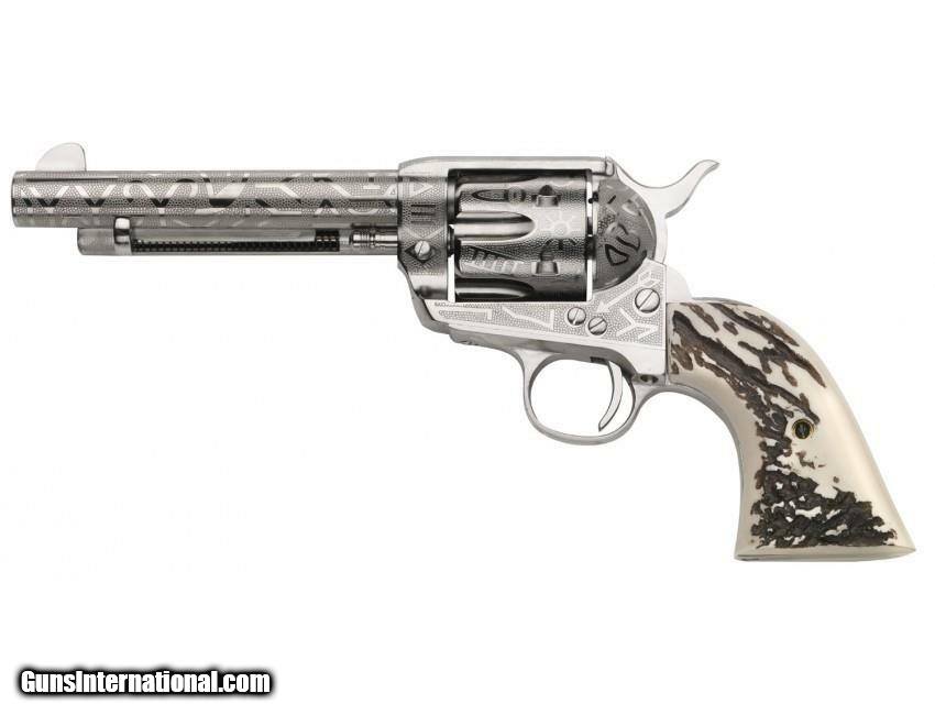 Description: Manufacturer: Taylor's & Company / Pietta Model: 1873 Cattleman Brand SKU: REV/OG1408 Caliber: .45 Long Colt Capacity: 6 Round Cylinder Barrel Length: 5.5" Round Overall Length: 11" Weight: 2.4 lbs Frame: Nickel Plated Engraved Grips: Stag Synthetic Sights: Fixed Blade Front, Rear Frame Notch All items are factory new in box unless otherwise stated. Based on the information available to us, the above specifications describe this item to the best of our knowledge. For further information, please contact or visit the manufacturer's . SOLD |