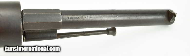 Spanish 1859 Trubia pinfire revolver. Serial number: 118 Frame acceptance mark: J.R.I with an oval.