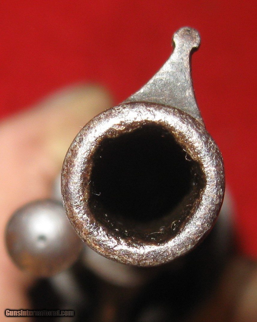 Description: sale pending george marcus -8-7-21 10 day hold-THIS REVOLVER IS AN ANTIQUE PINFIRE MADE IN BELGIUM. IT IS MARKED F.M.BREVET AND IT IS ENGRAVED WITH A NICE FLORAL/SCROLL PATTERN. IT IS FULLY FUNCTIONING IN BOTH DOUBLE ACTION AND SINGLE ACTION MODE, THE CYLINDER LOCKS IN BATTERY AND THE LOADING GATE AND EXTRACTOR ROD WORK.THE EXTRACTOR ROD RETAINING SPRIN DOESN'T HOLD THE ROD IN THE OUT POSITION SO MAY NEED REPAIR THE LAST PICTURE SHOWS THE SPRING. IT LOOKS LIKE THE SPRING TIP SHOULD SIT IN THE GROOVE ON THE EJECTOR ROD BUT IT IS MISSING THE TIP. THE REVOLVER HAS A FOLDING TRIGGER. THE TRIGGER /SEAR SURFACE LOOKS LIKE IT HAS HAD SOME REPAIR WORK BECAUSE THE FINISH HAS BEEN BROUGHT DOWN TO BARE METAL BUT IT WORKS WELL. THE BLUE FINISH HAS GONE BROWN OR WORN OFF FROM THE REST OF THE REVOLVER. THE BORE HAS STRONG RIFLING WITH SCATTERED LIGHT PITTING AND THE CHAMBERS HAVE SCATTERED LIGHT PTTING ALSO. THE BORE MEASURES 7.35MM ACROOS THE LANDS AND 7.57MM ACROSS GROOVES SO I'M GUESSING 7.5MM OR 7MM PINFIRE. ANTIQUE SHIPPED USPS PRIORITY DIRECT $23.50 SOLD Antique: Yes Manufacturer: F.M.BREVET Model: PINFIRE REVOLVER Barrel Length: 3 1/2 Chambers: 5 Ejectors: MANUAL - RETAINING SPRING DOESN'T WORK Condition: GOOD Metal Condition: GOOD Wood Condition: GOOD Bore Condition: GOOD - STRONG RIFLING SCATTERED LIGHT PITTING Barrel Type: OCTAGONAL/ROUND Action: SINGLE/DOUBLE Triggers: FOLDING Finish: BLUE GONE BROWN Sights: FRONT PIN Engraving: FLORAL/SCROLL PATTERN |