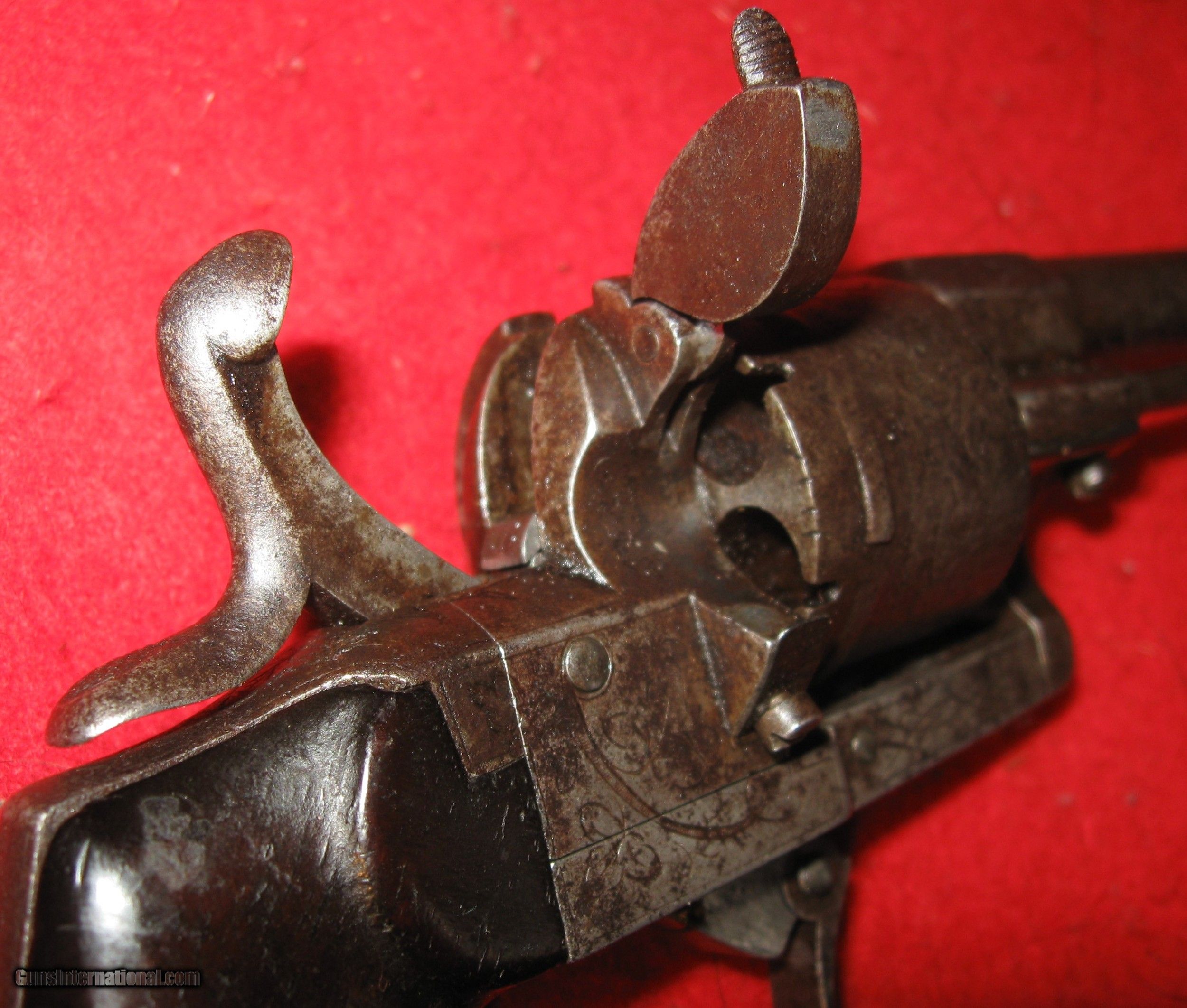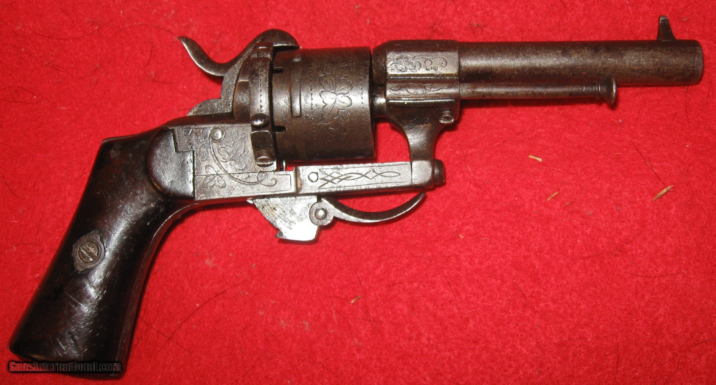 ANTIQUE ENGRAVED BELGIAN F.M. BREVET PINFIRE REVOLVER