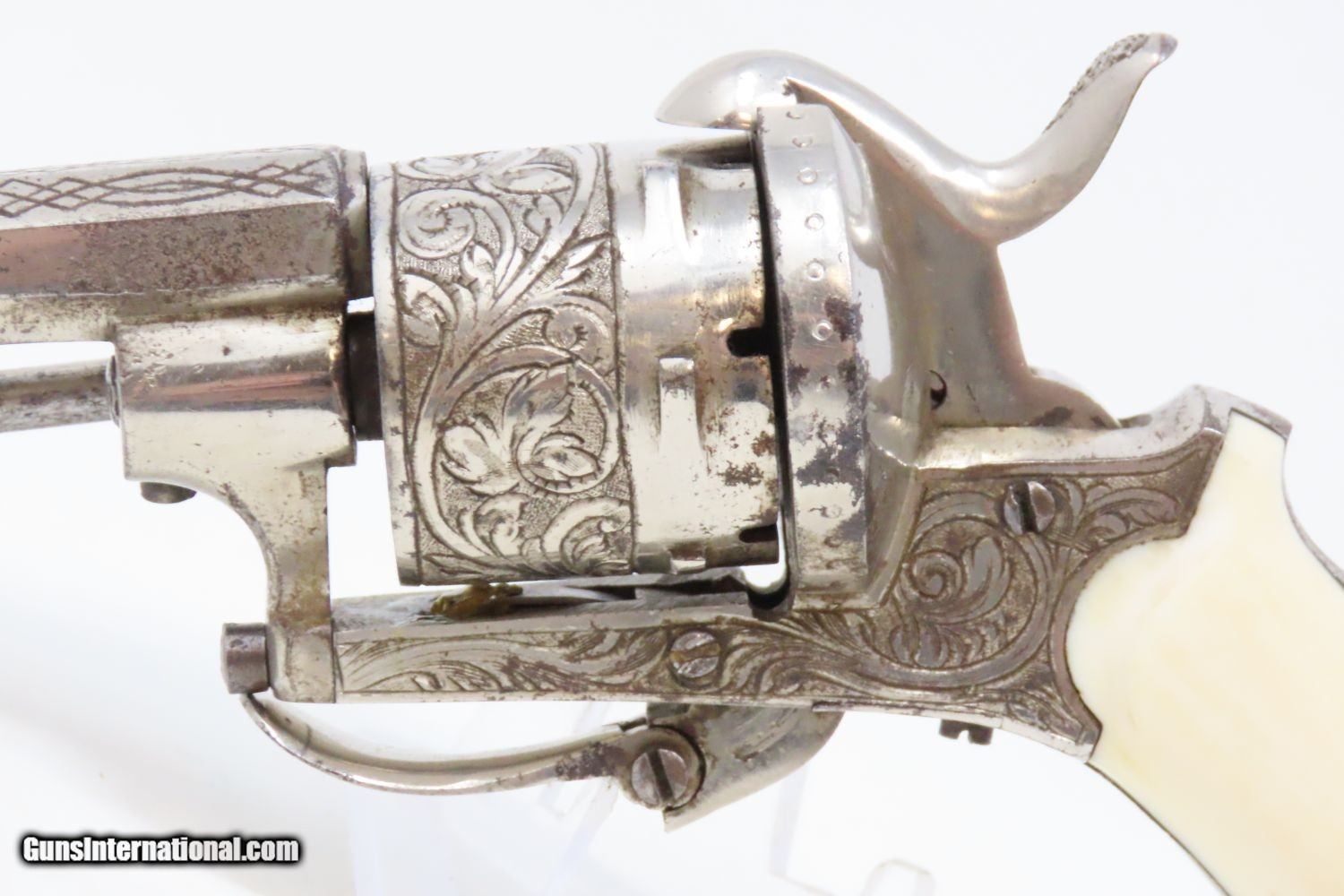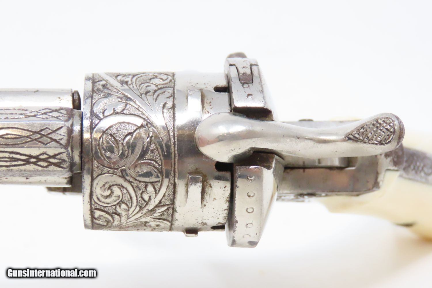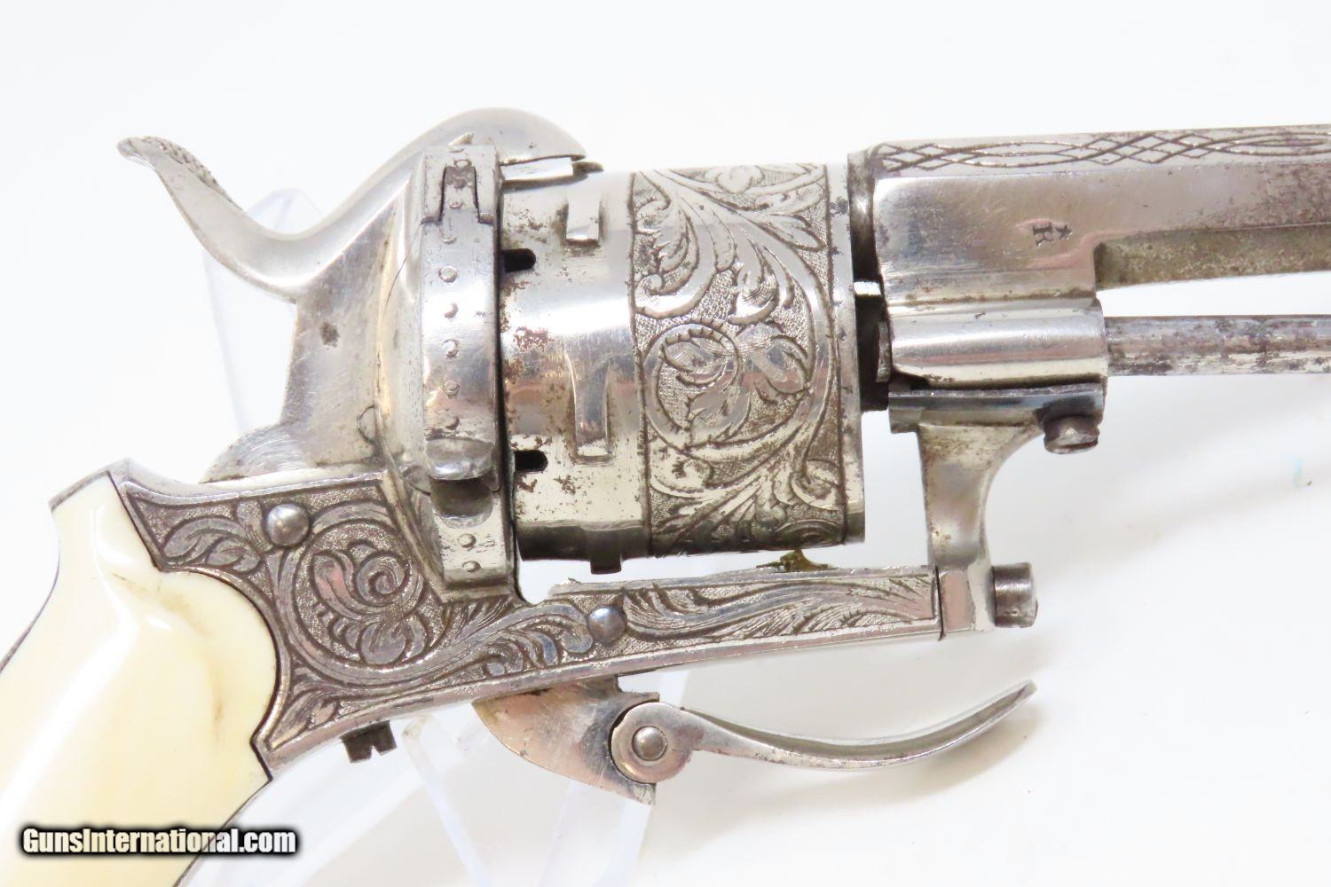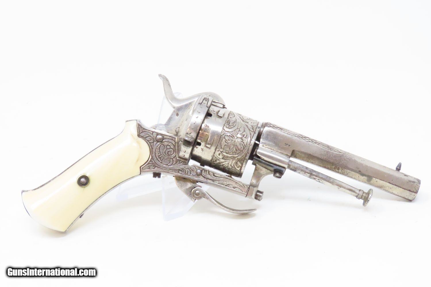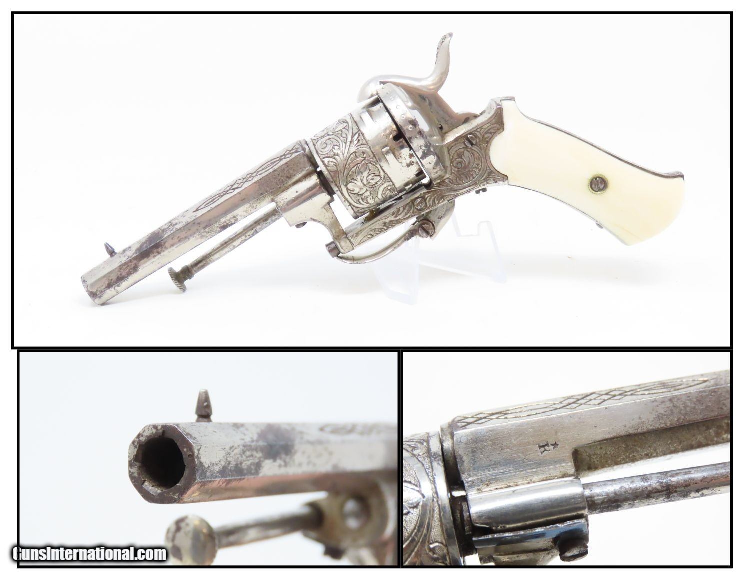 Antique ENGRAVED & IVORY European PINFIRE Folding Trigger REVOLVER 7.65mm Engraved 7.65mm Sidearm with IVORY GRIPS!