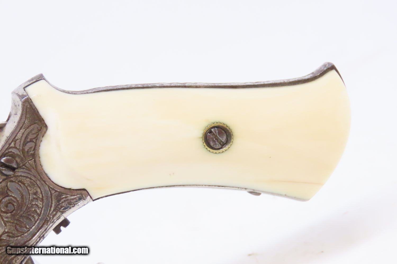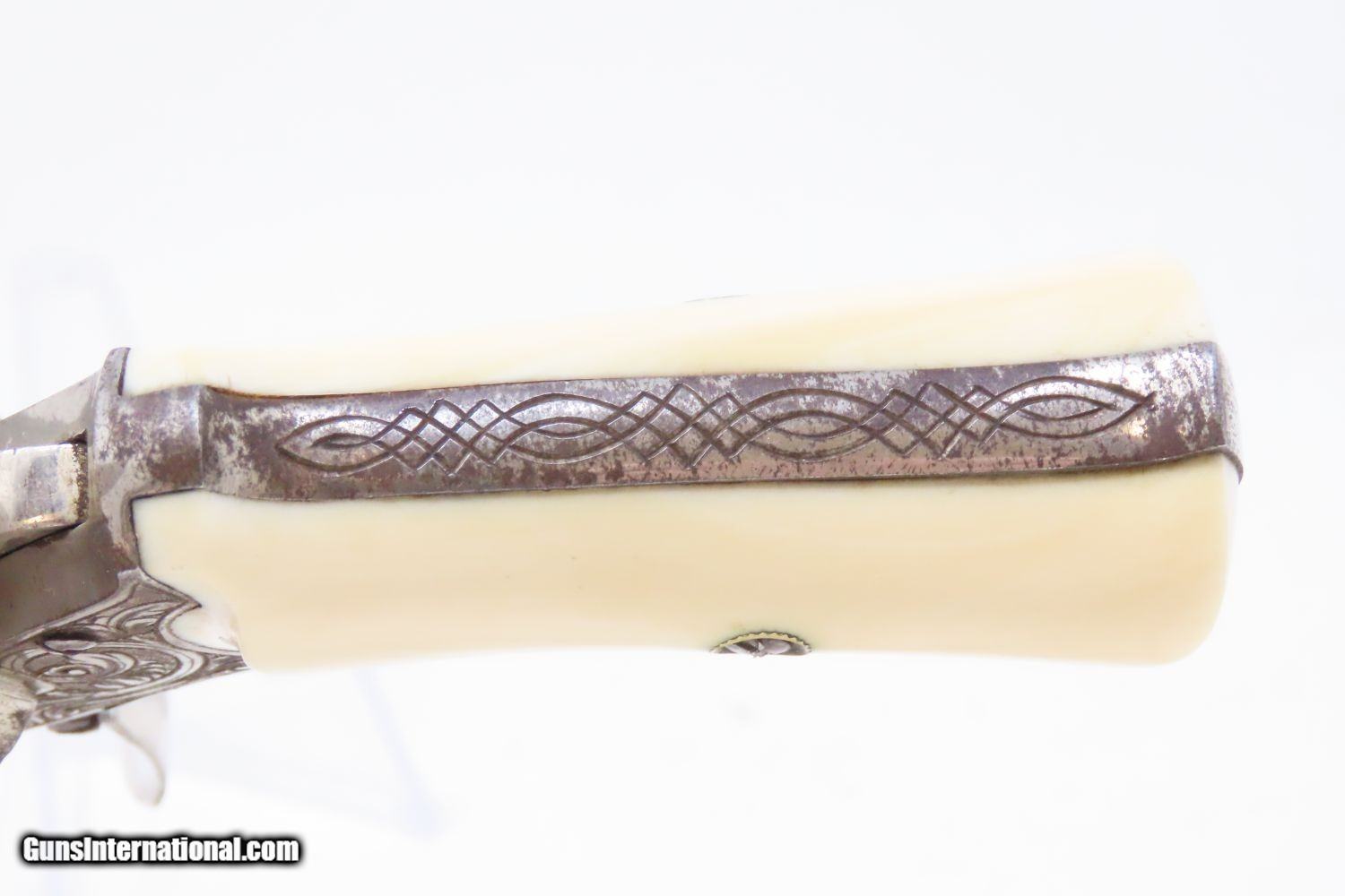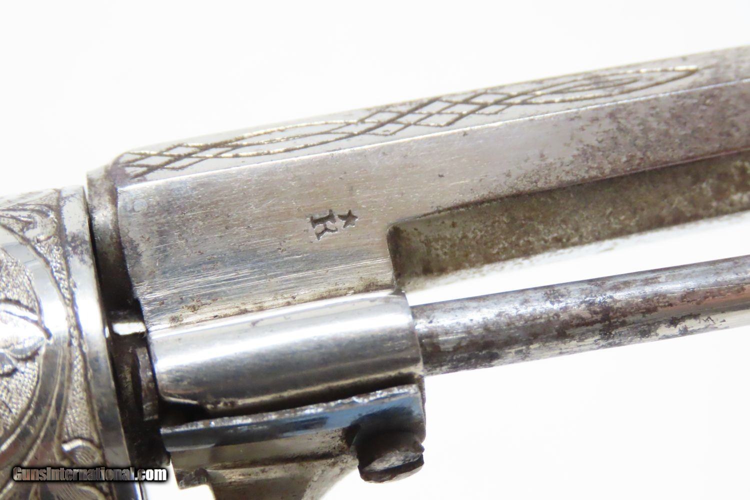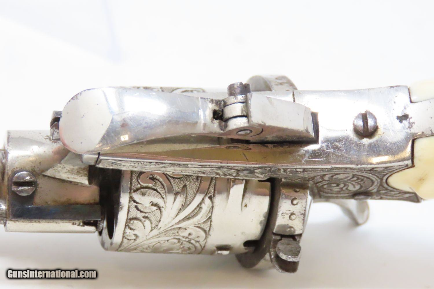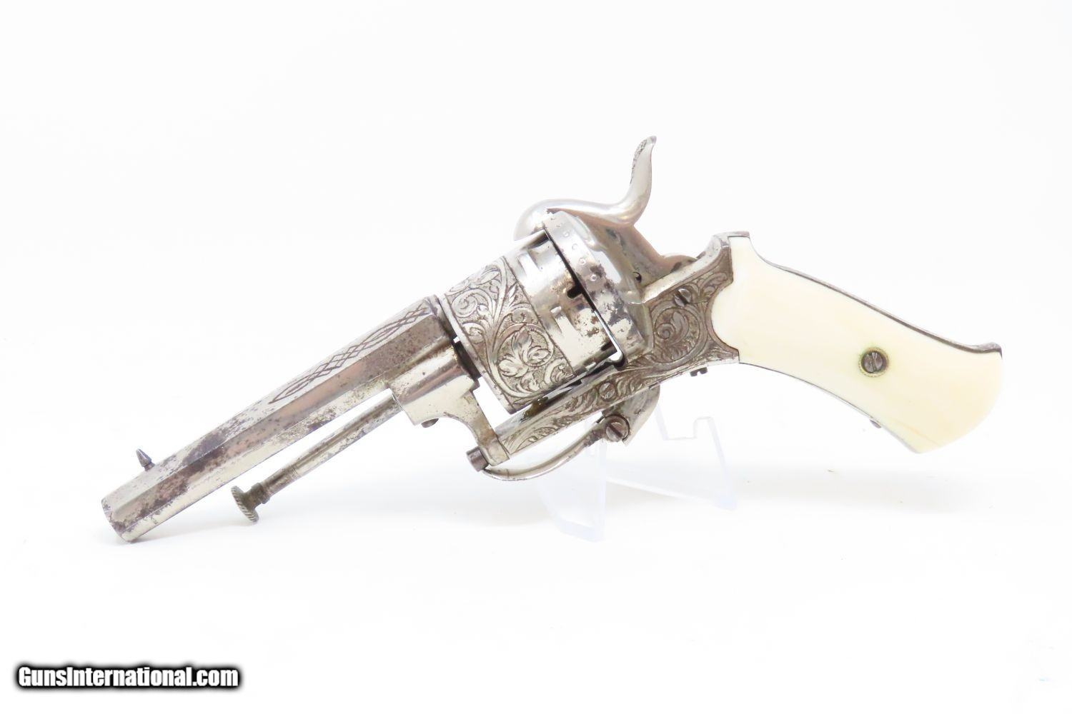 Antique ENGRAVED & IVORY European PINFIRE Folding Trigger REVOLVER 7.65mm Engraved 7.65mm Sidearm with IVORY GRIPS!
