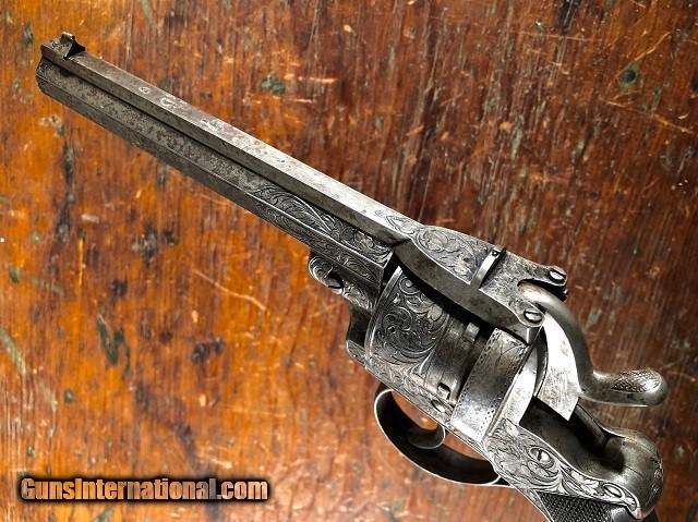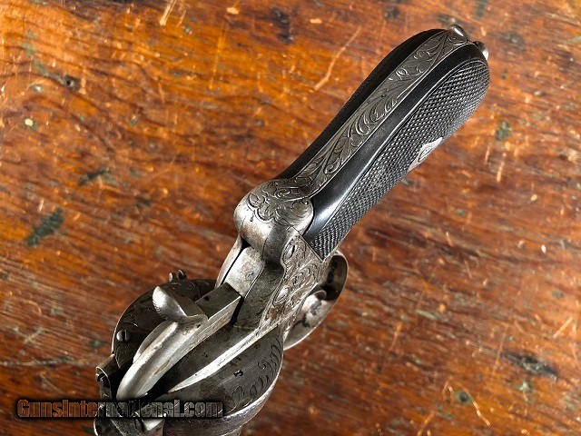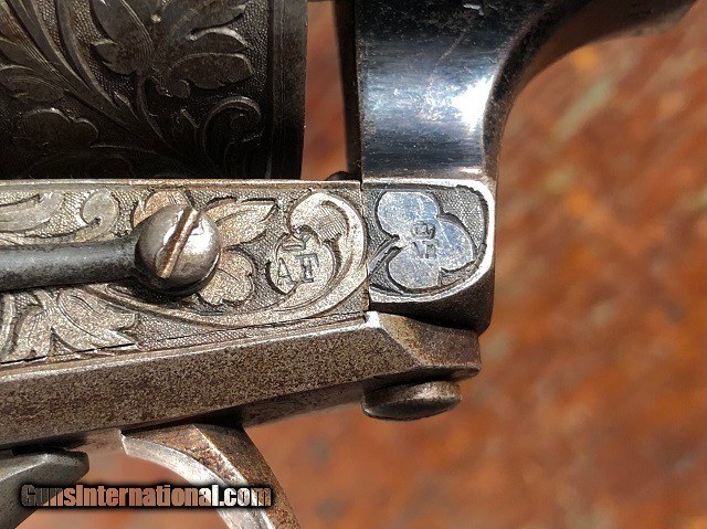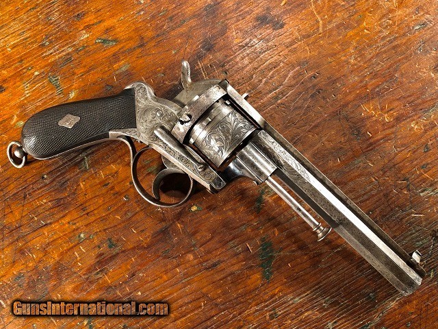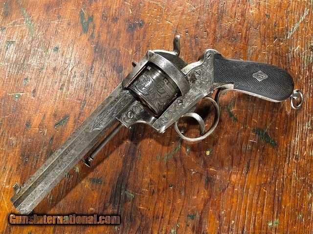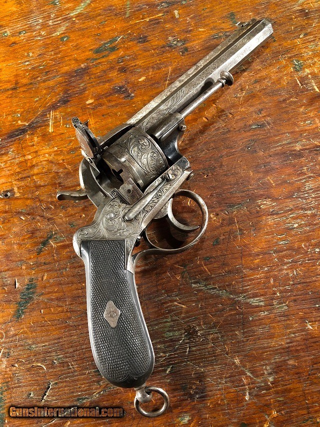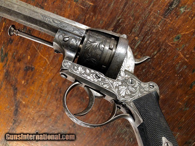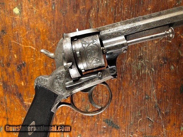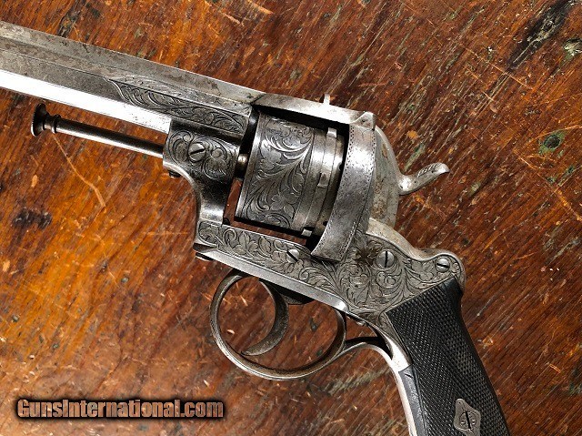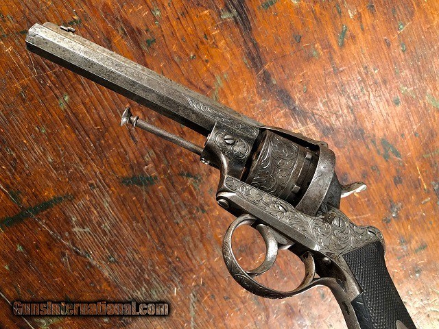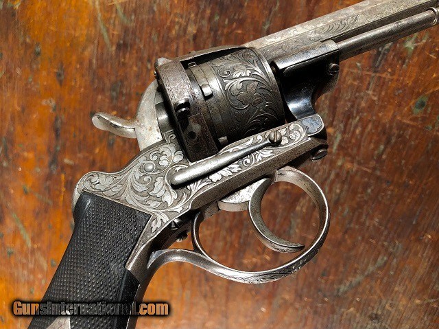 Auguste Francotte Large Relief Engraved Lefaucheux Double Action 11mm Pinfire Revolver Ebony Grips NICE!