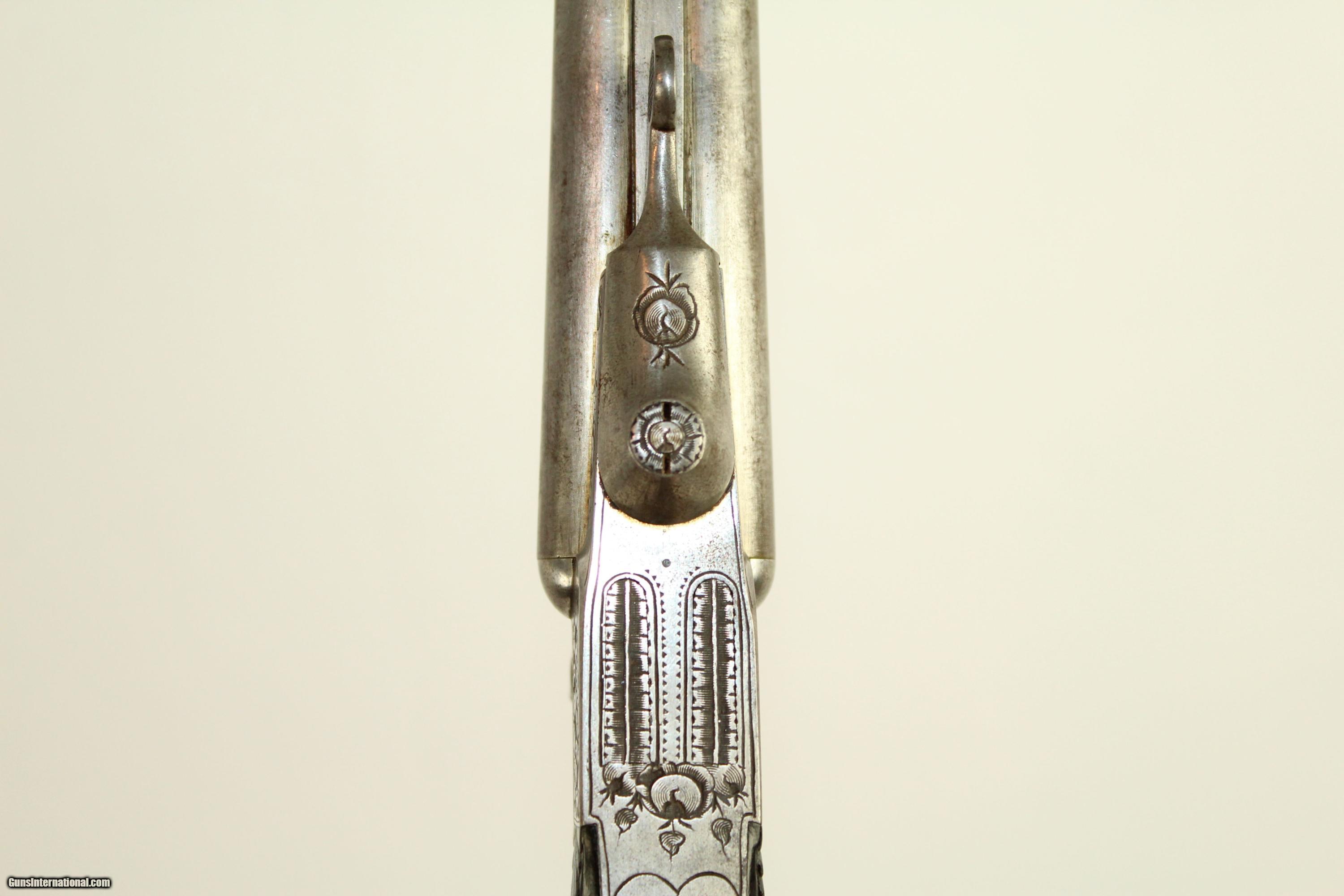 Description: ENGRAVED Euro Double Barrel SxS Pinfire Revolver 10mm FOLDING TRIGGER Pistol with Carved EBONY Grip Here we present an antique European Pinfire Double Barrel Pistol, made circa 1850. This pistol was made for self-defense in 19th Century Europe. It was designed to be short, handy, and powerful with an overall length that would easily fit in a pocket, triggers that folded out of the way, and 10mm chambering. The triggers descended as the hammers were cocked, and both barrels could be fired at once or one at a time. Very much like a shotgun in design, the lever underneath swivels to lock or unlock the barrels, which tip up for loading. The pinfire cartridge was one of the very first successful metallic, self-contained cartridges in history. It was invented by Frenchman Casimir Lefaucheux, and he was granted a patent in the mid-1830s. This predates the invention of rimfire by about 10 years. Aside from being first, the pinfire cartridge was not primed on the back of the cartridge, but had a pin (basically a firing pin) projecting out of the side of the cartridge. Thus the firearms made for this early cartridge had flat hammers that struck the cartridge from the top, as the pin would project out of a small hole in the chamber. The first revolver to shoot these ingenious cartridges was Casimir’s son Eugene Gabriel Lefaucheux in 1854. The design was hugely successful and many European militaries adopted them. The design was also licensed to many firms, especially in Belgium, but many were also made in France, Spain and Germany. This example features a finely engraved frame, triggers and lever. The grip appears to be carved and fluted ebony, a very hard and dark wood. The overall condition is fine. The engraved, carving and fluting are still sharp and clear. Grips are excellent. The bores are fine and shiny. The action is excellent and the lockup is strong. Own the original! This is a legitimate antique and not a reproduction. Barrel is 6-1/4 inches in length. Caliber: 10mm Pinfire Bore is in fine condition and shiny. The firearm is in excellent working order. Overall condition as seen in photos. Here is a fantastic late 19th Century European revolver! Very Fast. Very Safe. FREE SHIPPING WORLDWIDE. Delivered directly to your door by express mail! Guaranteed AUTHENTIC & Includes CERTIFICATE OF AUTHENTICITY. ancestryguns $900 #21772 SOLD Antique: Yes |