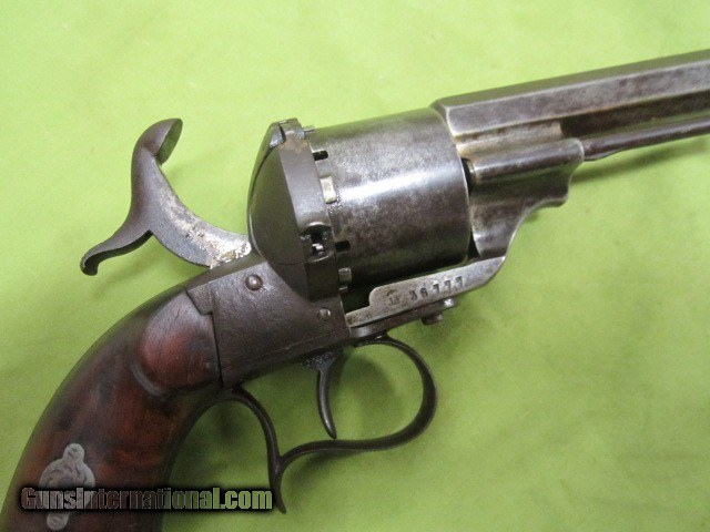 Description: Lefaucheux model 1854 pinfire revolver cal 12 mm ,6 1/4 (159mm) octagon barrel ,6 shot,during the civil war the federal govt bought 11,833 of these revolvers in serial range 25,000 to 37000 this revolver's serial # is 36777 .good shape works fine 1/2 & full cock cyl rotaes & locks up good ,wood grips are sound no cracks or breakstight gun no wobble ,all complete & all original see pics.this is an antique no FFL required can be sent directly to you if legal in your state must be 18 years of age to buy.this is being sold as a collector's item only not warranted safe to shoot.info from "the pinfire system " by Gene P. Smith & Chris C. Curtis SALE PENDING SOLD Antique: Yes Manufacturer: Lefaucheux Model: 1854 Serial Number: 36777 Caliber Info: 12mm |