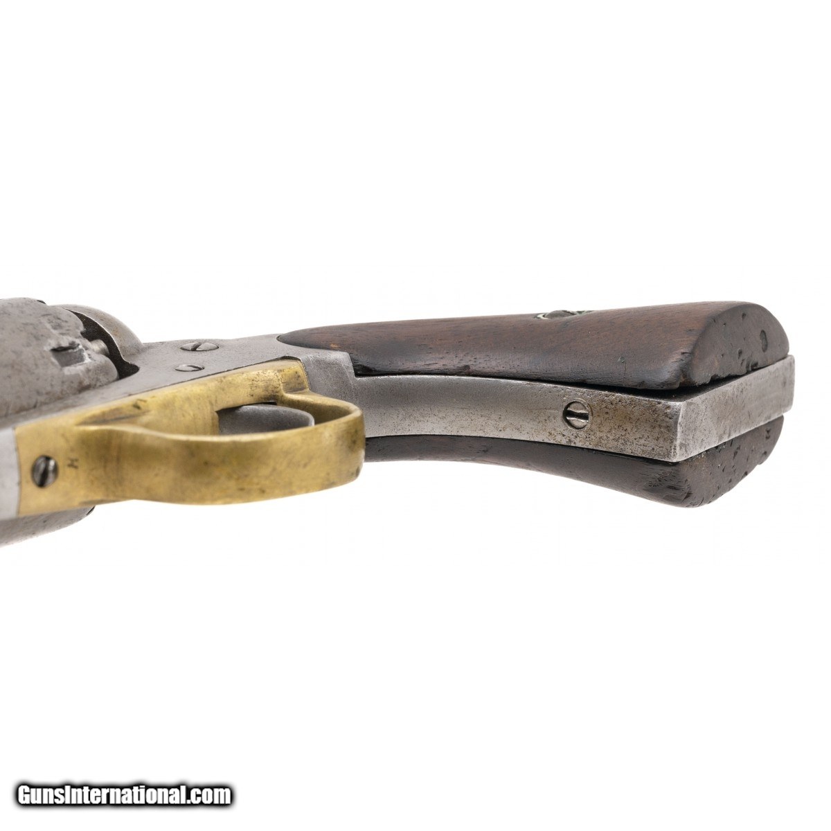Description: " Serial No. 105030, circa 1865-1866, .44 caliber, 8"" octagonal barrel. Finish is a smooth polished grey patina, barrel address is faint but visible. Inspector marks are noted on cylinder and trigger guard, serial numbers are matching and grips are un-numbered. Grips do show light handling wear. Action indexes correctly. Consignment SOLD Antique: Yes |