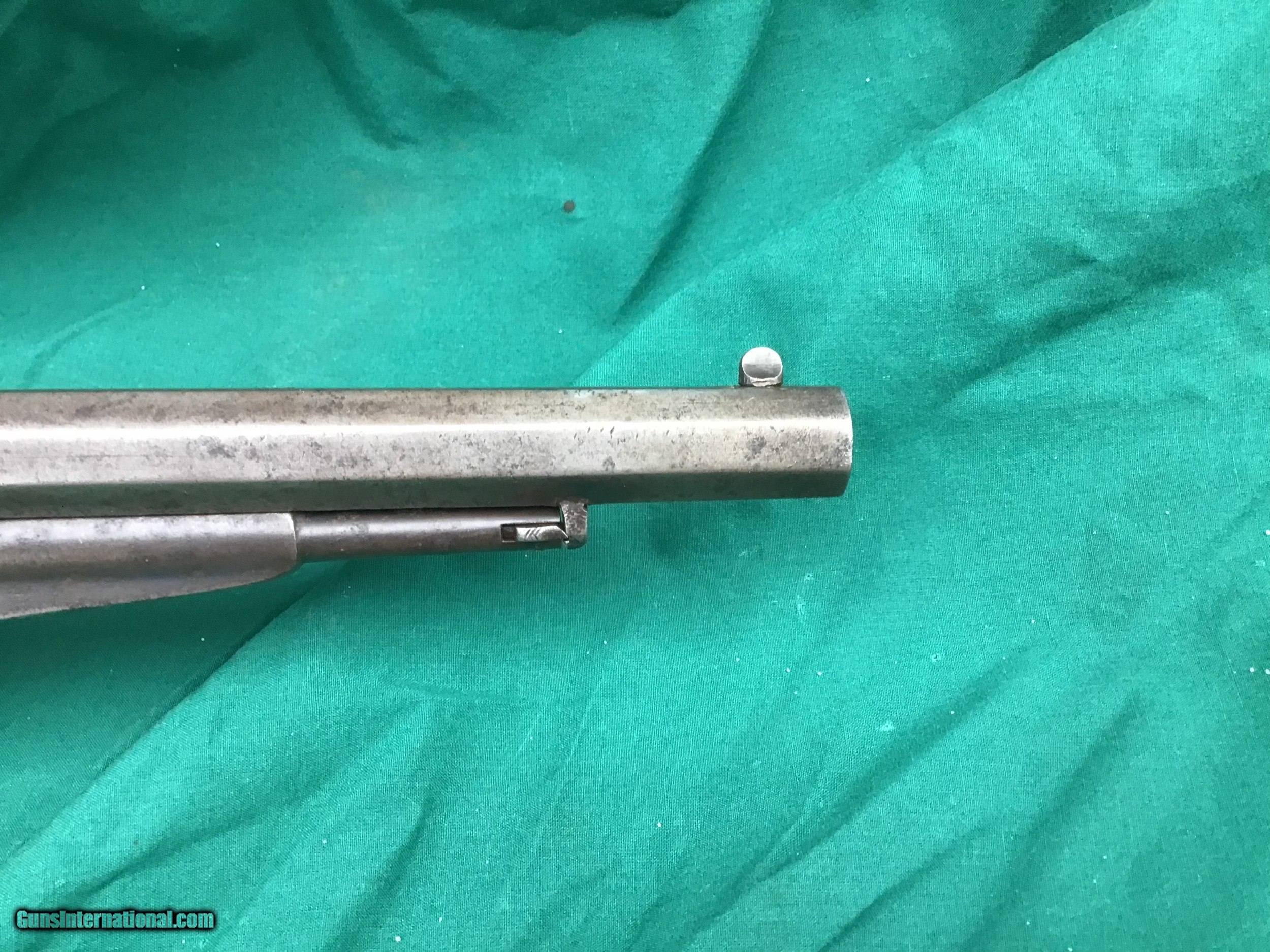 Description: 1858 Remington New Model Army. Civil War Range. Serial number 92,033 under barrel and on grip frame. 8" barrel in .44 percussion. Action functions nicely. Overall a gray / brown patina. All the inspectors marks are present and traces of a cartouche is present on the left grip. Just a good used but not abused 1858 Remington that more likely was used in the Civil War. Antique and can be shipped directly to your doorsteps. Please feel free to ask questions. SOLD Antique: Yes Handgun Caliber: .44 |
