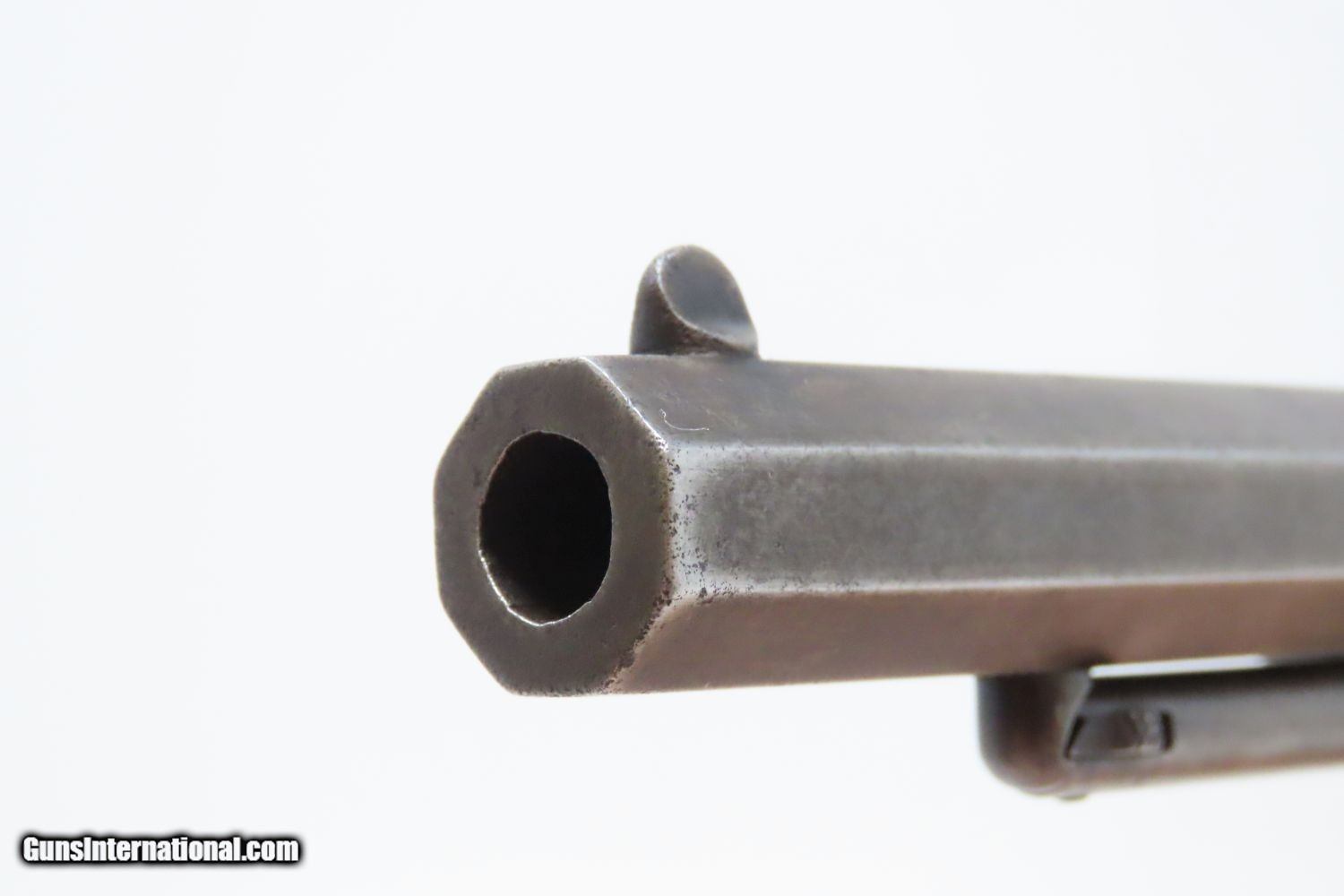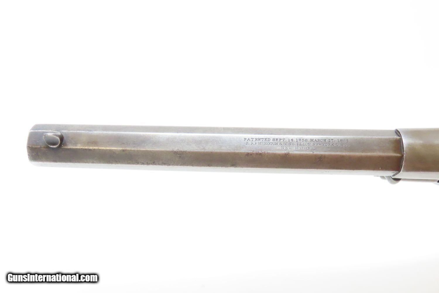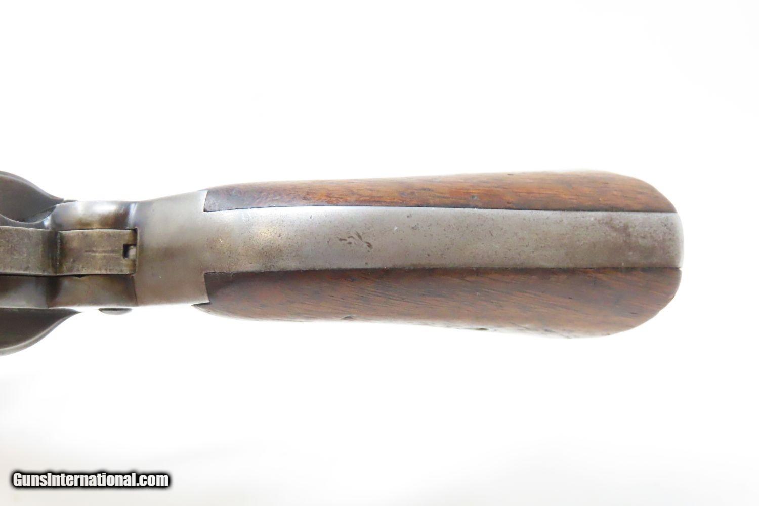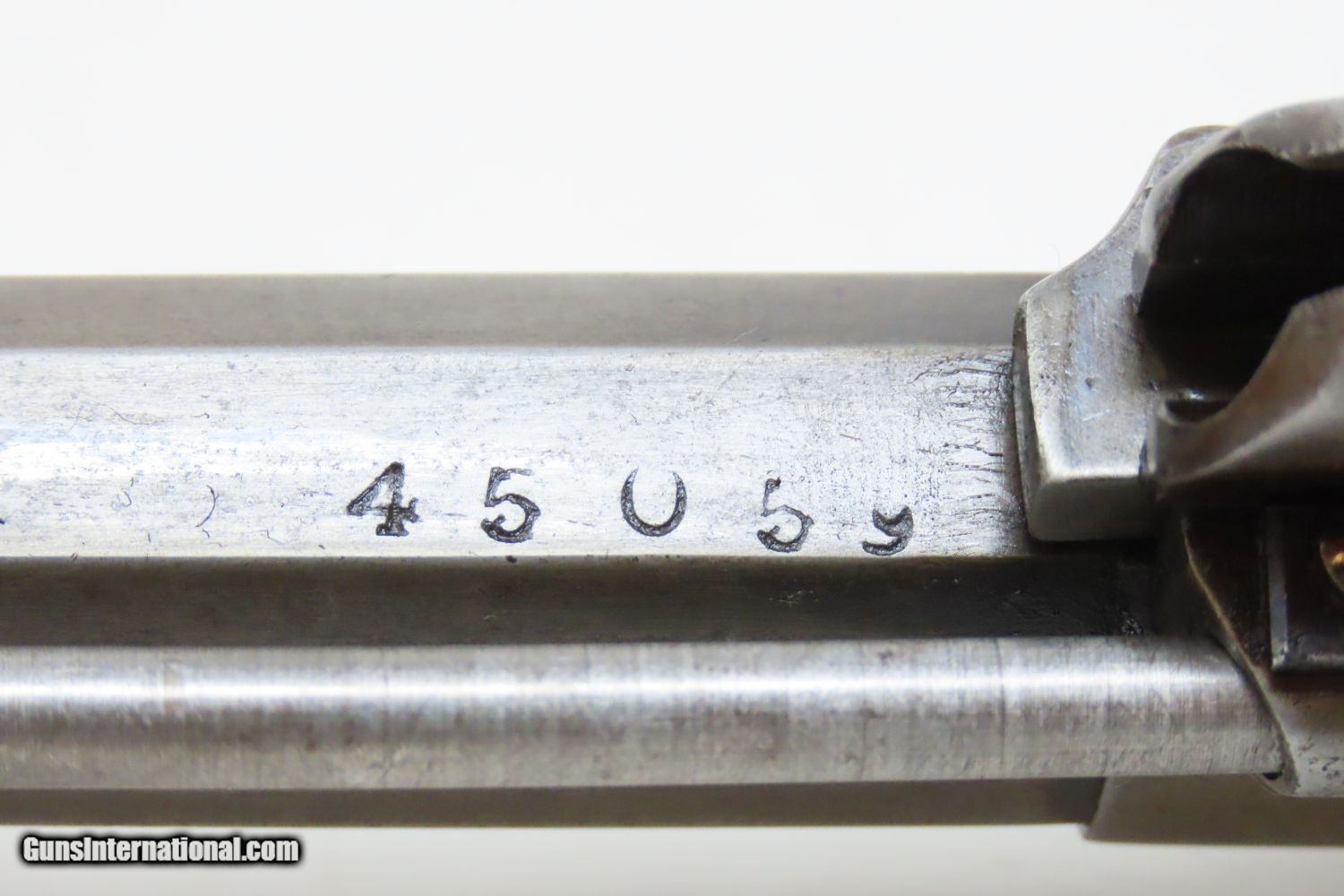 Description: TRANSITIONAL Antique REMINGTON CARTRIDGE CONVERSION New Model NAVY Remington New Model Navy Revolver in .38 Long Here we present an antique U.S. Remington New Model Navy Cartridge Conversion Revolver, made circa 1863 to 1878 in Ilion, New York. About 28,000 New Model Navy revolvers were made, some of them leaving the Remington factory in this configuration. This revolver has been converted from percussion to utilize .38 Long cartridges, making these very desirable in the budding metallic cartridge revolver market. Smith & Wesson’s infamous Rollin White Patent was just expiring. The US Navy even experimented with a small contract of these revolvers in this configuration, with a loading gate and ejector rod built in. These Navy models were fitted with hinged and latched loading gates, and nearly all came with ejector assemblies. These revolvers sold for a whopping $9.00. The overall condition is very good. Robust, tight action. Bright bore with sharp rifling. Good grips with expected wear. Grey patina throughout. Here is a very scarce and desirable factory cartridge conversion of Remington’s New Model Navy. A very neat transitional percussion to metallic cartridge revolver! Own the original! This is a legitimate antique and not a reproduction. Barrel is 7-1/2 inches. Caliber: .38 Long Overall condition as seen in photos. Very Fast. Very Safe. FREE SHIPPING WORLDWIDE. Delivered directly to your door by express mail! Guaranteed AUTHENTIC & Includes CERTIFICATE OF AUTHENTICITY. ancestryguns $3615 #215044 SOLD Antique: Yes |