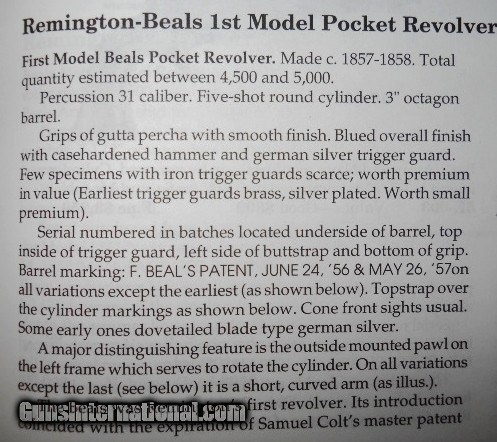 * Antique 1857 REMINGTON BEALS 4th ISSUE PERCUSSION POCKET REVOLVER