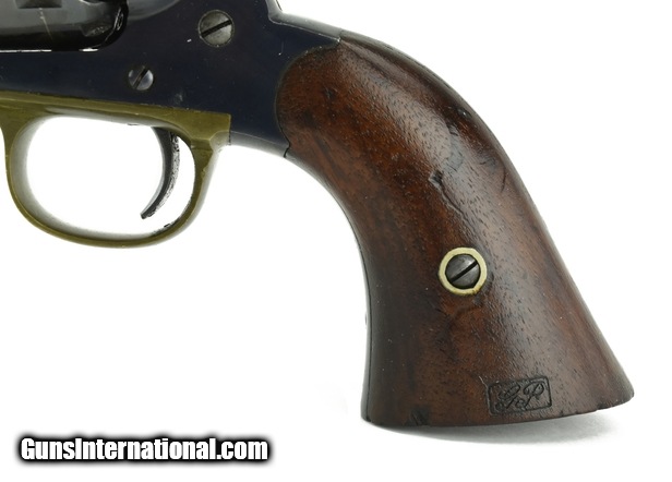 Excellent Remington New Model Army Revolver. Gun is in unissued condition with 97% of the original blue. The only finish missing is slight flaking on the cylinder. Grips are excellent with raised grain. Cartouches are perfect. Small chip out of the left hand side of the grips. Beautiful Remington Army!