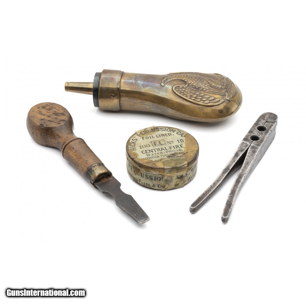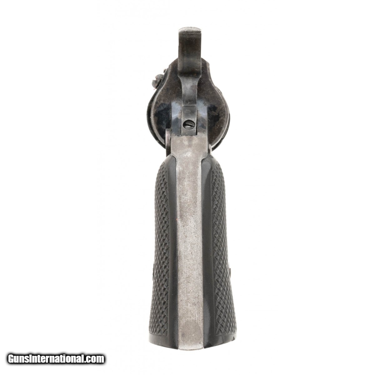 Description: "Very fine example with 85% blue on the barrel and about 25% of the blue on the rest of the gun. The grips are very good. The case has been relined. Accessories are nice. The bottom of the case has a name “S. B. Reynolds" And what appears to be a date. SOLD Antique: Yes |