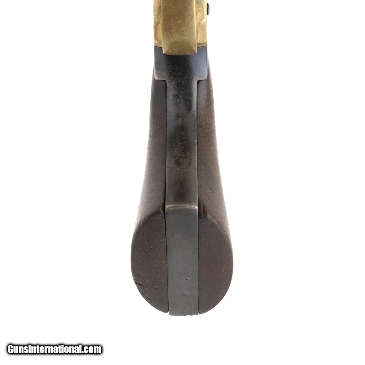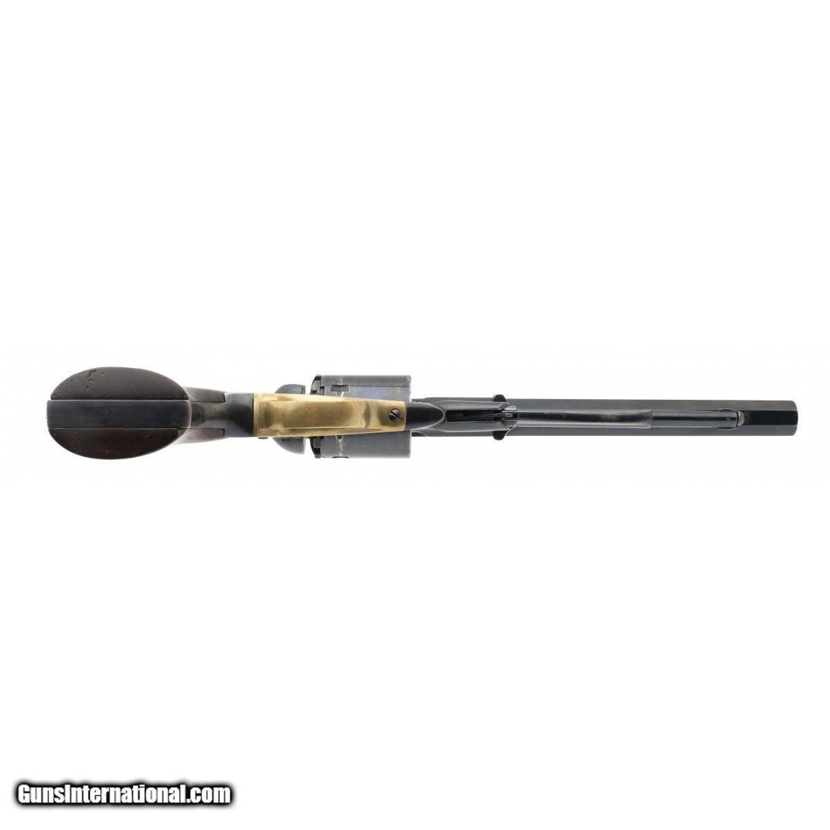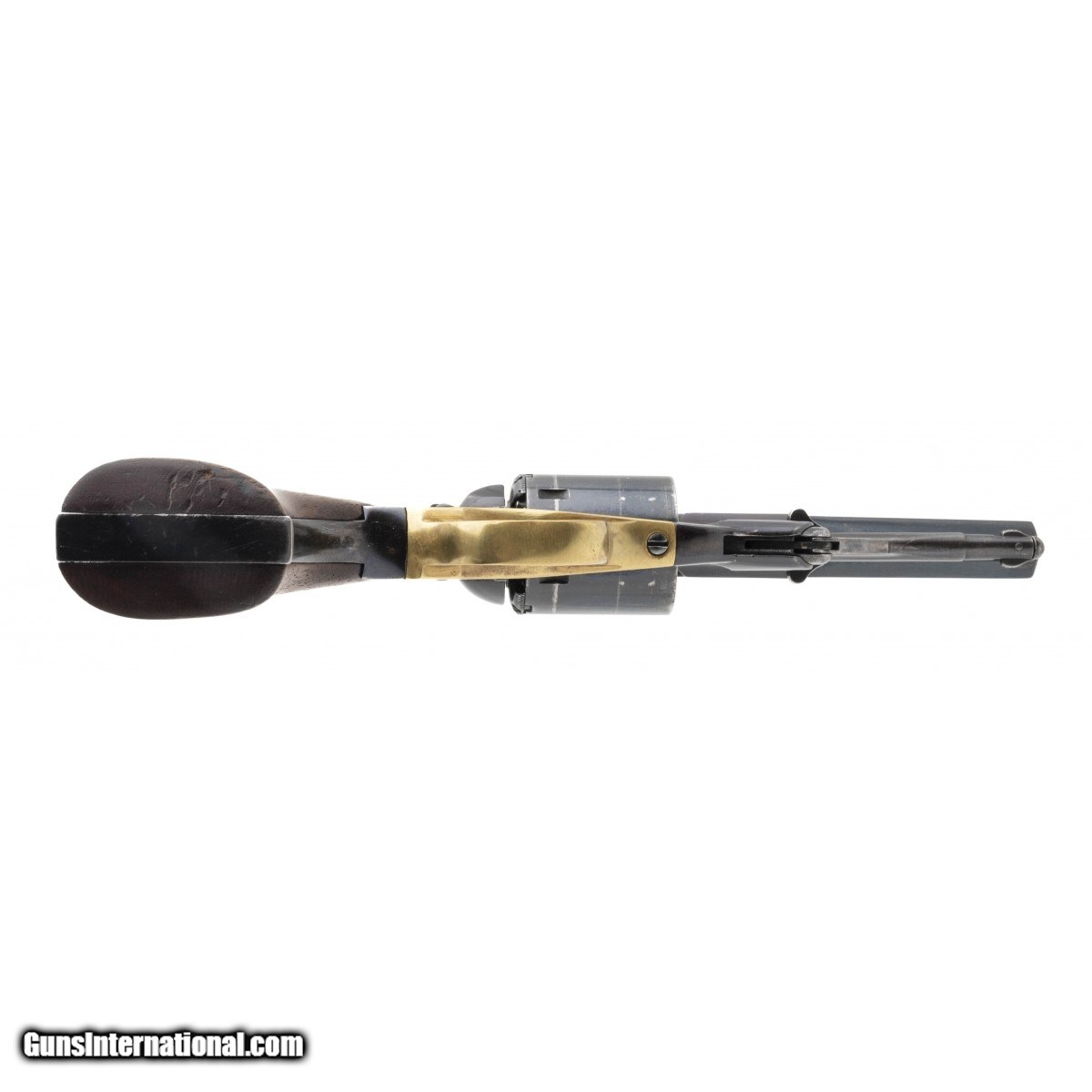 Description: " A neat pair of antique percussion revolvers, an 1858 New Model Navy and a New Model Police. Both guns have been converted to .22LR, with target sights, jeweled hammers and checkered grip frames, then reblued. The guns come cased in a custom wooden presentation case. A great looking set, in excellent condition. SOLD Antique: Yes |