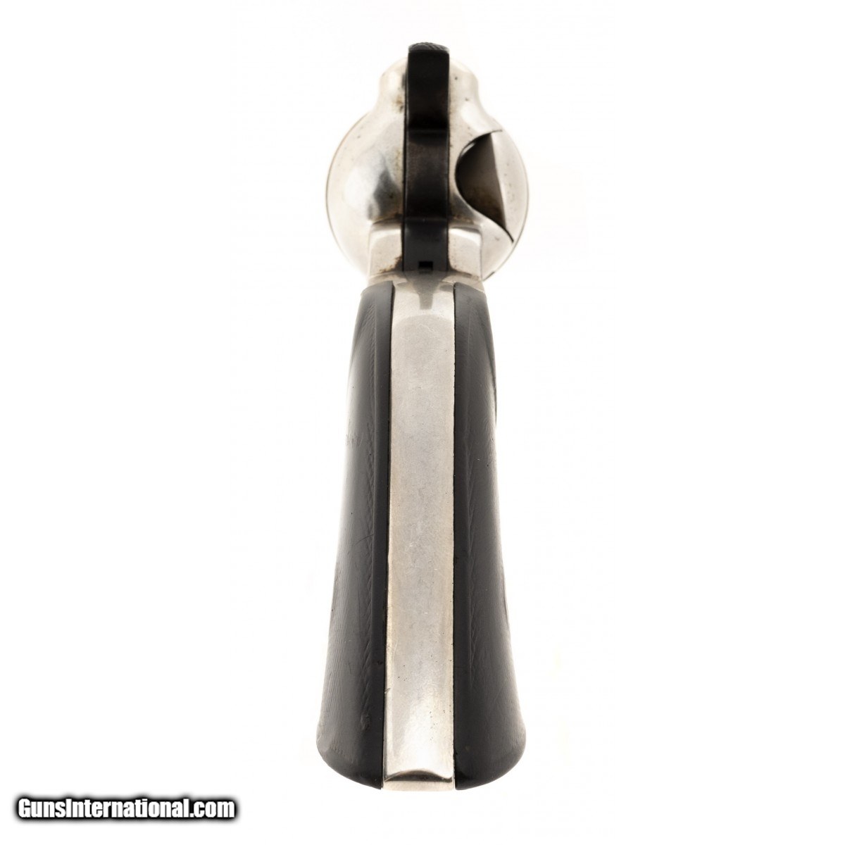 Description: "Made in 1888 – 1889. 44-40 caliber with a 5 ¾" barrel. This gun is excellent as expertly refinished. The refinish looks to have been done long ago. The grips show a fair amount of carry use. Action works well and locks up tight. The 1888 model is a transition between an 1875 model and an 1890 model. The main way to tell the difference is the barrel address is the same as the 1875 model with “E. Remington & Sons……" instead of that of the 1890 model which reads “Remington & Sons….." Very nice scarce gun! SOLD Antique: Yes |