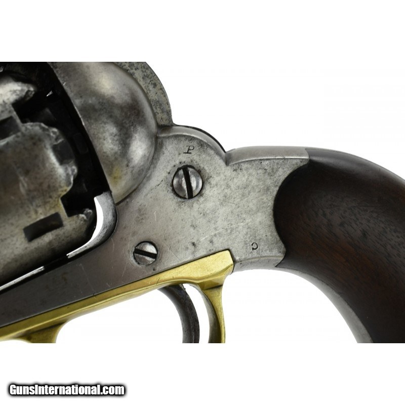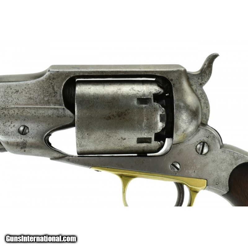 Description: "Remington Model 1861 Navy (old model Navy). .36 Caliber. Approximately 7000 revolvers made in 1862. U.S. Martially marked with inspector’s initials on all metal parts. Grips have a faint cartouche. Bore is good with strong rifling. Action works and indexes perfectly. Barrel markings are sharp and clear. Decent 1861 Navy. Show some use but not excessive and no abuse. Inspector marks are clear. SOLD Antique: Yes |