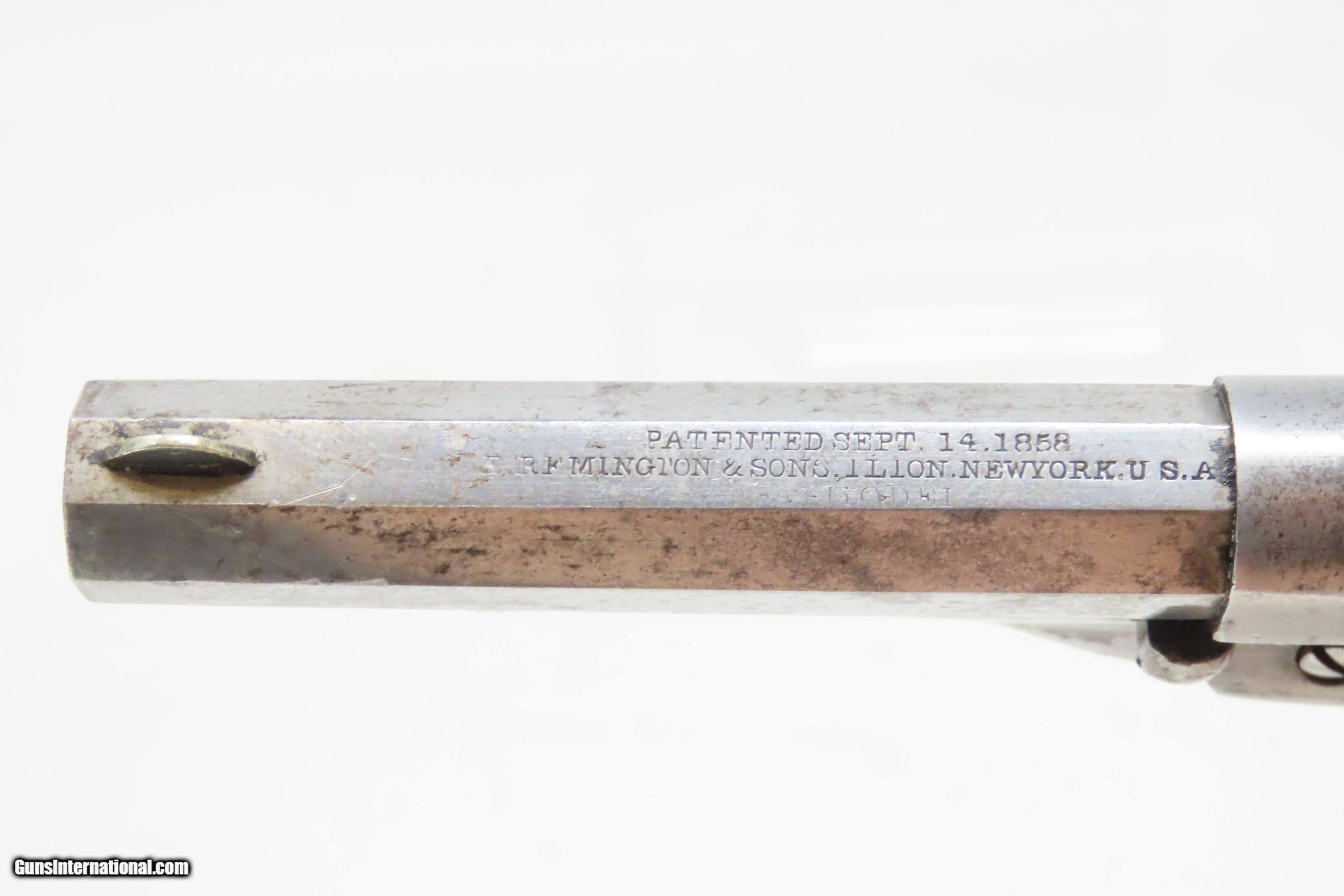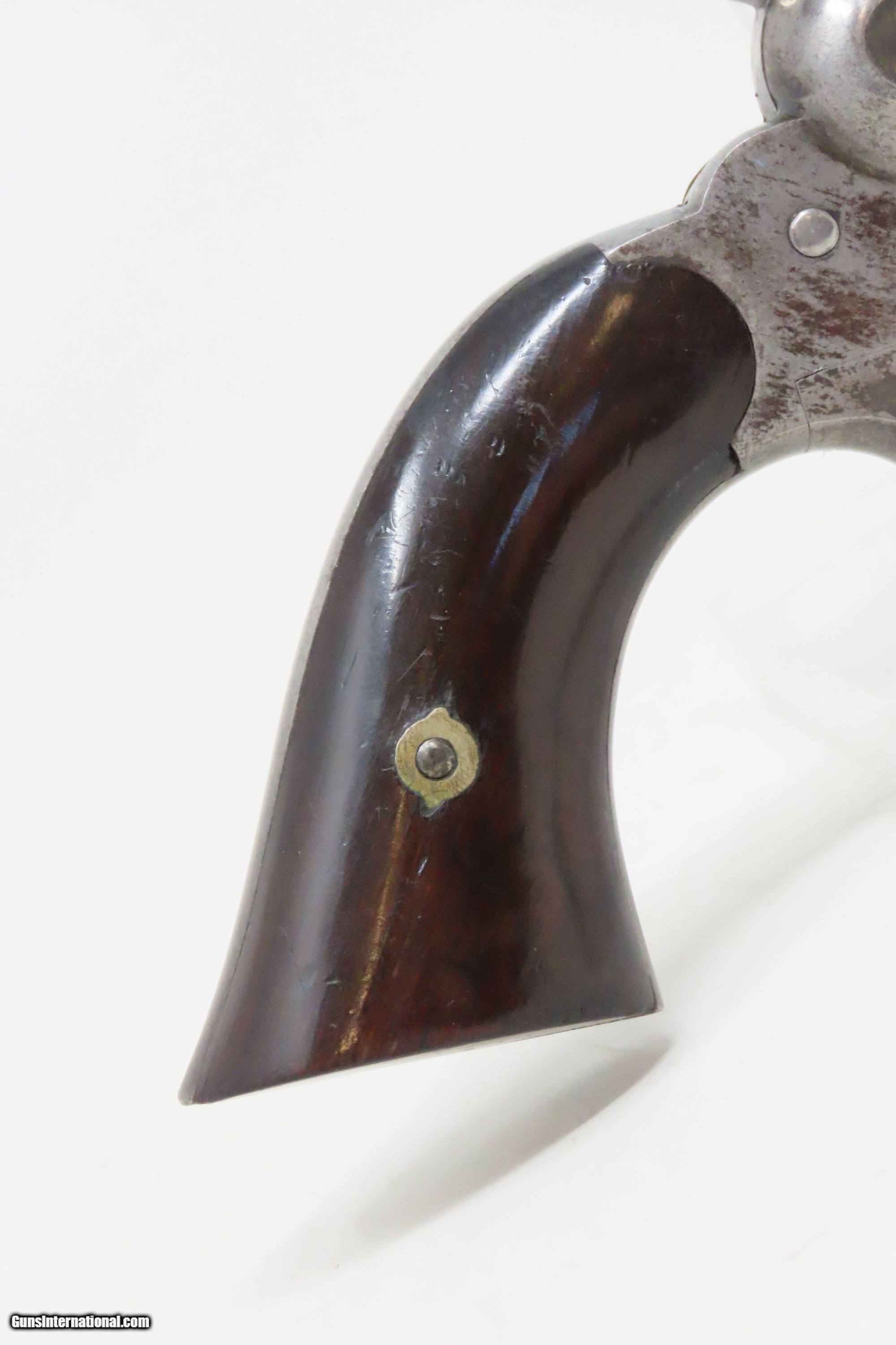 Description: Antique REMINGTON New Model .32 Rimfire FACTORY Conversion POCKET Revolver Mid-19th Century Spur Trigger Conceal & Carry Revolver Here we present a Remington New Model Percussion to Rimfire Conversion Pocket Revolver, made circa 1865-73 in Ilion, New York and converted shortly thereafter likely with a factory conversion. It would have started out life as a .31 caliber percussion revolver prior to conversion. This revolver was designed for defensive carry and would have been equally at home in a holster, pocket or purse. With 5 rounds of .32 rimfire one could get themselves out of most scrapes. This revolver was modified to accept metallic cartridges near the expiration of the Smith & Wesson owned Rollin White Patent, which prevented other companies from using the bored through cylinder until 1869. The overall condition is fine. Original nickel finish. The action is excellent. The bore is bright with sharp rifling. Very nice rosewood grips. Matching numbers. Own the original! This is a legitimate antique and not a reproduction. Barrel is 3-1/2 inches. Caliber: .32 Rimfire Overall condition as seen in photos. Very Fast. Very Safe. FREE SHIPPING WORLDWIDE. Delivered directly to your door by express mail! Guaranteed AUTHENTIC & Includes CERTIFICATE OF AUTHENTICITY. ancestryguns $2000 #240460 SOLD Antique: Yes |