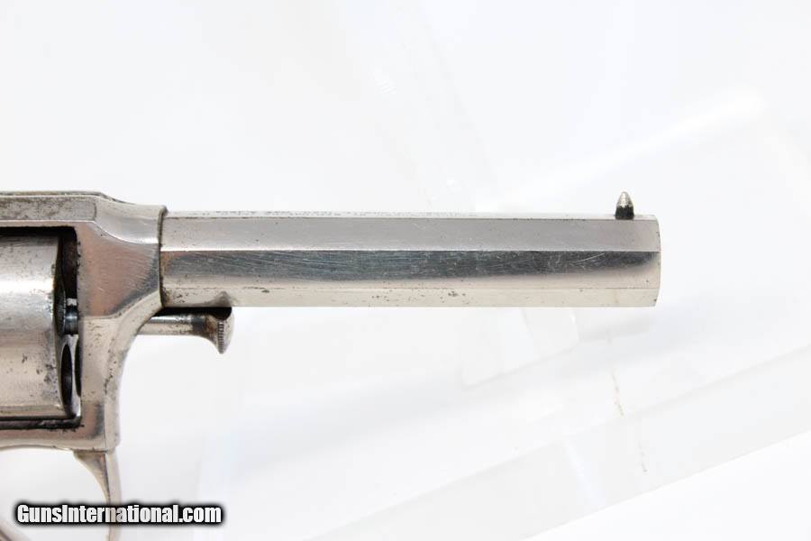 Description: Antique REMINGTON-RIDER POCKET MODEL DA Revolver Civil War Era .32 Caliber Factory Conversion from Percussion Here we present a Civil War era Remington-Rider Pocket Model Double Action Revolver, made circa 1860-1873. This nickel plated revolver is a 5-shot, chambered for the .32 rimfire cartridge. The first ones produced in 1860 were black powder and had a “mushroom” cylinder for the percussion caps. Then, sometime around 1863, Remington took some of them in and converted them to cartridge. Remington’s new approach to the conversion of its percussion revolvers was considerably more diverse than Colt. Remington’s new conversions utilized a conversion method that made use of a two piece cylinder. This required cutting off the back portion of the cylinder below the percussion nipples, drilling the chambers completely through and counter-boring the back of the cylinder to accommodate the cartridge rims. A cylinder cap, with ratchets to engage the hand and openings to allow the hammer to strike the cartridge rim, completed the conversion. Fortunately, the design of the Remington hammer required only slight modification in order to work with the two-piece cylinders, and it would still work with the percussion cylinder. By simply replacing the old cylinder, the gun could be used as a conventional cap-and-ball revolver, which proved fairly handy on the frontier where a box of cartridges couldn’t always be found! More than 25,000 Pocket models were produced, with the majority either converted to or produced as .32-caliber cartridge pistols. The Remington revolvers were available with both cylinders, again making the Remington a more versatile model than a comparable Colt pocket pistol. The way to tell if the gun was released from the factory as a .32 rimfire, or if it was a conversion would be by inspecting the cylinder. If there was a capping groove on the right side, it was originally released as a percussion revolver as the later models made for cartridges, lack this groove. The overall condition is fine. The nickel finish is 95%. The markings are clear. The numbers match. The hard rubber grips are in great shape. The bore is very good with strong rifling. The action is excellent, strong and crisp. Here is a scarce Remington, a Civil War era metallic cartridge firearm, in fine condition! Own the original! This is a legitimate antique and not a reproduction. Barrel is 3-1/8 inch octagon. Caliber: .32 Rimfire Overall condition as seen in photos. Very Fast. Very Safe. FREE SHIPPING WORLDWIDE. Delivered directly to your door by express mail! Guaranteed AUTHENTIC & Includes CERTIFICATE OF AUTHENTICITY. ancestryguns $1425 #8546 SOLD Antique: Yes |