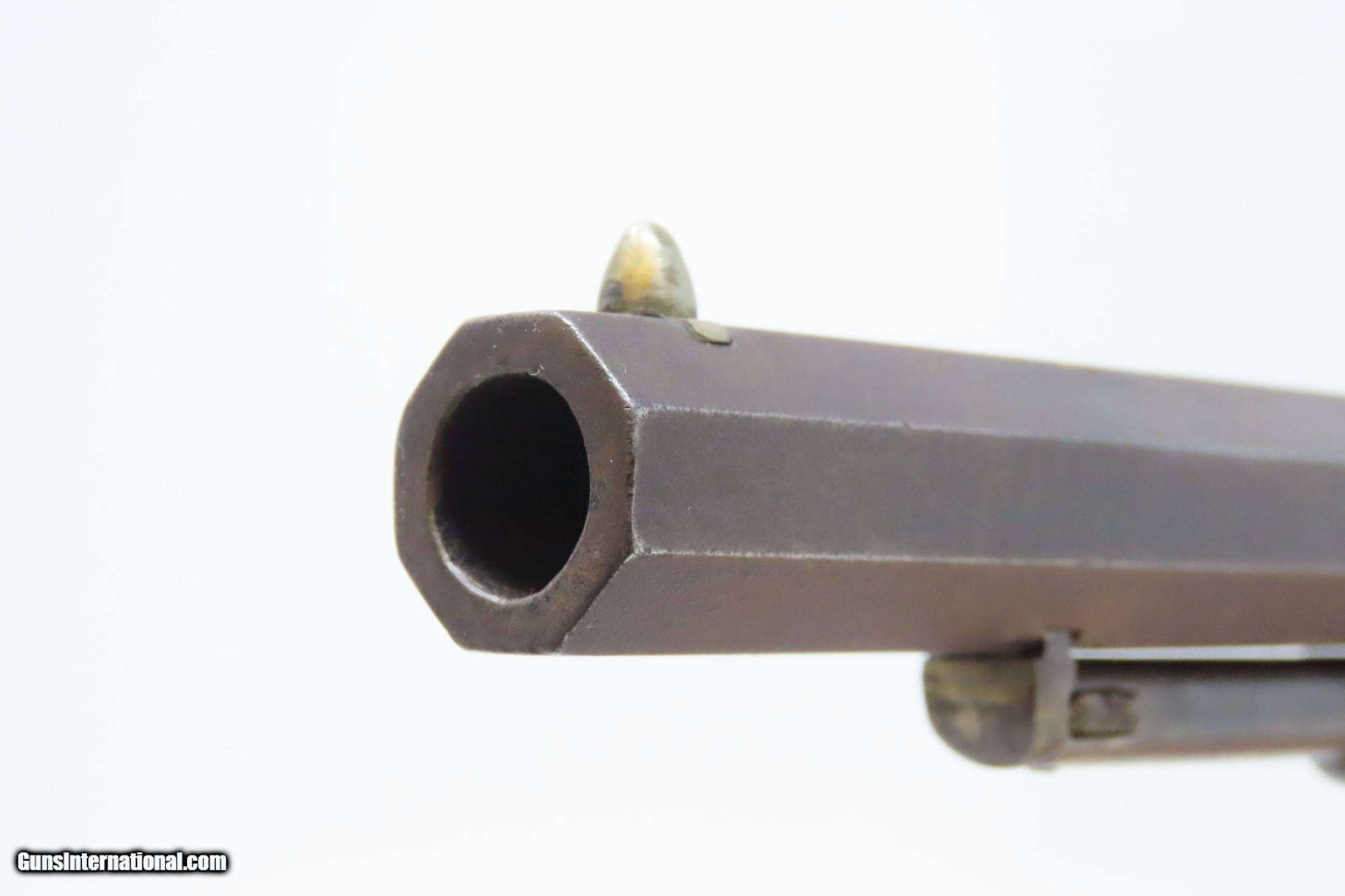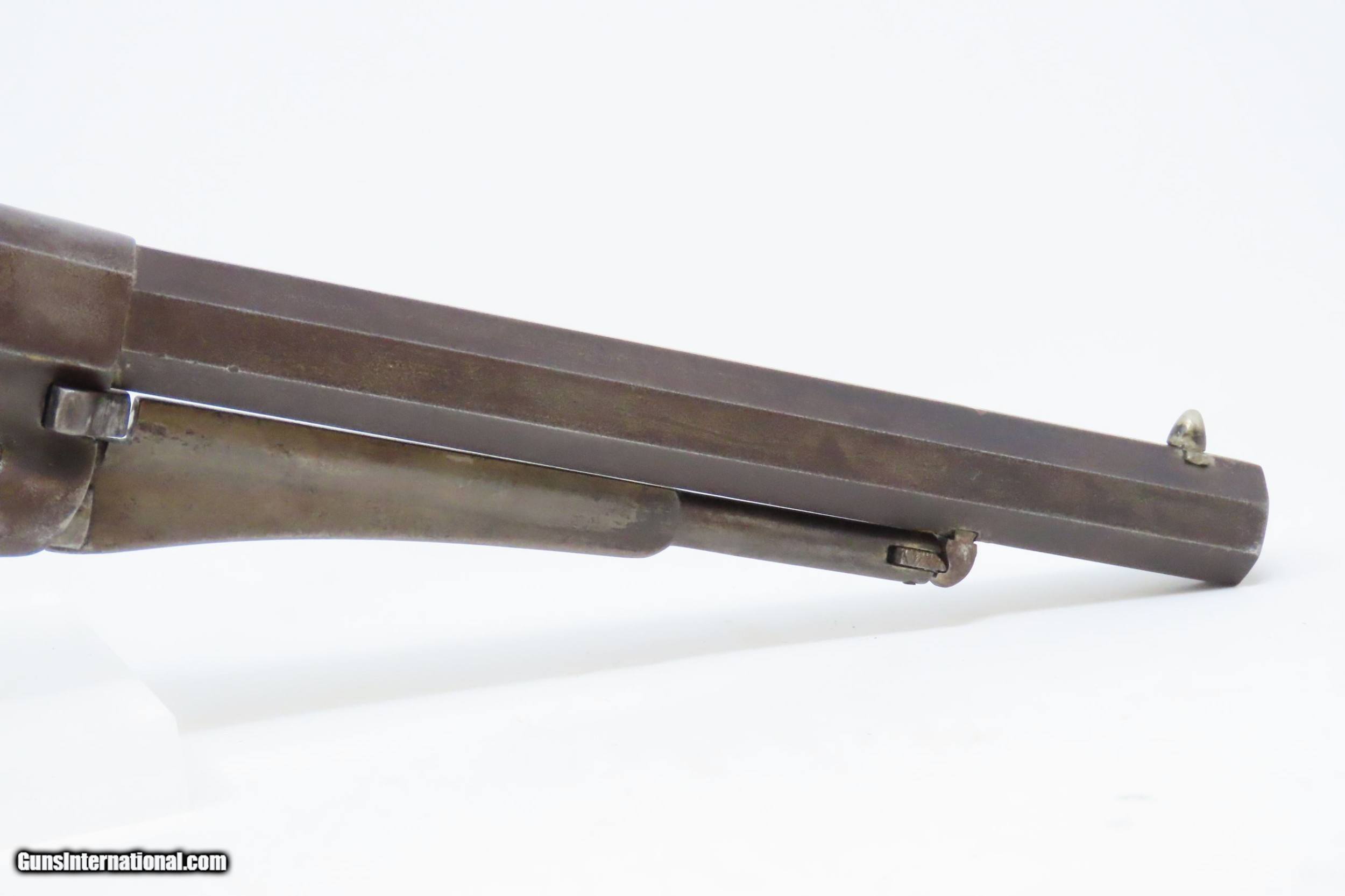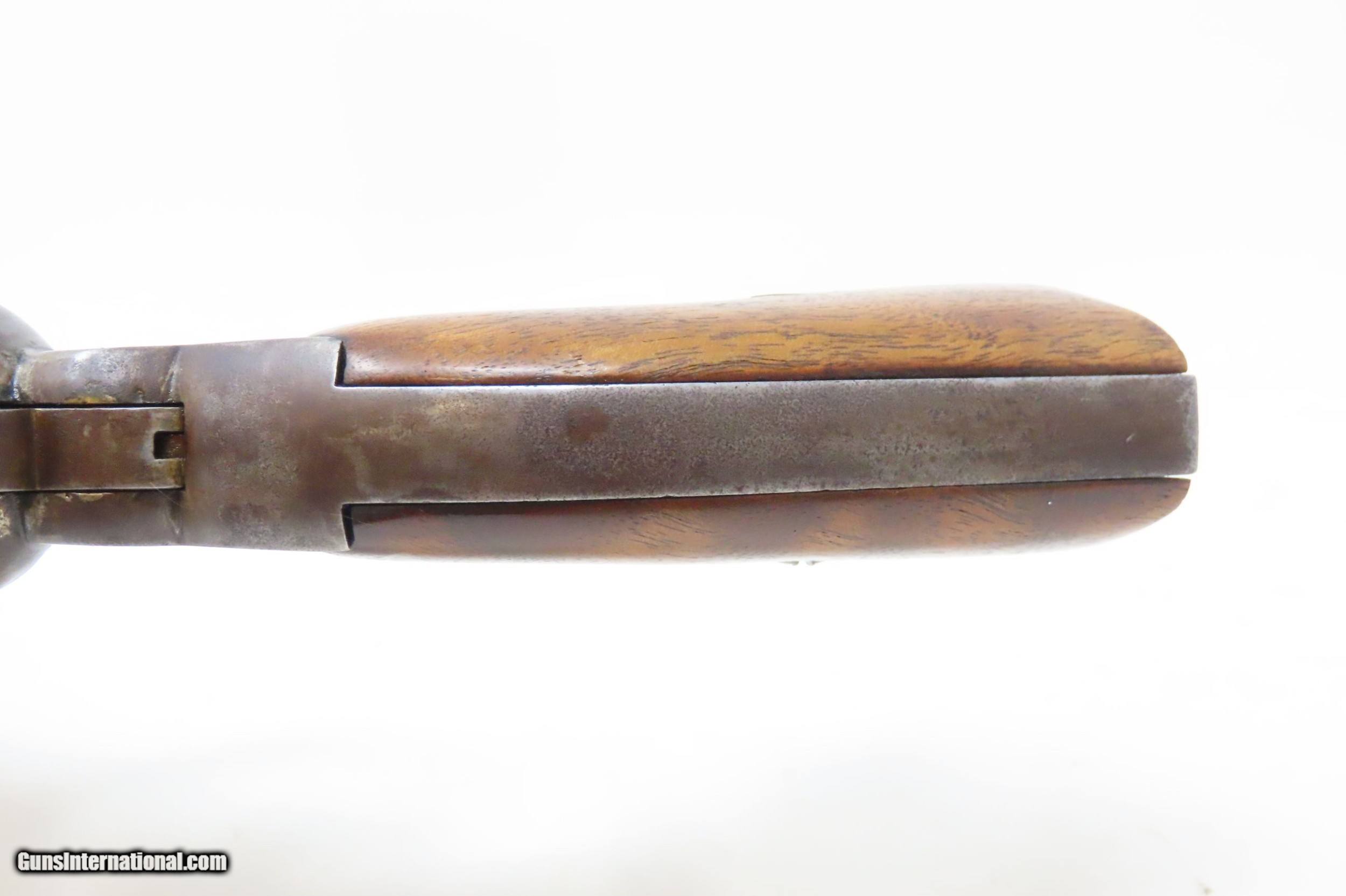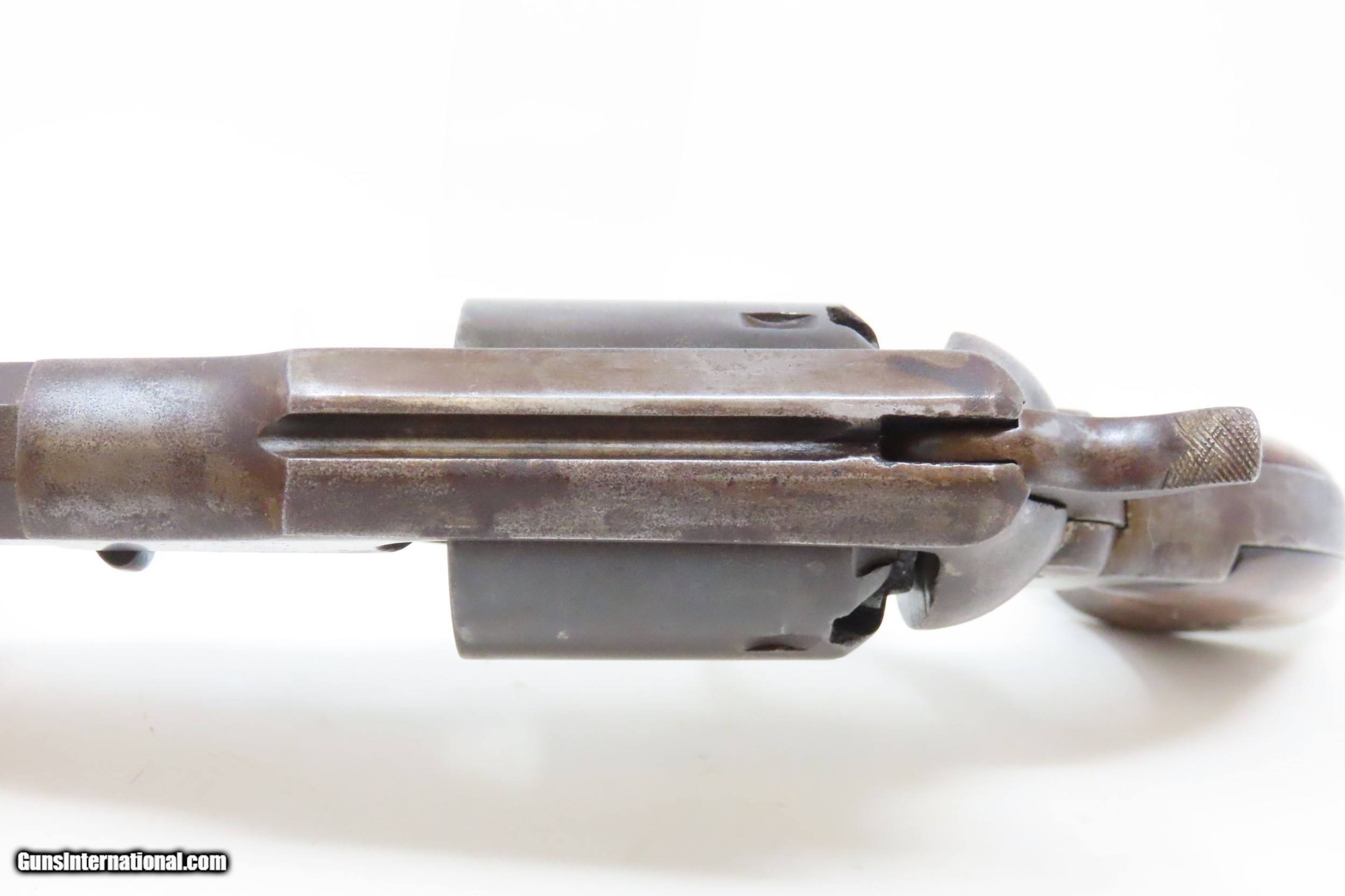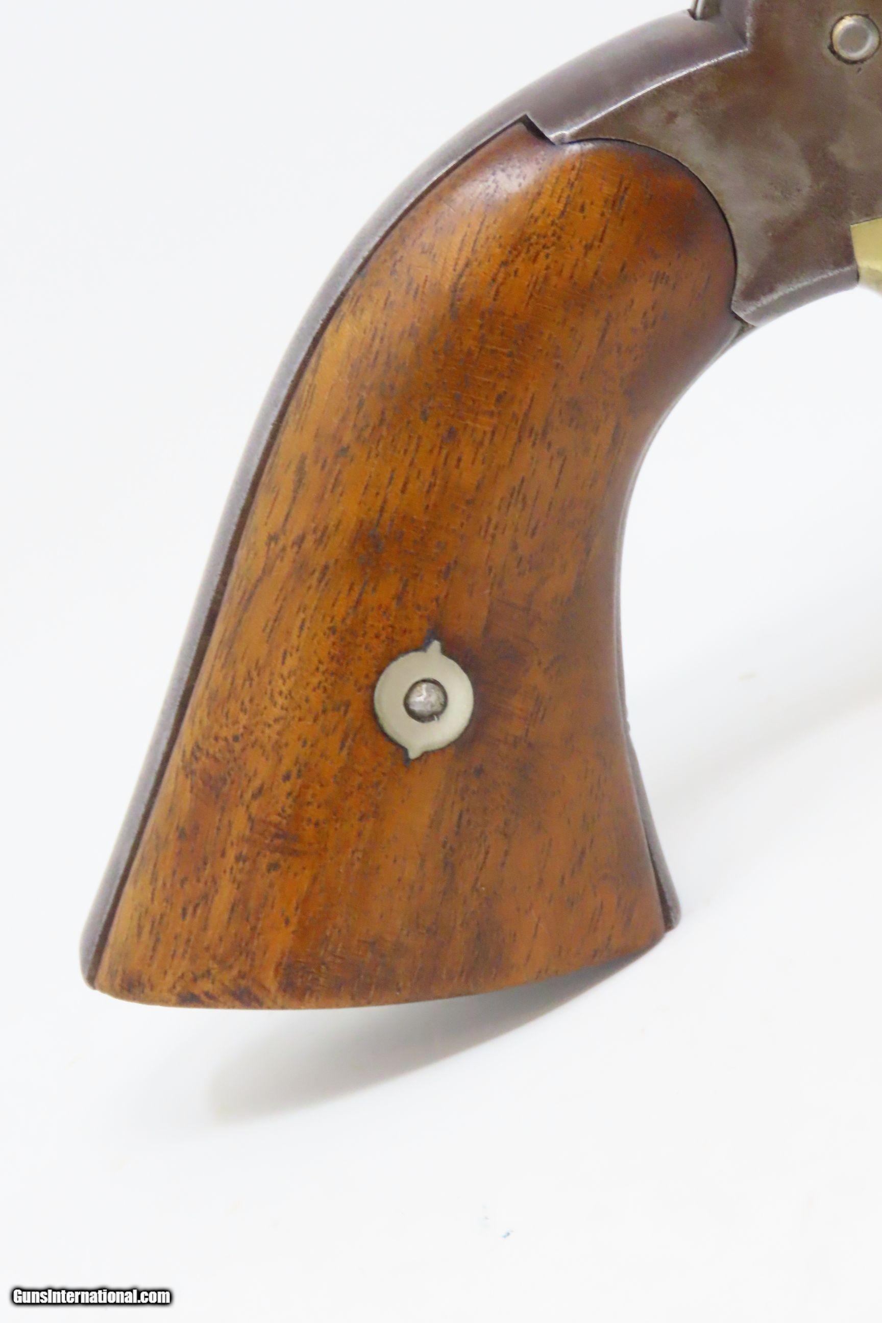 Description: CIVIL WAR Antique US MILITARY Contract Percussion REMINGTON New Model ARMY Made and Shipped Circa 1863-65! Here we present an antique U.S. Remington New Model Army Percussion Revolver, likely issued to a Union soldier circa 1863-65, during the American Civil War. The New Model Army was manufactured from 1863 to 1875 with a total production of approximately 132,000 and represented the last of Remington's .44 caliber percussion revolvers. The Remington New Model Army represents the second-greatest number of issued handguns found on Civil War battlefields, second only to the Colt 1860 Army. The New Model Army was the primary revolver issued to Union cavalry after the fire at the Colt's factory in 1863. The Union government acquired a total of some 122,000 of these New Model revolvers for military use, with nearly 110,000 New Models purchased by the U.S. government during the Civil War, at a cost of around $11 each. The State of New Jersey also purchased several thousand for Civil War issue. The New Model 1863 Army represents Remington’s highest production martial pistol. It featured a strong, solid-frame design with the groove in the top for a rear sight, as opposed to Colt’s open-top design. Though Colt got the lion’s share of the government contracts, many consider the Remington New Model Army the superior firearm. William F. "Buffalo Bill" Cody used an ivory-handled New Model Army .44, serial number 73,293, from 1863 until 1906, when he gave it to his ranch foreman with a handwritten note which said that, "It never failed me”. The overall condition is good. Mostly darker patina throughout. There is what appears to be a shallow ding across the top barrel flat that was brazed to fill it. The action is strong. The bore is in good condition for age with good rifling. The numbers match on the trigger guard and grip frame and barrel. Inspection markings. The grips are a bit shy and the left grip has what appears to be a brand (as in a ranch) which appears to be a “Boxed JRE”. Own the original! This is a legitimate antique and not a reproduction. Barrel is 8 inches. Caliber: .44 Percussion Overall condition as seen in photos. Very Fast. Very Safe. FREE SHIPPING WORLDWIDE. Delivered directly to your door by express mail! Guaranteed AUTHENTIC & Includes CERTIFICATE OF AUTHENTICITY. ancestryguns $2000 #217979 SOLD Antique: Yes |