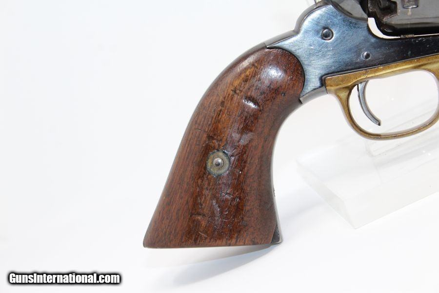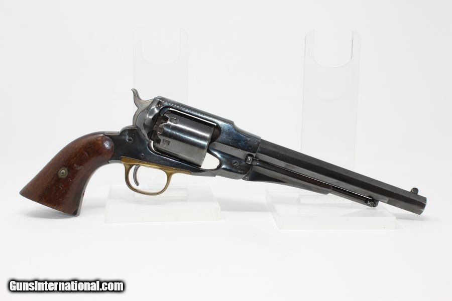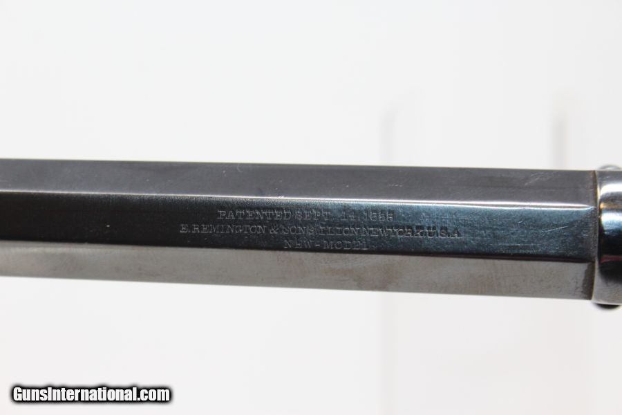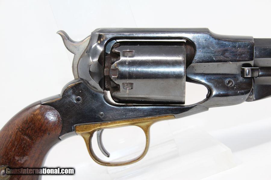 Description: CIVIL WAR Era US Contract REMINGTON New Model ARMY Made and Issued Circa 1863 Here we present an antique Remington New Model Army Revolver, likely issued to a Union soldier circa 1863, during the American Civil War. The Remington New Model Army represents the second-most number of issued handguns found on Civil War battlefields, second only to the Colt 1860 Army. The Union government acquired a total of some 122,000 of these New Model revolvers for military use, with nearly 110,000 New Models purchased by the U.S. government during the Civil War, at a cost of around $11 each. The State of New Jersey also purchased several thousand for Civil War issue. The New Model 1863 Army represents Remington’s highest production martial pistol. It featured a strong, solid-frame design with the groove in the top for a rear sight, as opposed to Colt’s open-top design. Though Colt got the lion’s share of the government contracts, many consider the Remington New Model Army the superior firearm. William F. "Buffalo Bill" Cody used an ivory-handled New Model Army .44, serial number 73,293, from 1863 until 1906, when he gave it to his ranch foreman with a handwritten note which said that, "It never failed me”. The overall condition is very good. The blue finish was reapplied at some point and is 95%. The markings are clear. The walnut grips show handling marks. There is a chip at the toe on the right grip and a hairline crack near the top that ends just short of the grip screw. The bore is in great shape with sharp rifling. The action is excellent, strong and crisp. Own the original! This is a legitimate antique and not a reproduction. Barrel is 8 inch octagon. Caliber: .44 Overall condition as seen in photos. Very Fast. Very Safe. FREE SHIPPING WORLDWIDE. Delivered directly to your door by express mail! Guaranteed AUTHENTIC & Includes CERTIFICATE OF AUTHENTICITY. ancestryguns $2325 #8212 SOLD Antique: Yes |