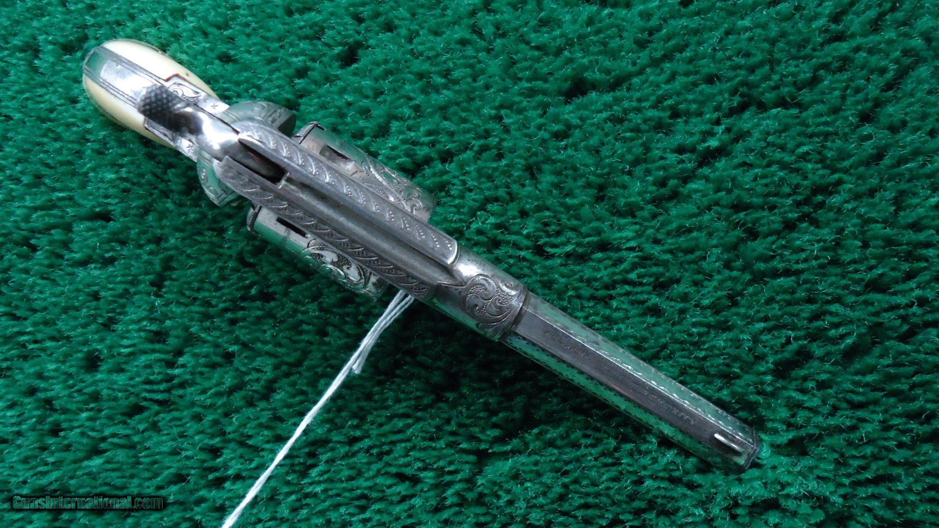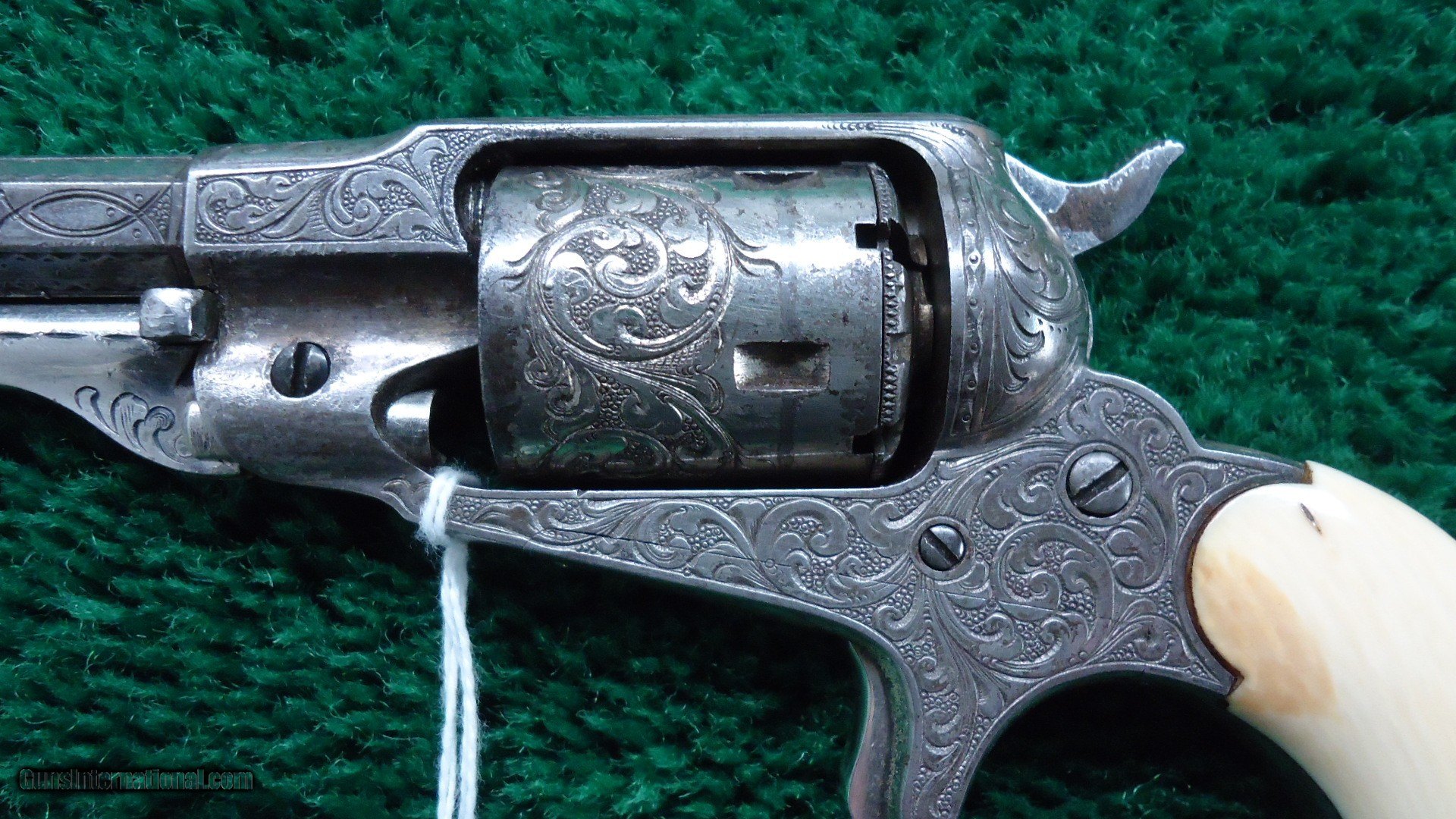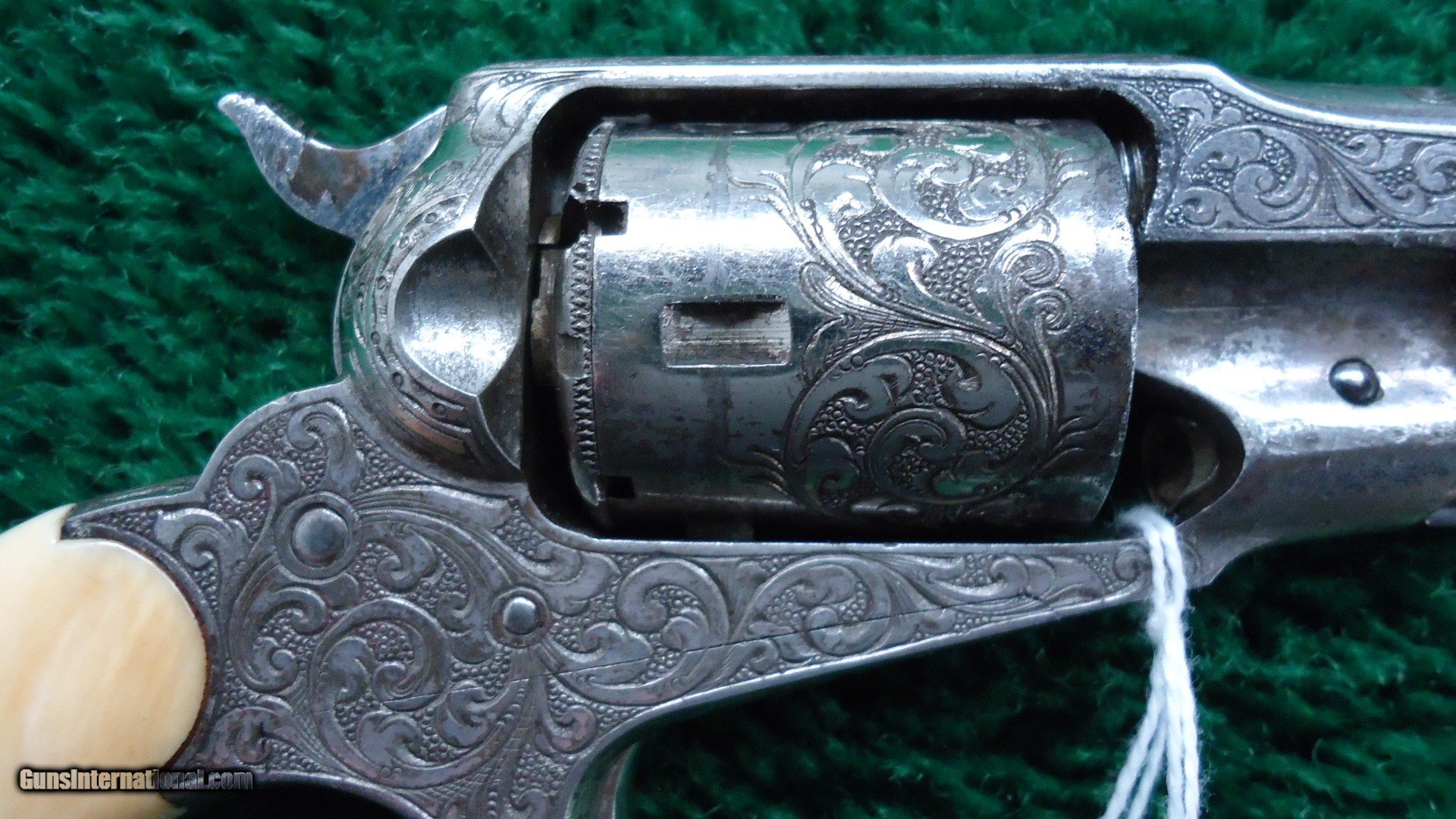 Description: The engraving is most likely done by Nimschke. It is his typical line and scroll work. Very nicely done. Mechanics are excellent. Gun is nickel plated and retains about 90% of that nickel. Ivory grips fit beautifully and no doubt original. This is a crisp sharp original Remington Pocket Conversion. Leroy Merz Antique Firearms specializes in antique and vintage Winchesters and other fine American firearms. Since 1965 Mr. Merz has taken part in the world of firearms and has been a contributor to many well known reference books. We have hundreds of additional guns in every price range at our home online. Search for Merz Antiques in google. SOLD Antique: Yes |