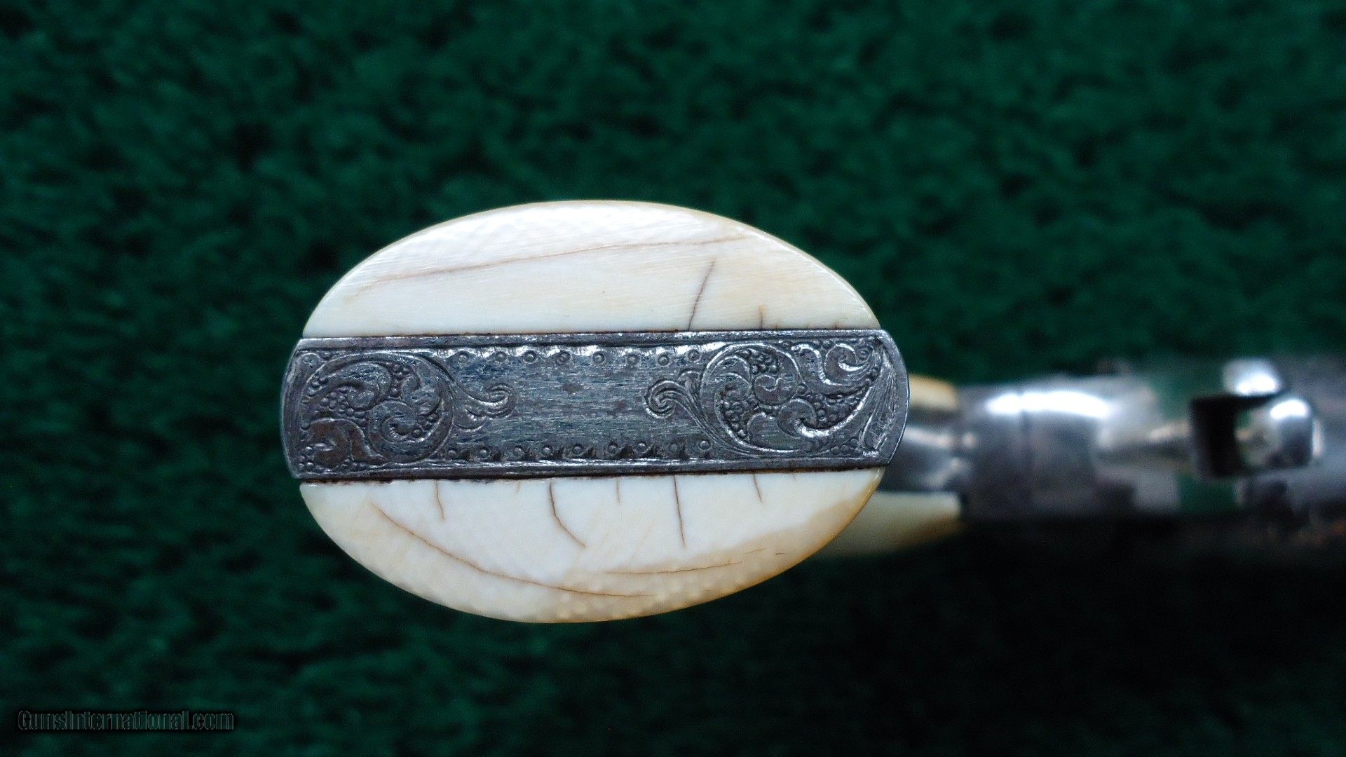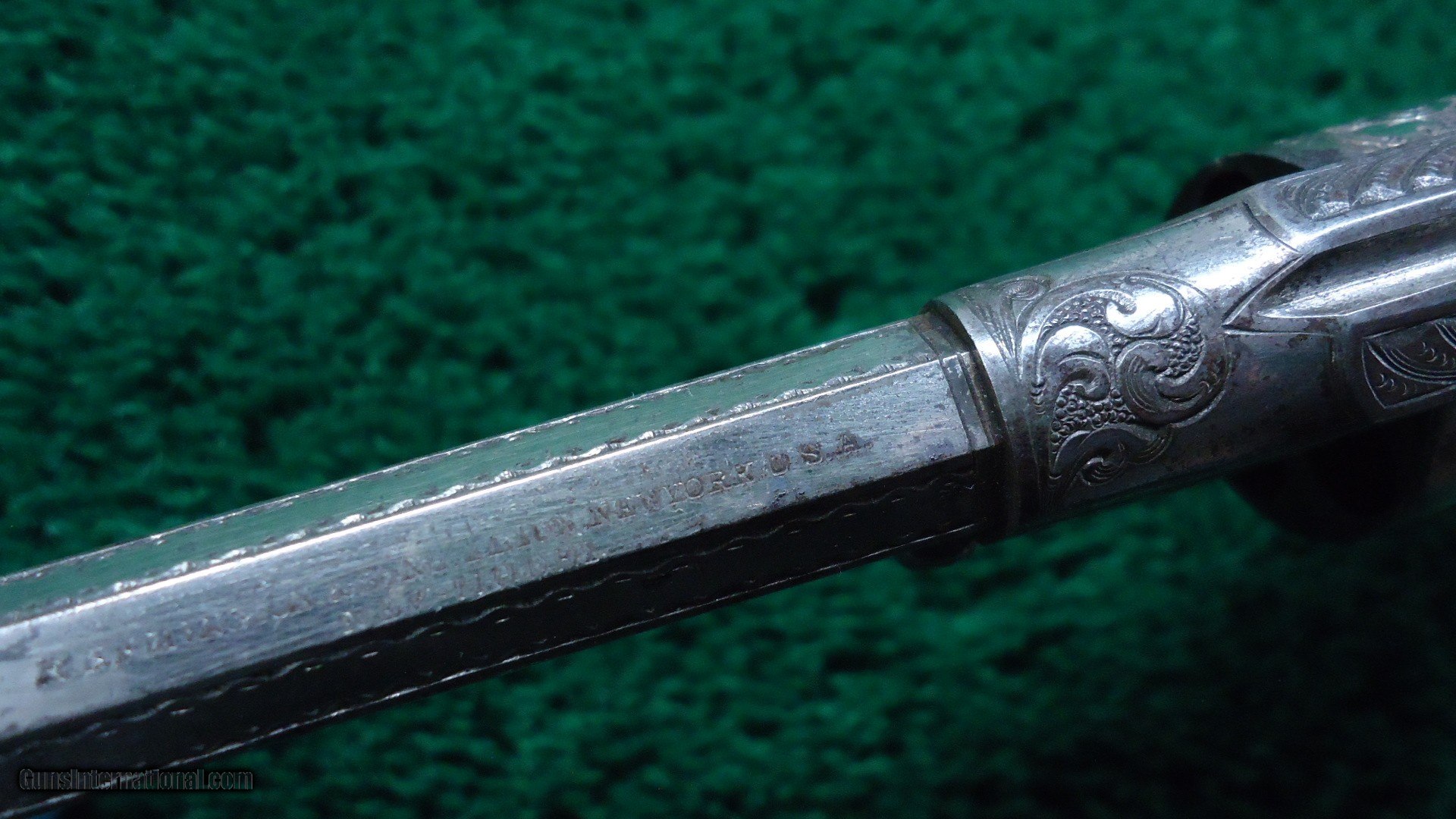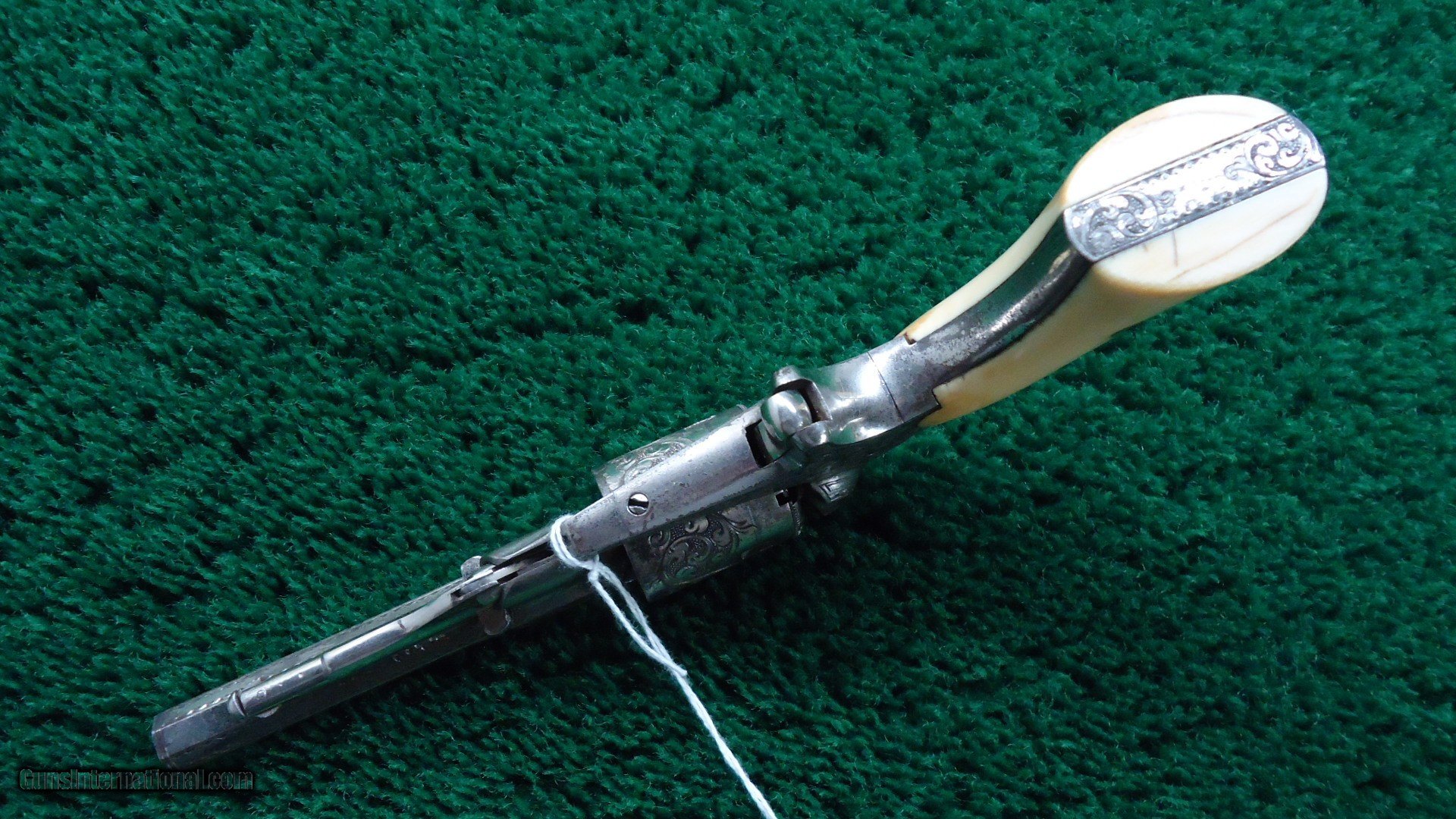 Description: The engraving is most likely done by Nimschke. It is his typical line and scroll work. Very nicely done. Mechanics are excellent. Gun is nickel plated and retains about 90% of that nickel. Ivory grips fit beautifully and no doubt original. This is a crisp sharp original Remington Pocket Conversion. Leroy Merz Antique Firearms specializes in antique and vintage Winchesters and other fine American firearms. Since 1965 Mr. Merz has taken part in the world of firearms and has been a contributor to many well known reference books. We have hundreds of additional guns in every price range at our home online. Search for Merz Antiques in google. SOLD Antique: Yes |