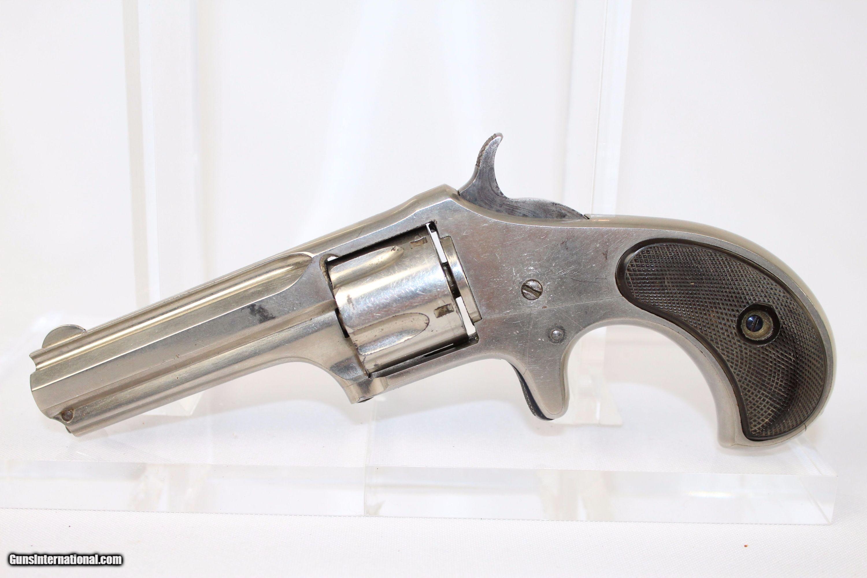 Description: EXCELLENT & SCARCE Remington-Smoot New Model .32 One of Only 3,000 New Model No. 2 Pocket Revolvers Here we present an antique Remington-Smoot New Model No. 2 Revolver, made circa 1880 in Ilion, New York. Only about 3,000 of these are estimated to have been produced, making this one quite scarce. This revolver was designed with the armed public in mind, being pocket-sized and holding 5 shots of .32 Rimfire. This revolver was part of a line of small handguns that was contemporaneous with Colt’s New Line. Both these companies made a quality revolver, but quality costs. As a result, many small makers began producing much less expensive alternatives that would lovingly become known as “Suicide Specials”. In many cases, these little revolvers did the job, but competition shut down these lines earlier than they may have otherwise. The overall condition is excellent. The original nickel finish is virtually complete. Case colors are still vibrant on the back of the hammer. The markings are clear and legible. The hard rubber grips are original and in very good shape. The bore is well-rifled and clean. The action is excellent. Here is a fantastic little Remington to add to your collection! Own the original! This is a legitimate antique and not a reproduction. Barrel is 2-3/4 inches. Caliber: .32 Rimfire Overall condition as seen in photos. Very Fast. Very Safe. FREE SHIPPING WORLDWIDE. Delivered directly to your door by express mail! Guaranteed AUTHENTIC & Includes CERTIFICATE OF AUTHENTICITY. ancestryguns $750 #5115 SOLD Antique: Yes |