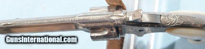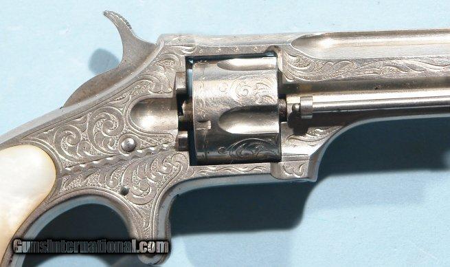 Description: FACTORY ENGRAVED REMINGTON-SMOOT #1 NEW MODEL. .30 RF SHORT CAL. NICKEL REVOLVER CA. EARLY 1870’S. All original and matching in excellent condition with 95% plus original nickel. Factory American scroll engraving. Mother of pearl factory original grips. Mint bore and perfect working order. Famous old Remington collection provenance and first time for sale in 4 decades. SOLD Antique: Yes |