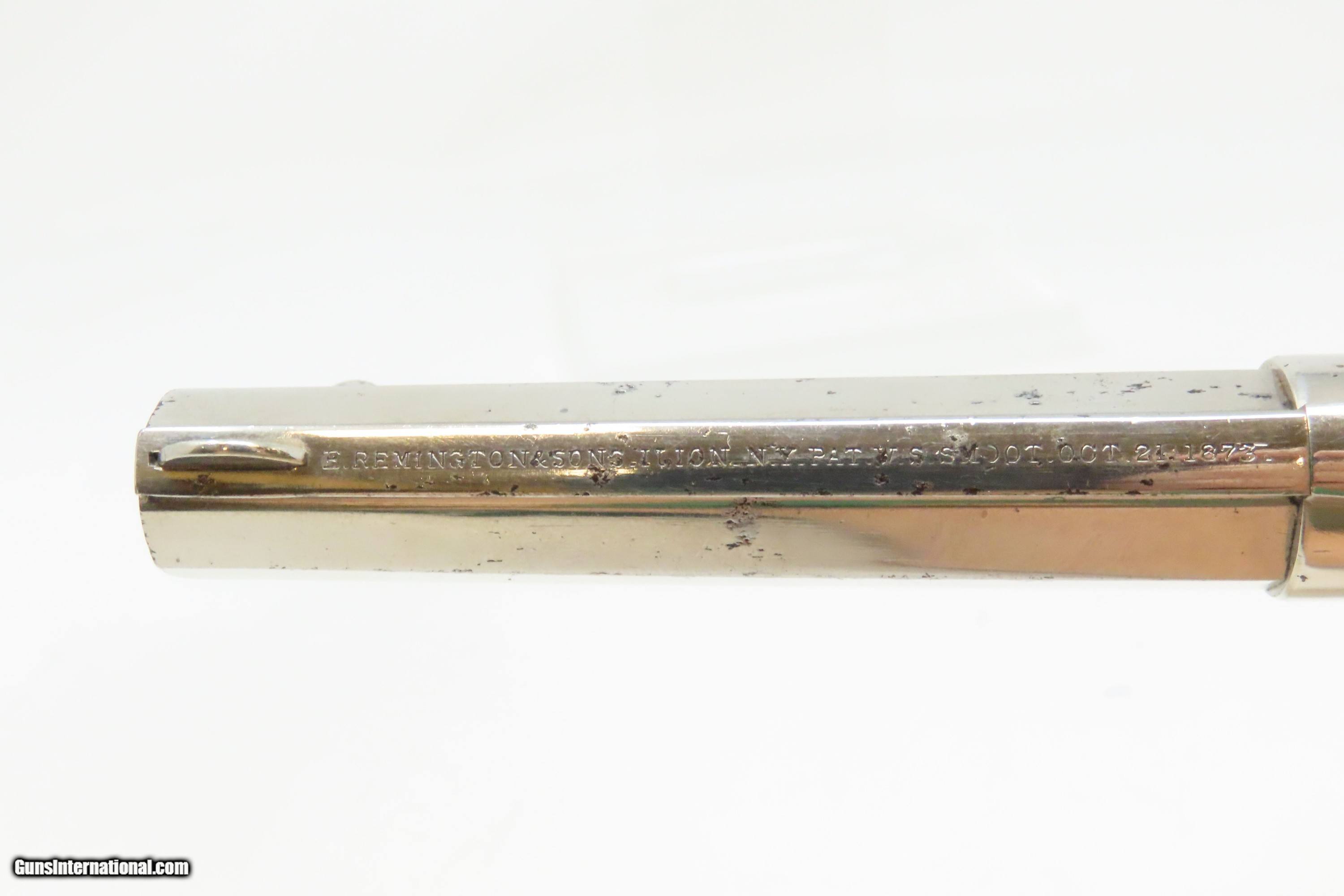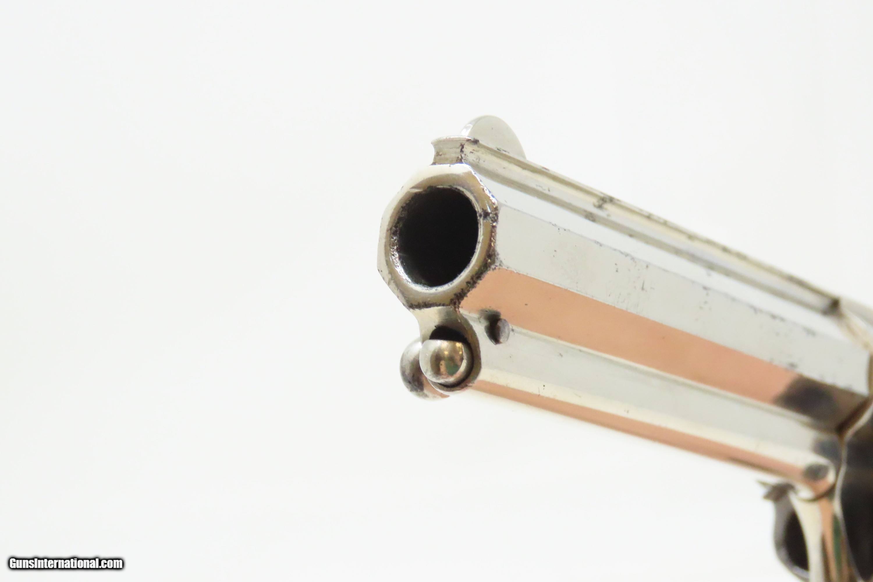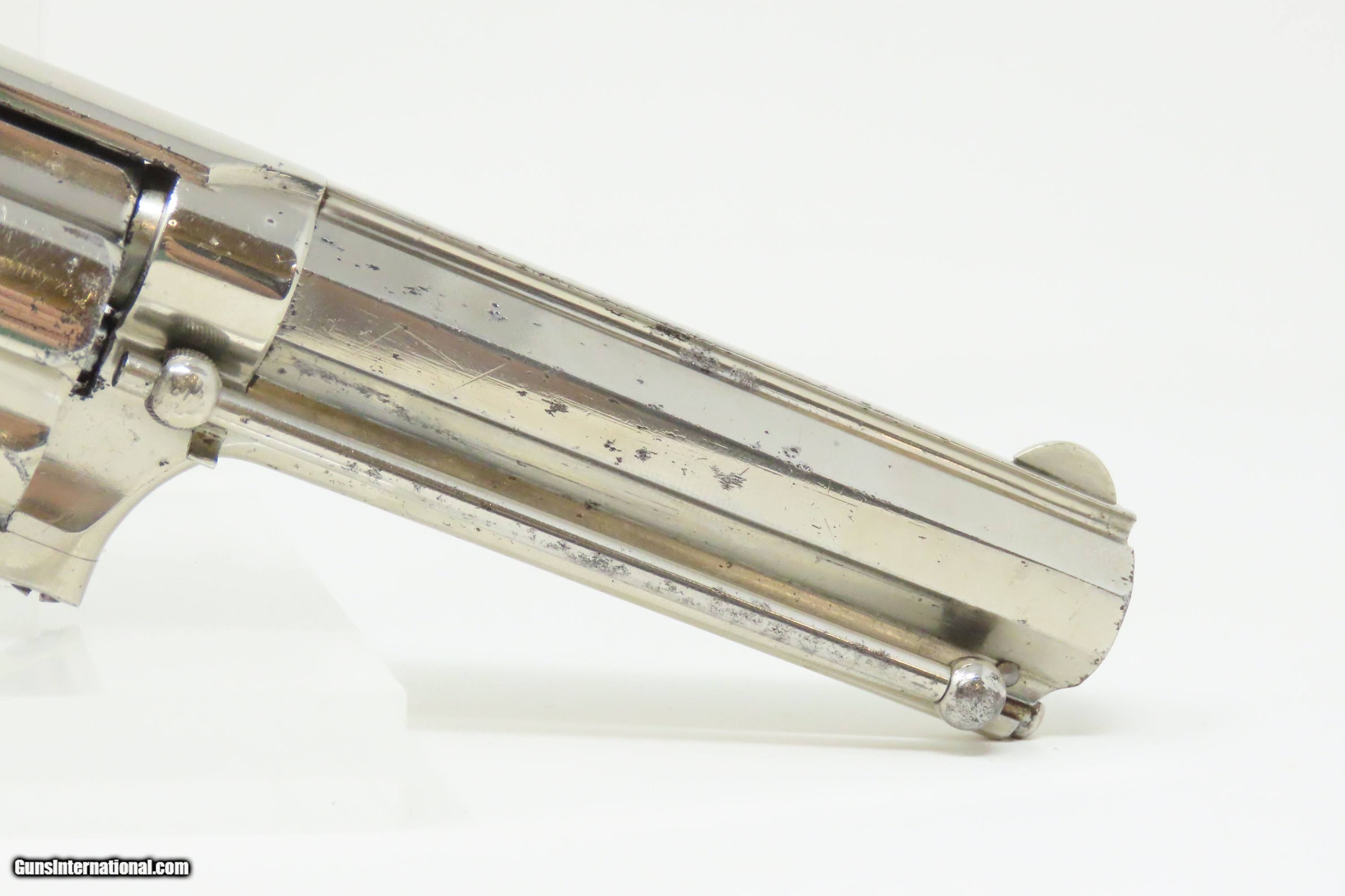 Description: FRONTIER Antique REMINGTON-SMOOT New Model No. 3 .38 RF WILD WEST Revolver “WILD WEST” Spur Trigger SUICIDE SPECIAL Here we present an antique Remington-Smoot New Model No. 3 Revolver in .38 Caliber Rimfire, made circa the mid-1880s in Ilion, New York. One of the finest made belt or pocket-model revolvers of the post-Civil War years, the Remington-Smoot revolvers were part of a line of small handguns that was contemporaneous with Colt’s “New Line” revolver. Both these companies made a quality revolver, but quality costs. The Remington featured an unusual design in which the frame, barrel and ejector housing were all one piece, this making for an extremely strong and durable design that withstood hard use. The years of production were 1878 to 1888 with approximately 25,000 examples manufactured. This revolver was designed with the armed public in mind, being pocket-sized and holding 5 shots of .38 Rimfire. It is a medium to small frame revolver with an open loading gate and an ejector rod, which many other revolvers in this size-class lacked. The overall condition is excellent. Robust action. Original nickel finish. The bore is in good shape for its age, with some scattered pitting and a light shimmer. Solid grips with light handling wear. Sharp markings. Own the original! This is a legitimate antique and not a reproduction. Barrel is 3-3/4 inches. Caliber: .38 Rimfire Overall condition as seen in photos. Very Fast. Very Safe. FREE SHIPPING WORLDWIDE. Delivered directly to your door by express mail! Guaranteed AUTHENTIC & Includes CERTIFICATE OF AUTHENTICITY. ancestryguns $1500 #244266 SOLD Antique: Yes |