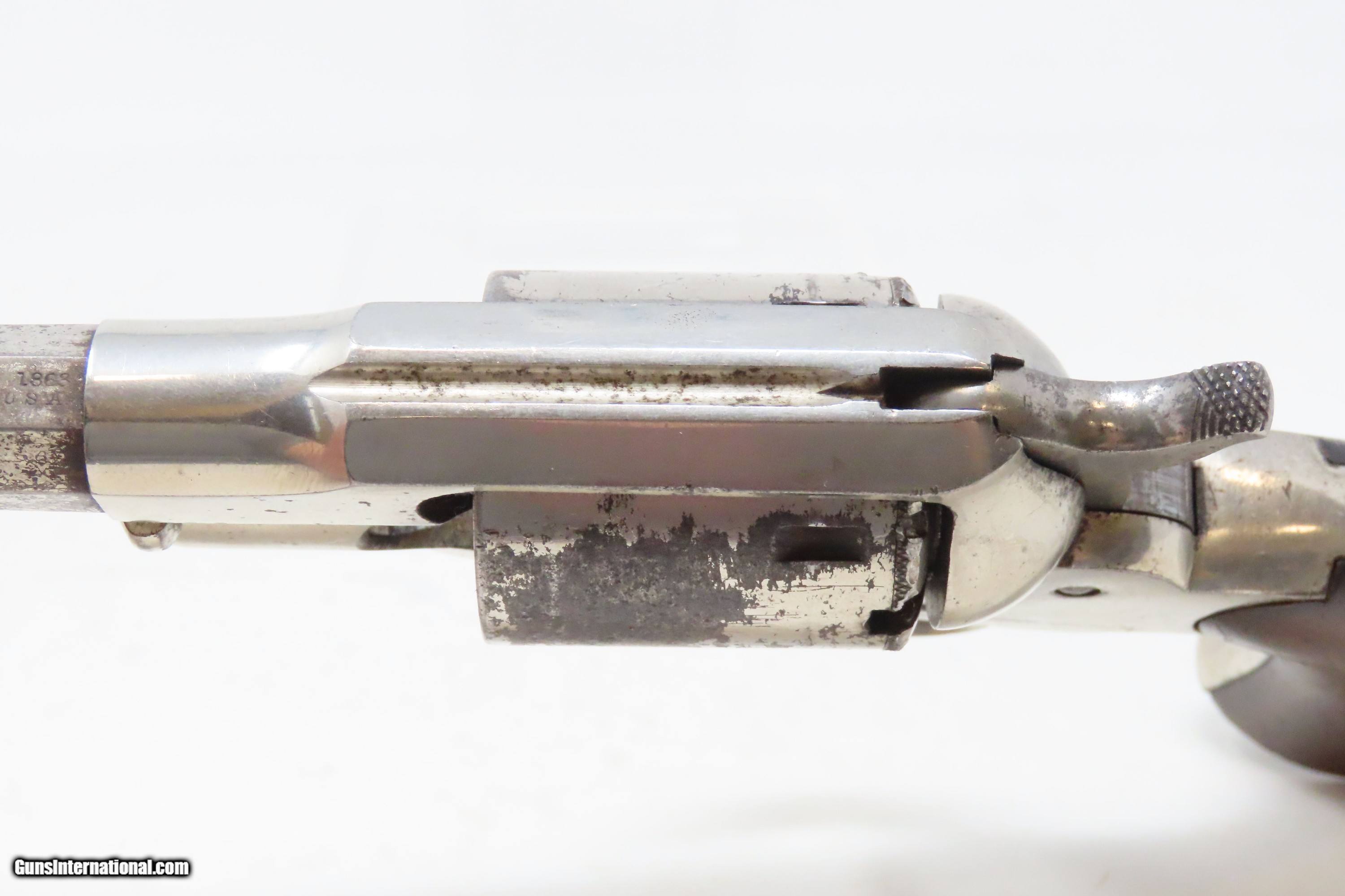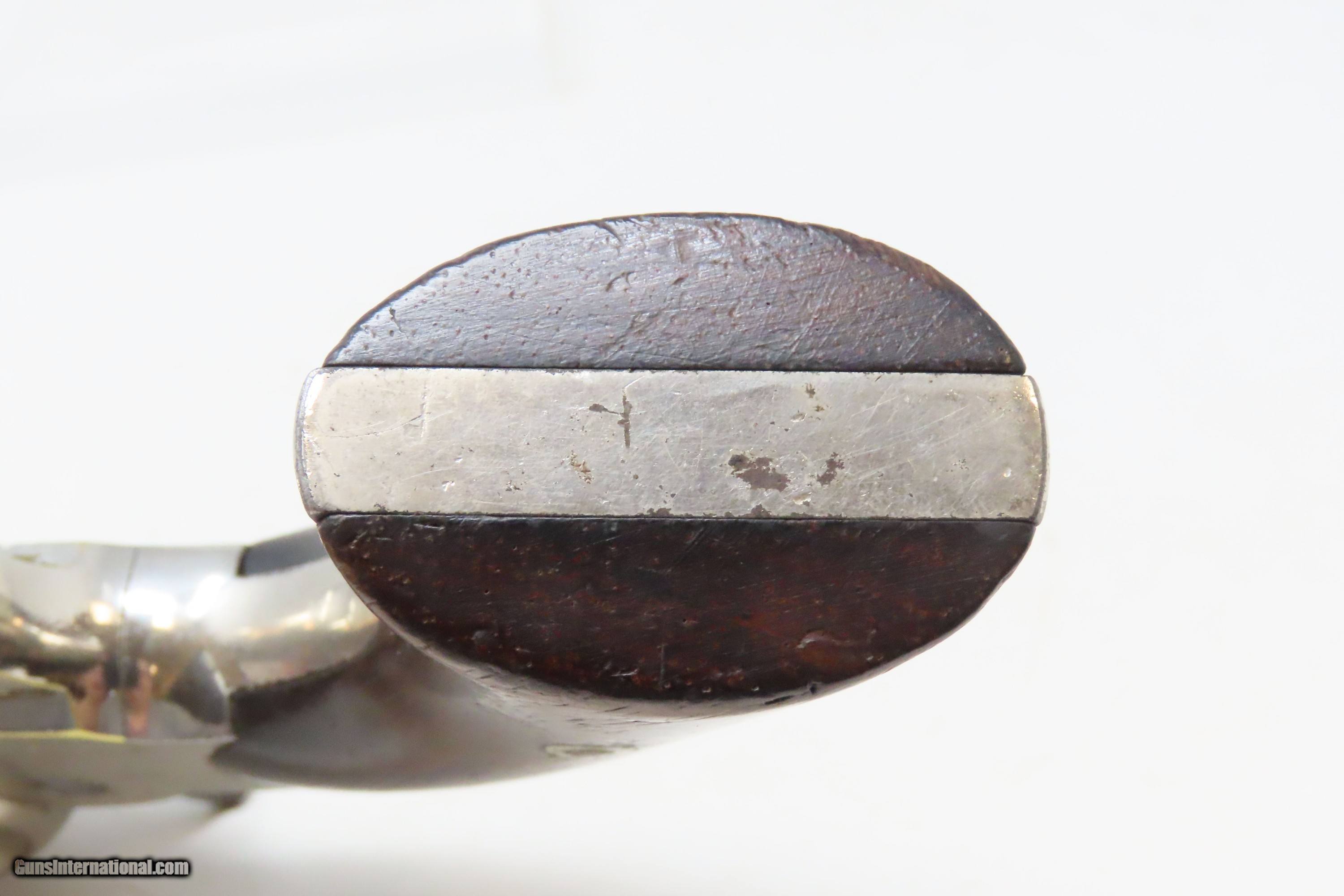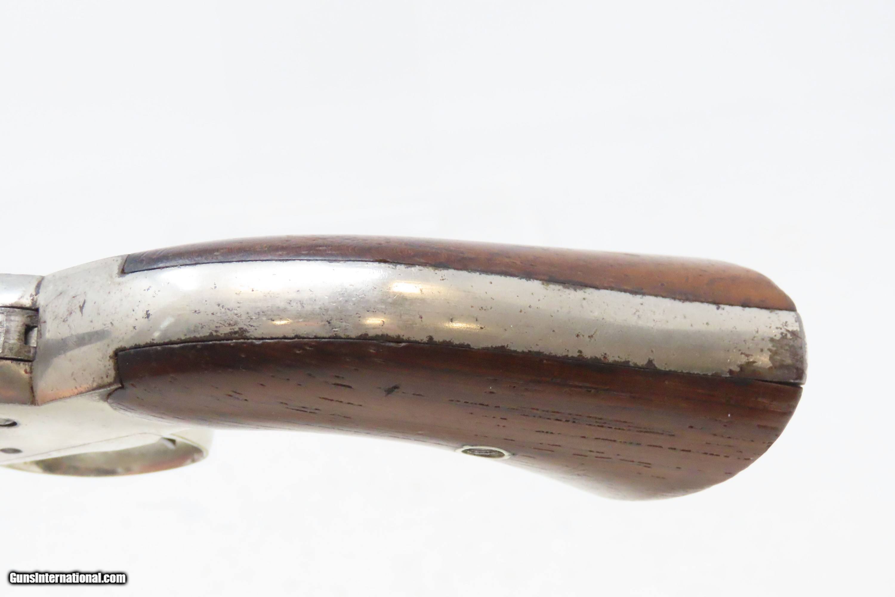 Description: NICE 1870s Antique REMINGTON “New Model” POLICE .38 RF CONVERSION Revolver Factory Converted to .38 Rimfire Cartridge Here we present an antique Remington New Model Police Cartridge Conversion Revolver, made circa 1865 to 1873 in Ilion, New York. It would have started out life as a .36 caliber percussion revolver prior to conversion. This sidearm, scaled down from the Remington Navy and Belt models, was one of some 18,000 factory alterations from percussion to metallic rimfire cartridge. Designed to compete with the Colt Model 1862 Police sidearm and the Pocket Navy revolvers, this .38 caliber rimfire, five-shot two-piece cylinder is fitted with a special plate on the front shoulder. This would have been a nice, unobtrusively sized revolver to carry in a holster. With 5 rounds of .38 rimfire, one could get themselves out of most scrapes. This revolver would have been modified to accept metallic cartridges near the expiration of the Smith & Wesson owned Rollin White Patent, which prevented other companies from using the bored through cylinder until 1869. The overall condition is fine. Original nickel finish. Good bore. The action is strong. Both grips are solid with average handling. Legible markings. Own the original! This is a legitimate antique and not a reproduction. Barrel is 3-1/2 inches. Caliber: .38 Rimfire Overall condition as seen in photos. Very Fast. Very Safe. FREE SHIPPING WORLDWIDE. Delivered directly to your door by express mail! Guaranteed AUTHENTIC & Includes CERTIFICATE OF AUTHENTICITY. ancestryguns $1600 #240025 SOLD Antique: Yes |